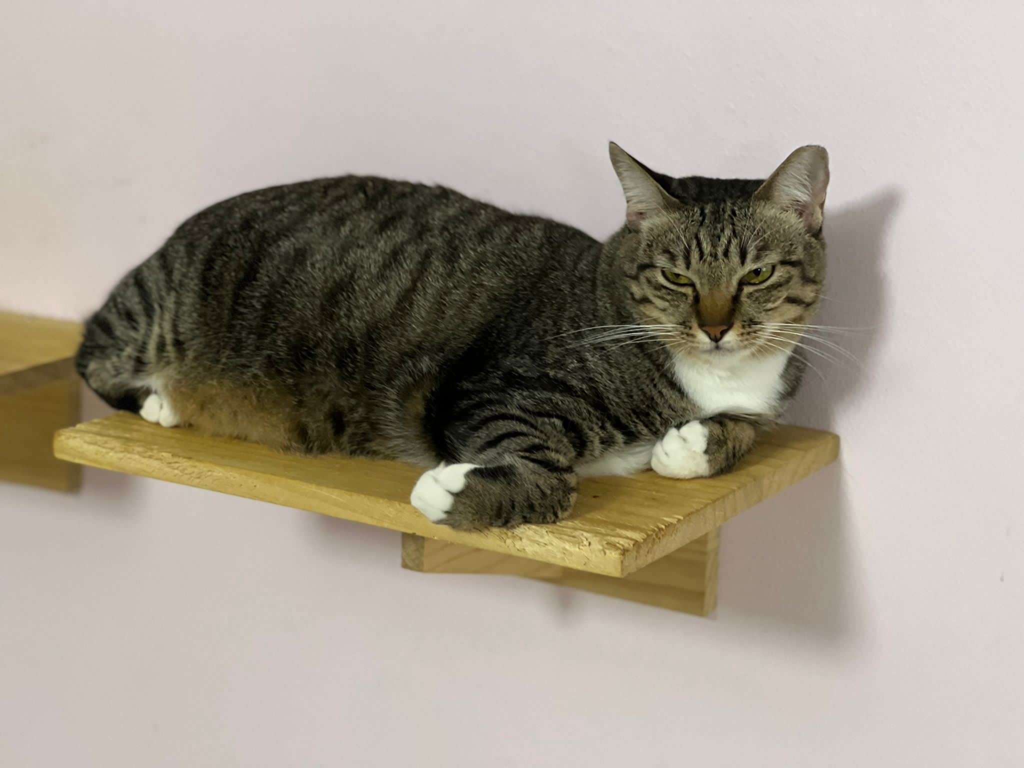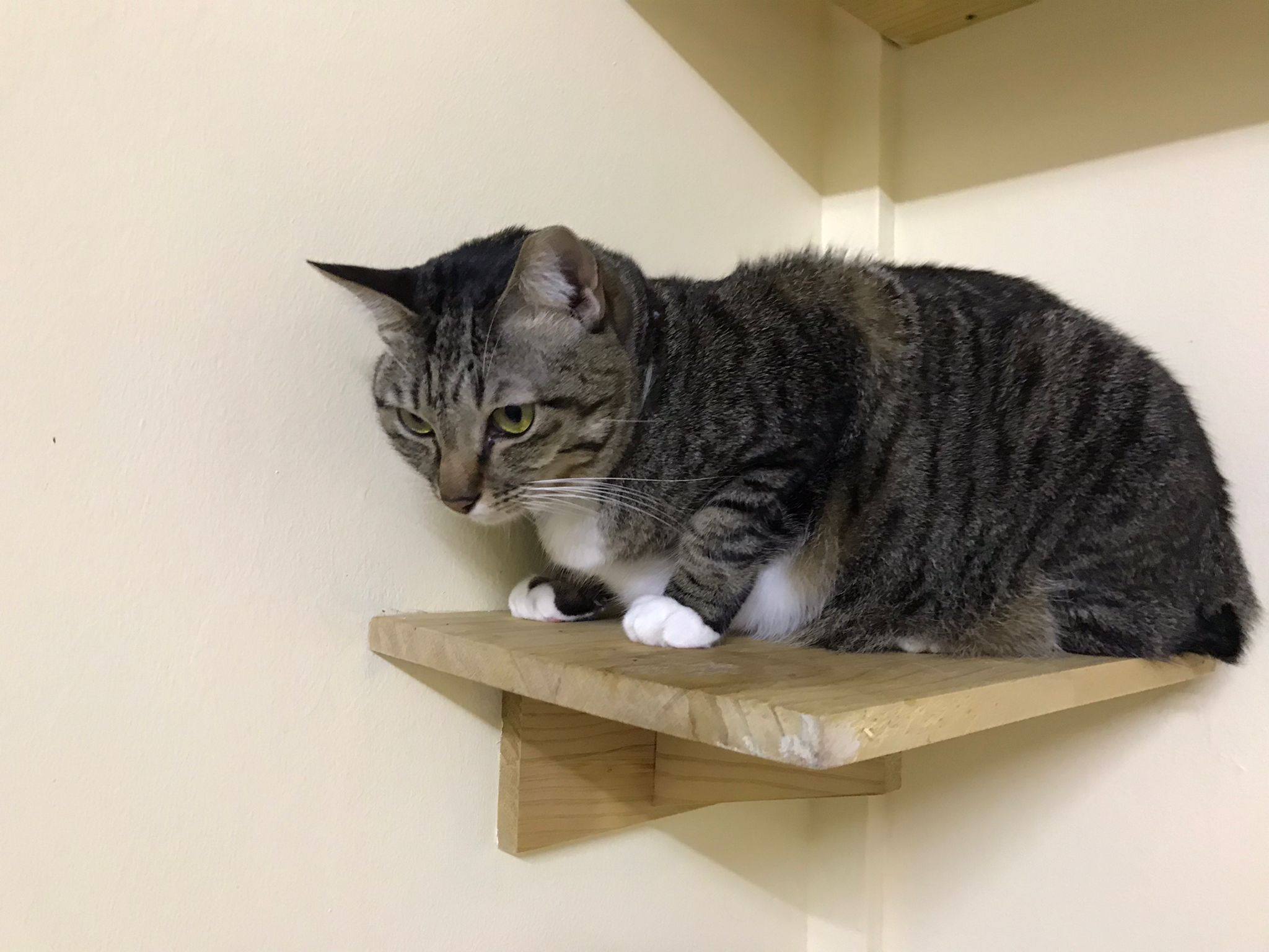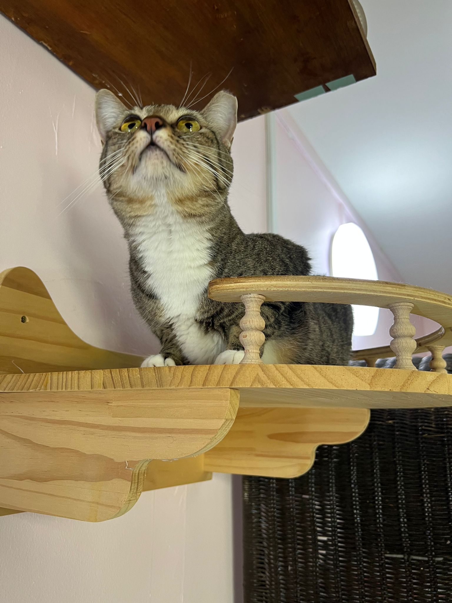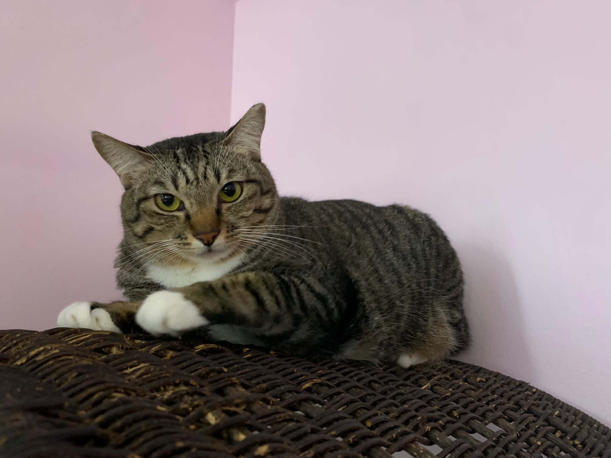 Entered 猫房 w her 2 brothers as 3 fierce kittens. Over the time in 猫房 free roaming and mixing with other cats n making friends, the boys are fine n I can kiss them. Nala still scare of everything, don’t allow touch will jump away. She will find Jack papa for comfy. Got to find a very patient adopter for her.