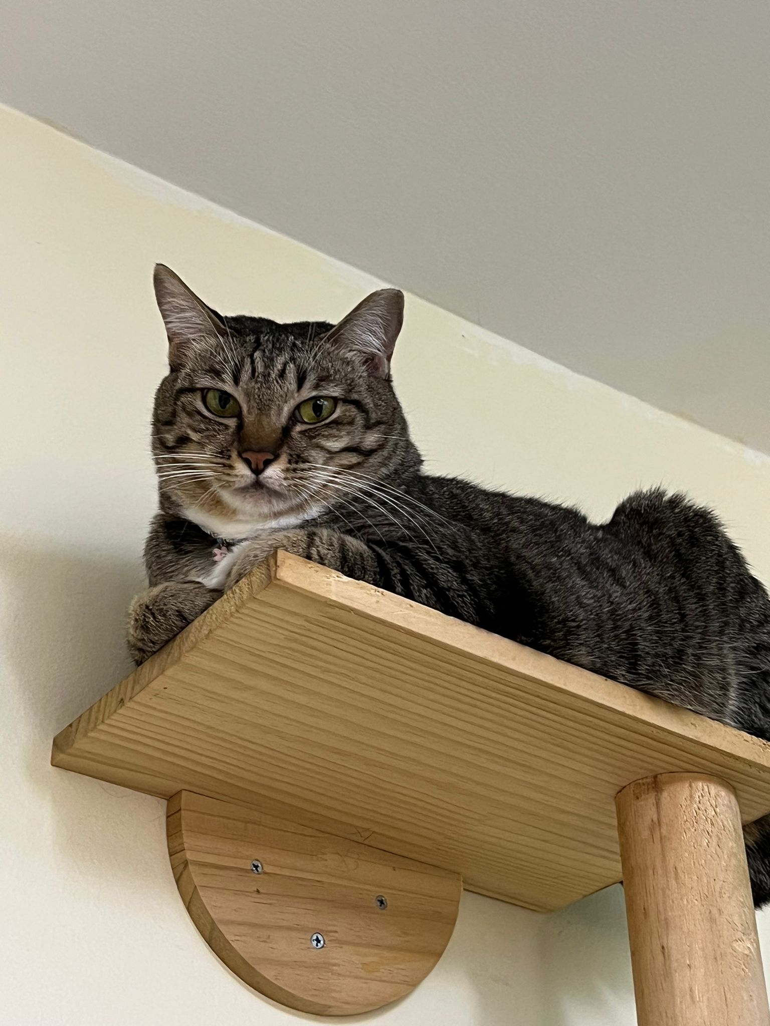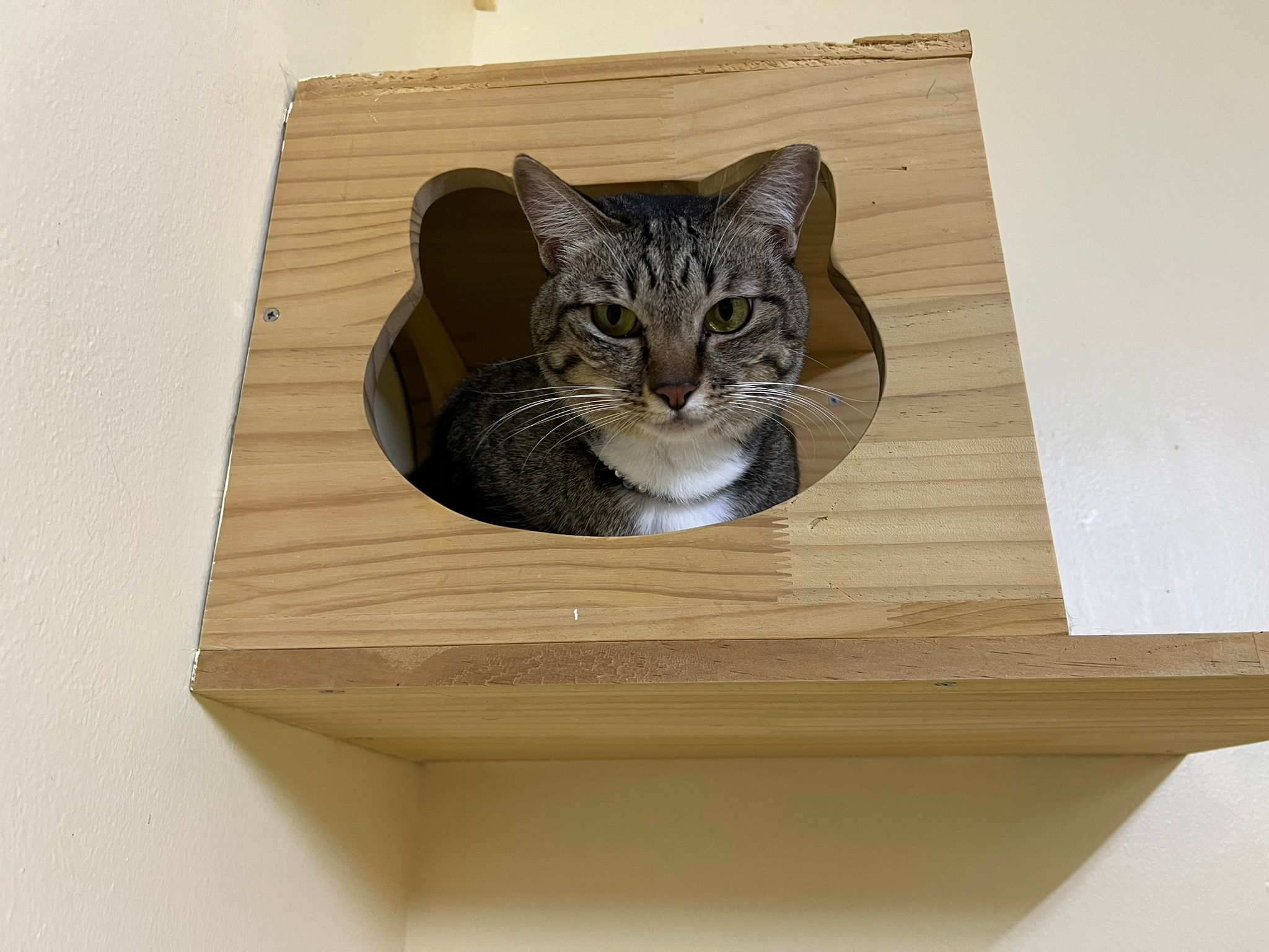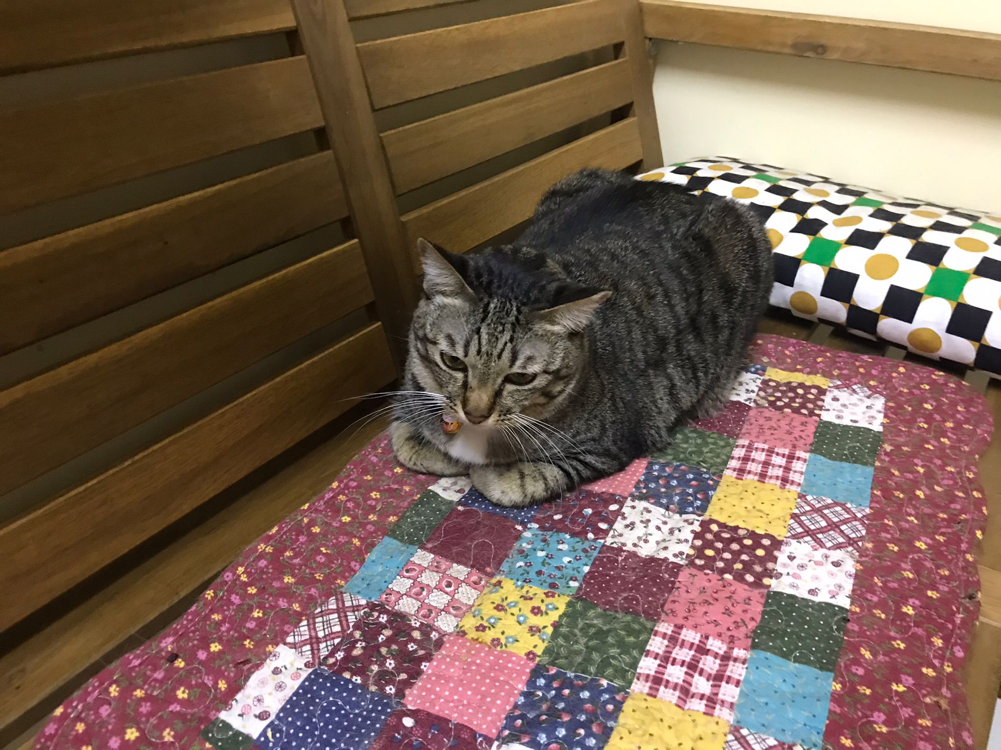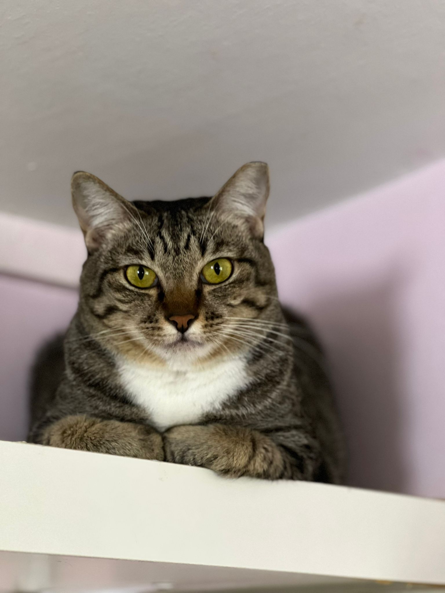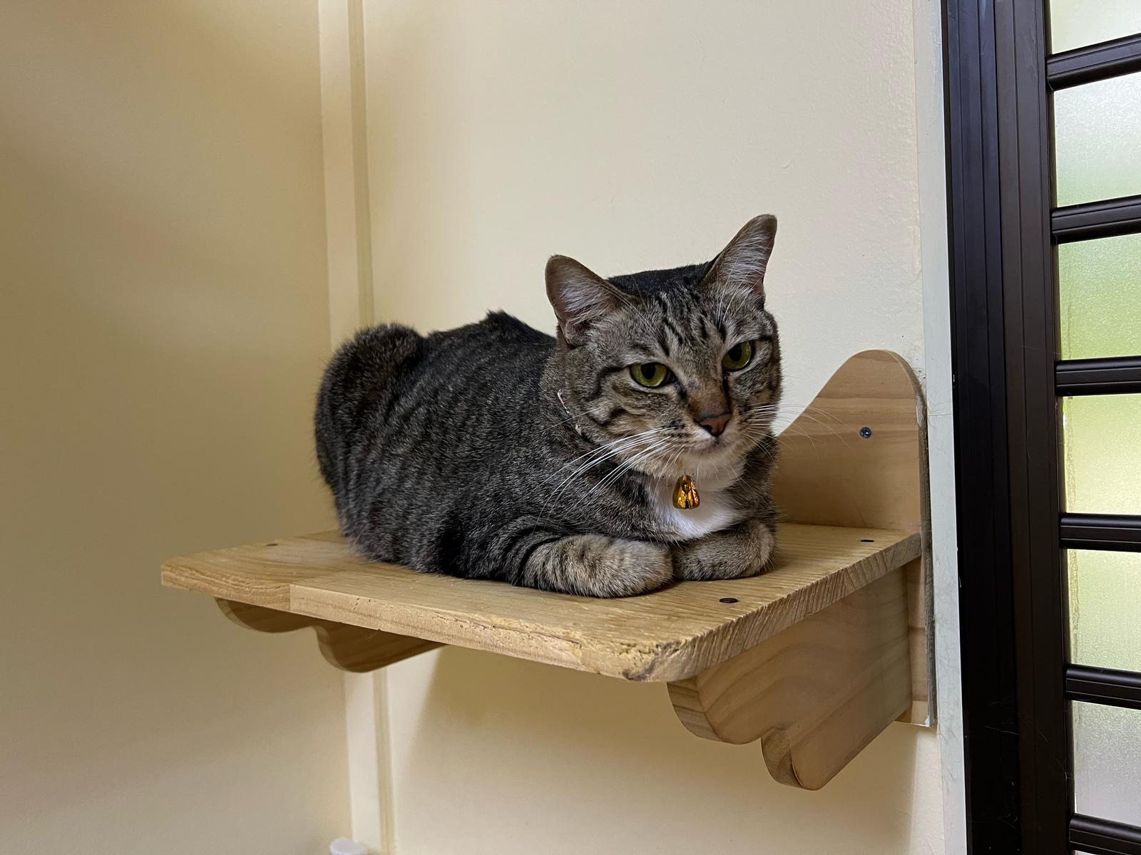 Entered 猫房 w her 2 brothers as 3 fierce kittens. Over the time in 猫房 free roaming and mixing with other cats n making friends, the boys are fine n I can kiss them. Nala still scare of everything, don’t allow touch will jump away. She will find Jack papa for comfy. Got to find a very patient adopter for her.
