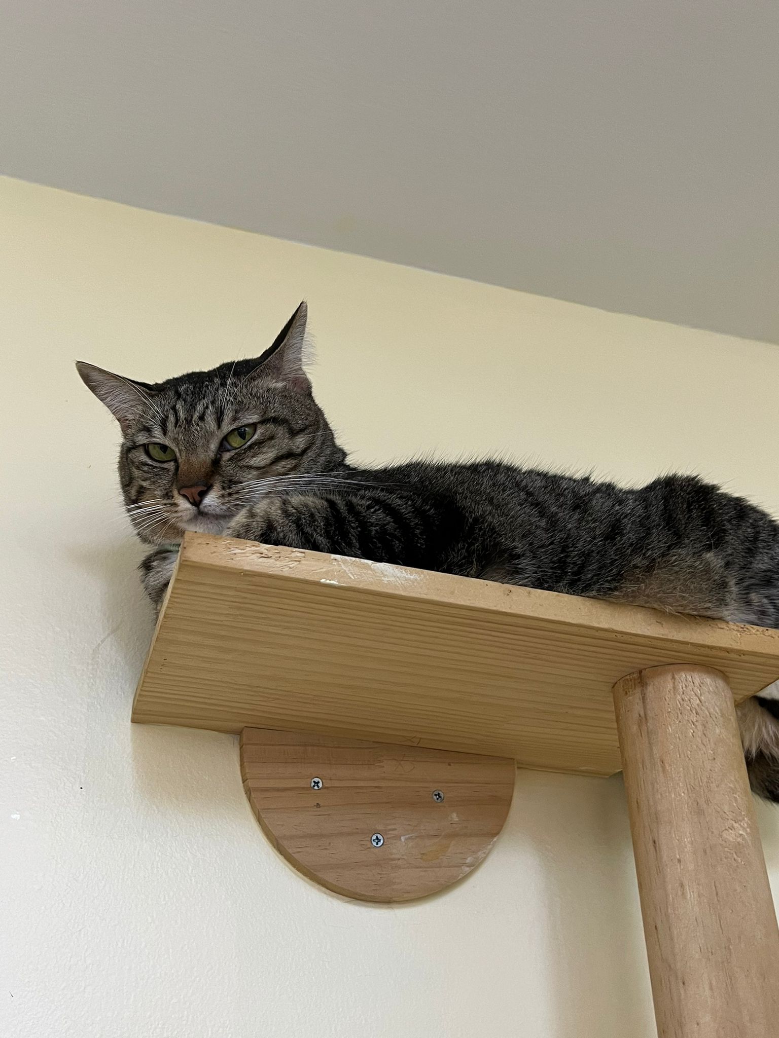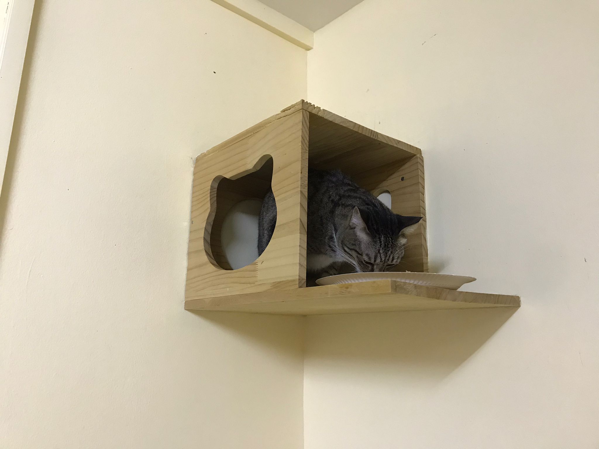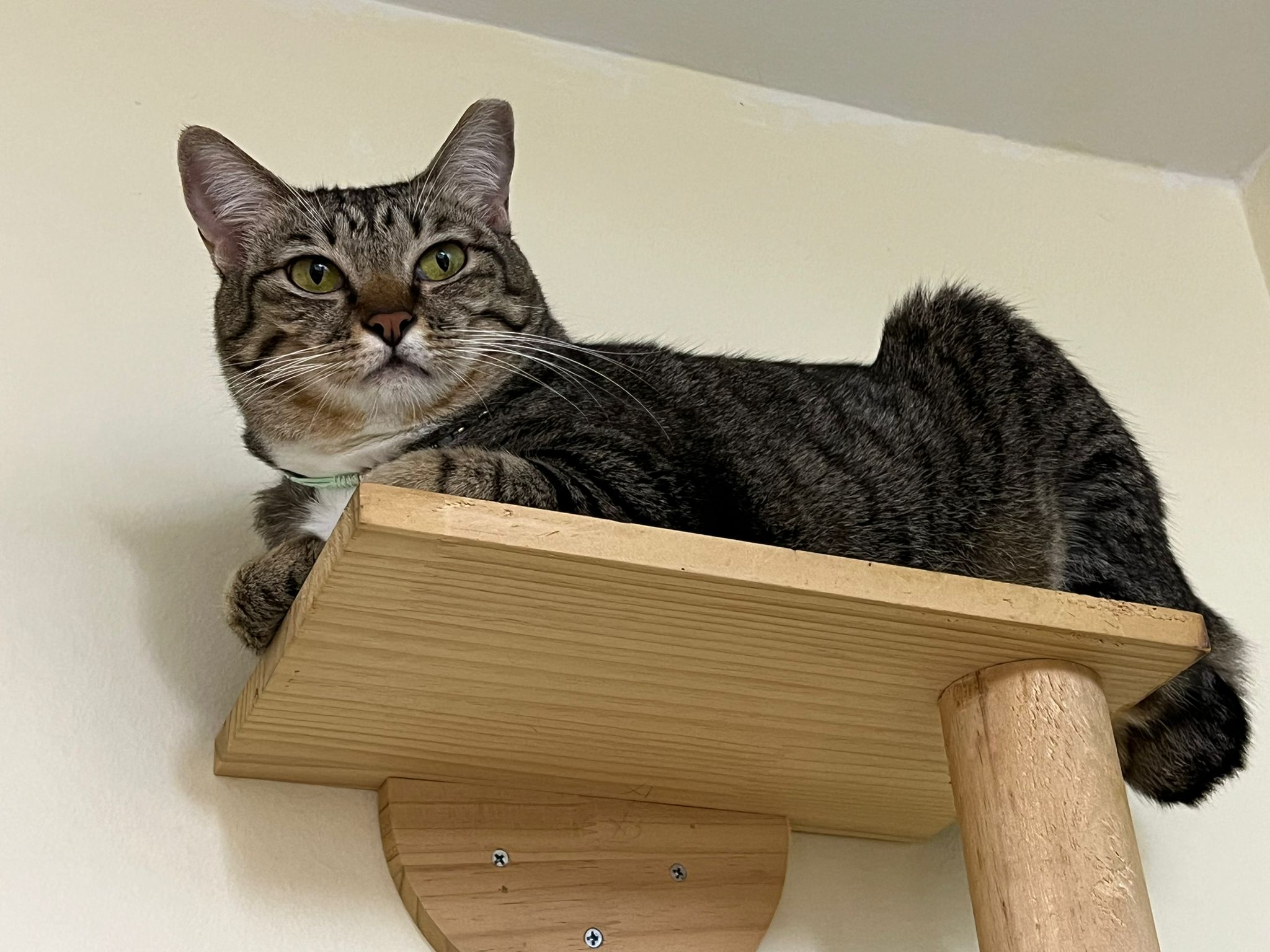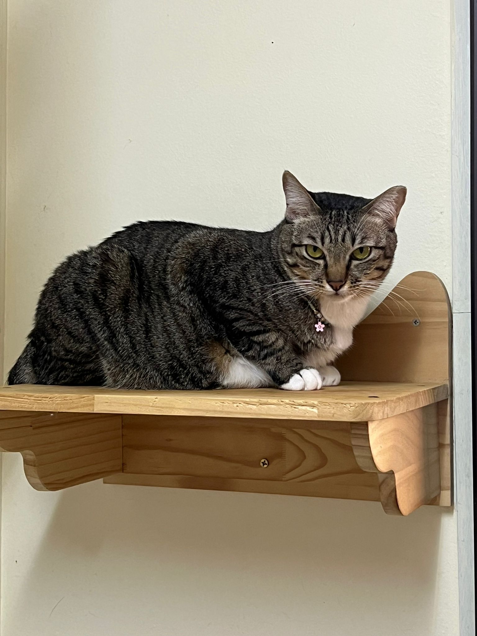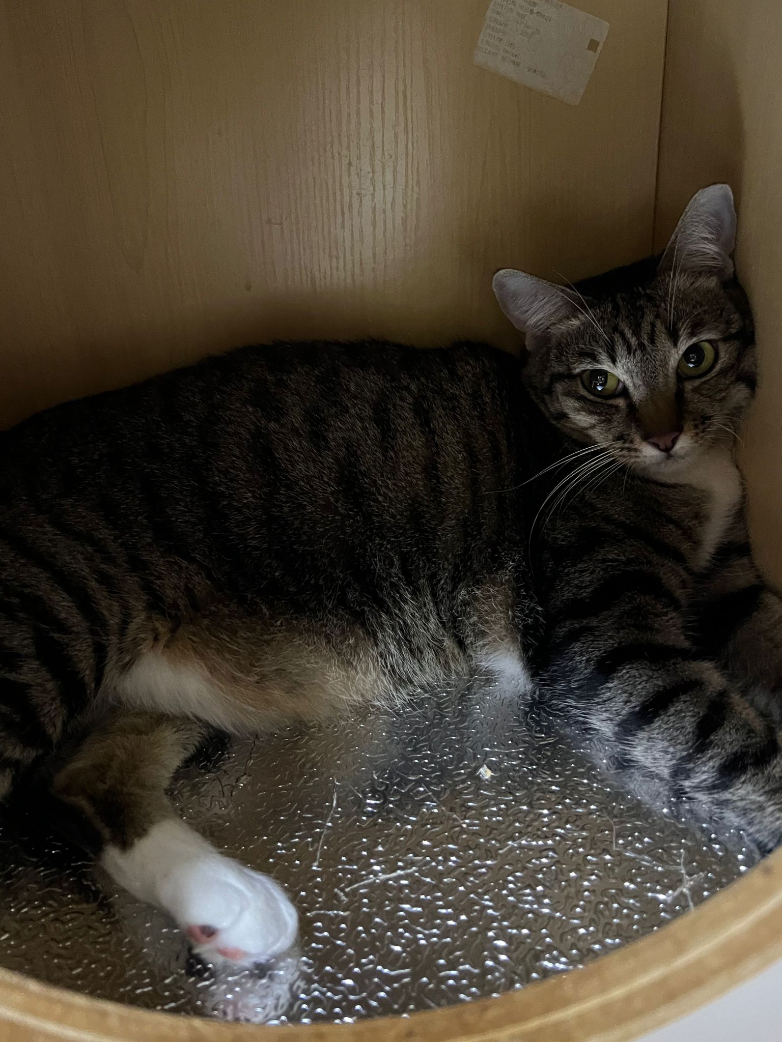 Entered 猫房 w her 2 brothers as 3 fierce kittens. Over the time in 猫房 free roaming and mixing with other cats n making friends, the boys are fine n I can kiss them. Nala still scare of everything, don’t allow touch will jump away. She will find Jack papa for comfy. Got to find a very patient adopter for her.