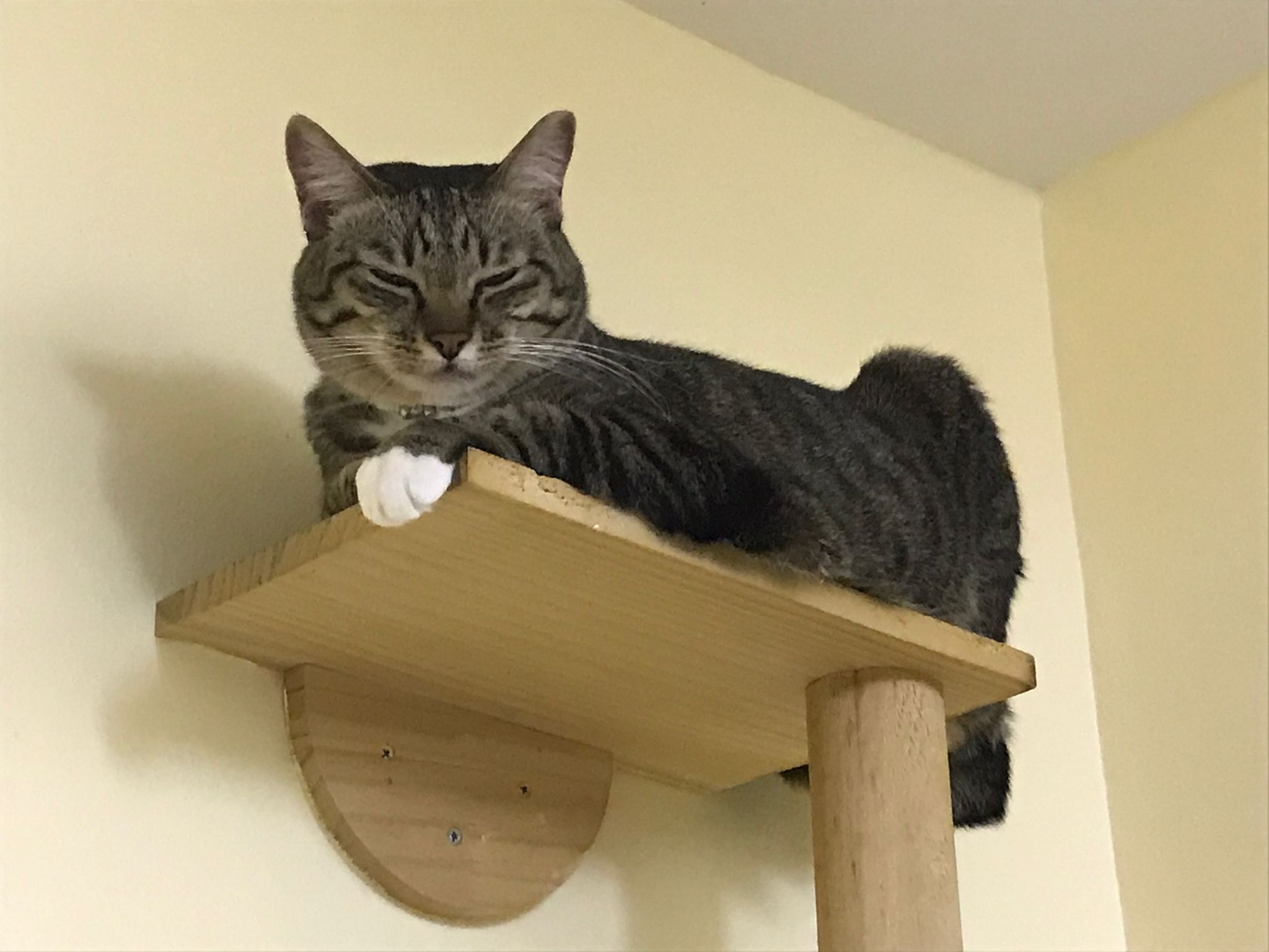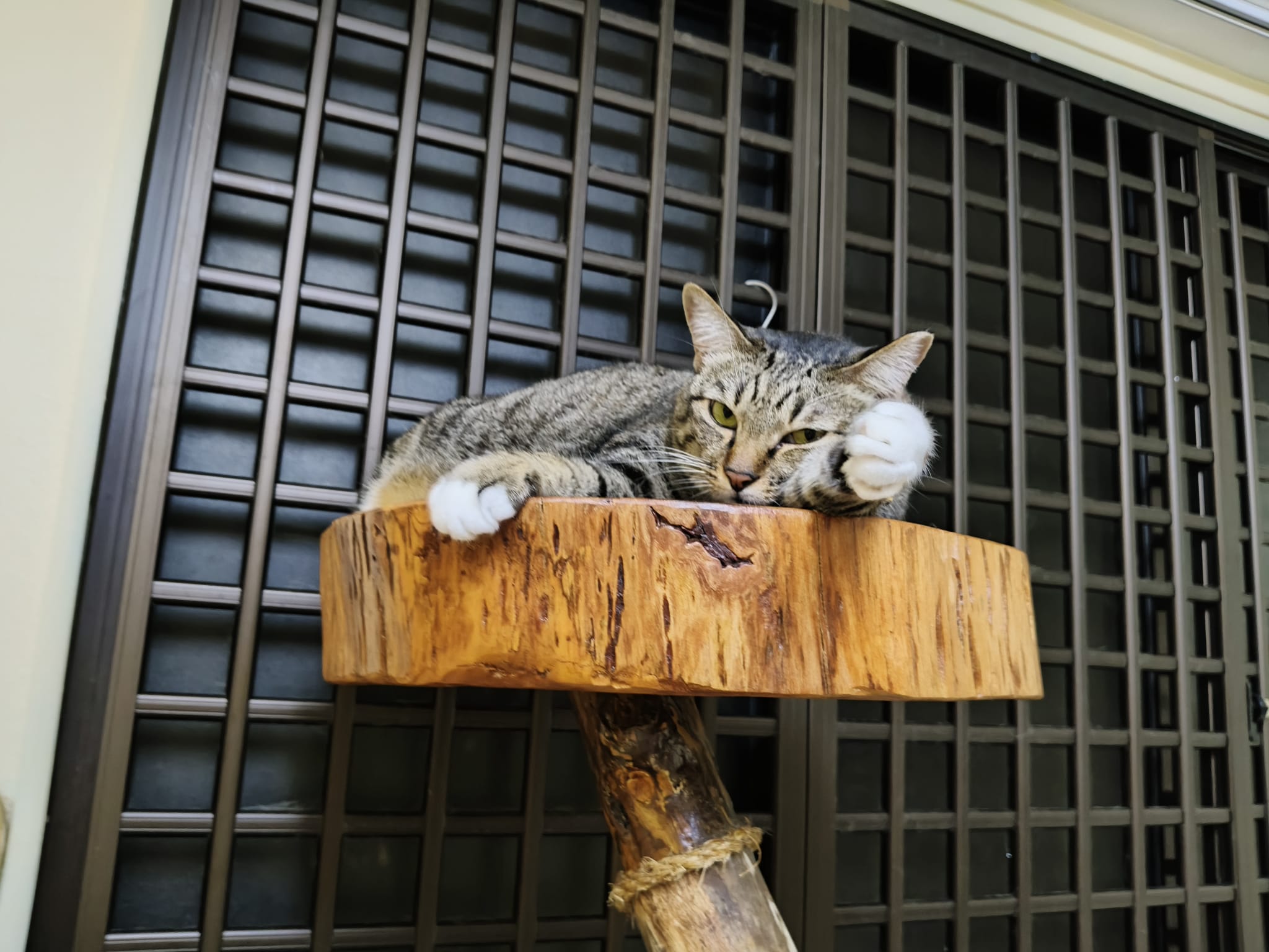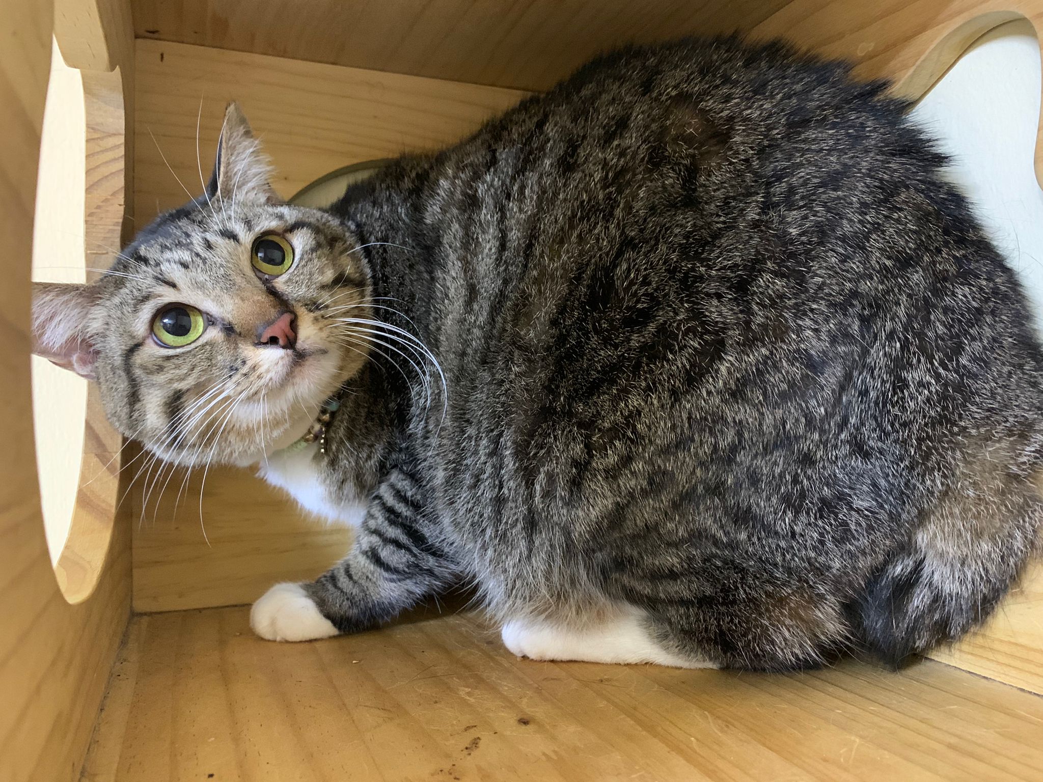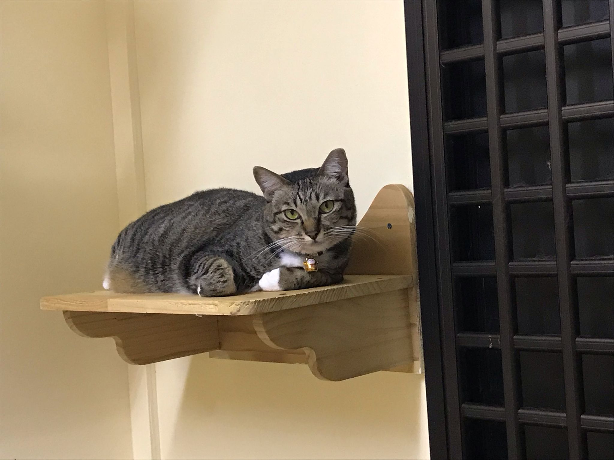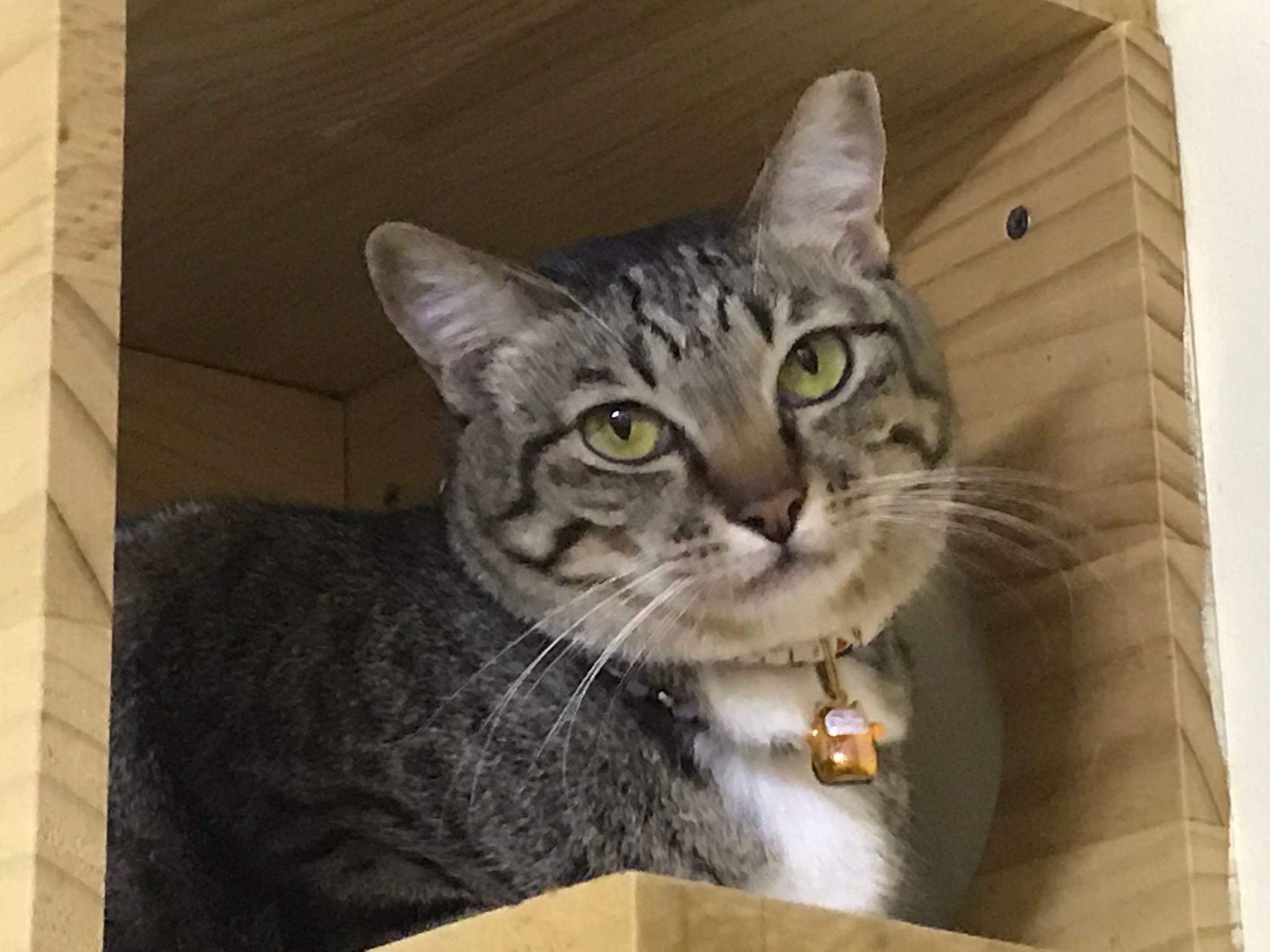 Entered 猫房 w her 2 brothers as 3 fierce kittens. Over the time in 猫房 free roaming and mixing with other cats n making friends, the boys are fine n I can kiss them. Nala still scare of everything, don’t allow touch will jump away. She will find Jack papa for comfy. Got to find a very patient adopter for her.