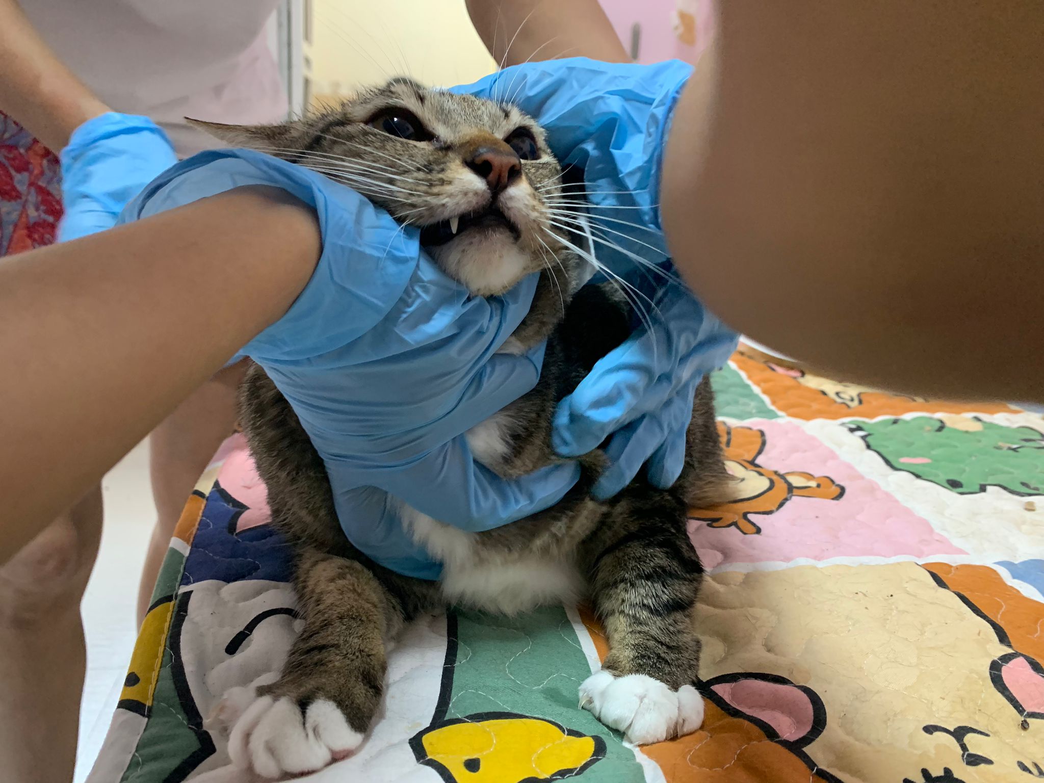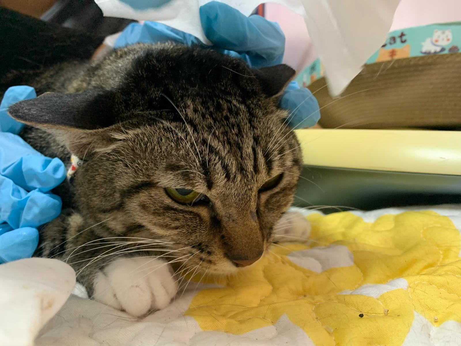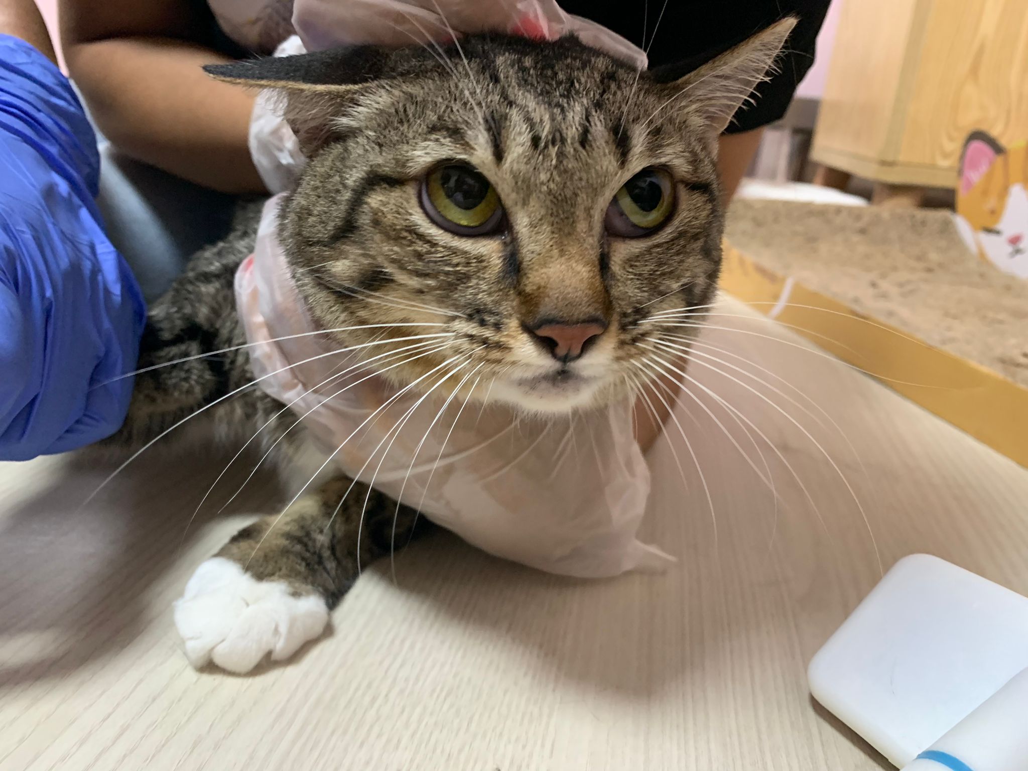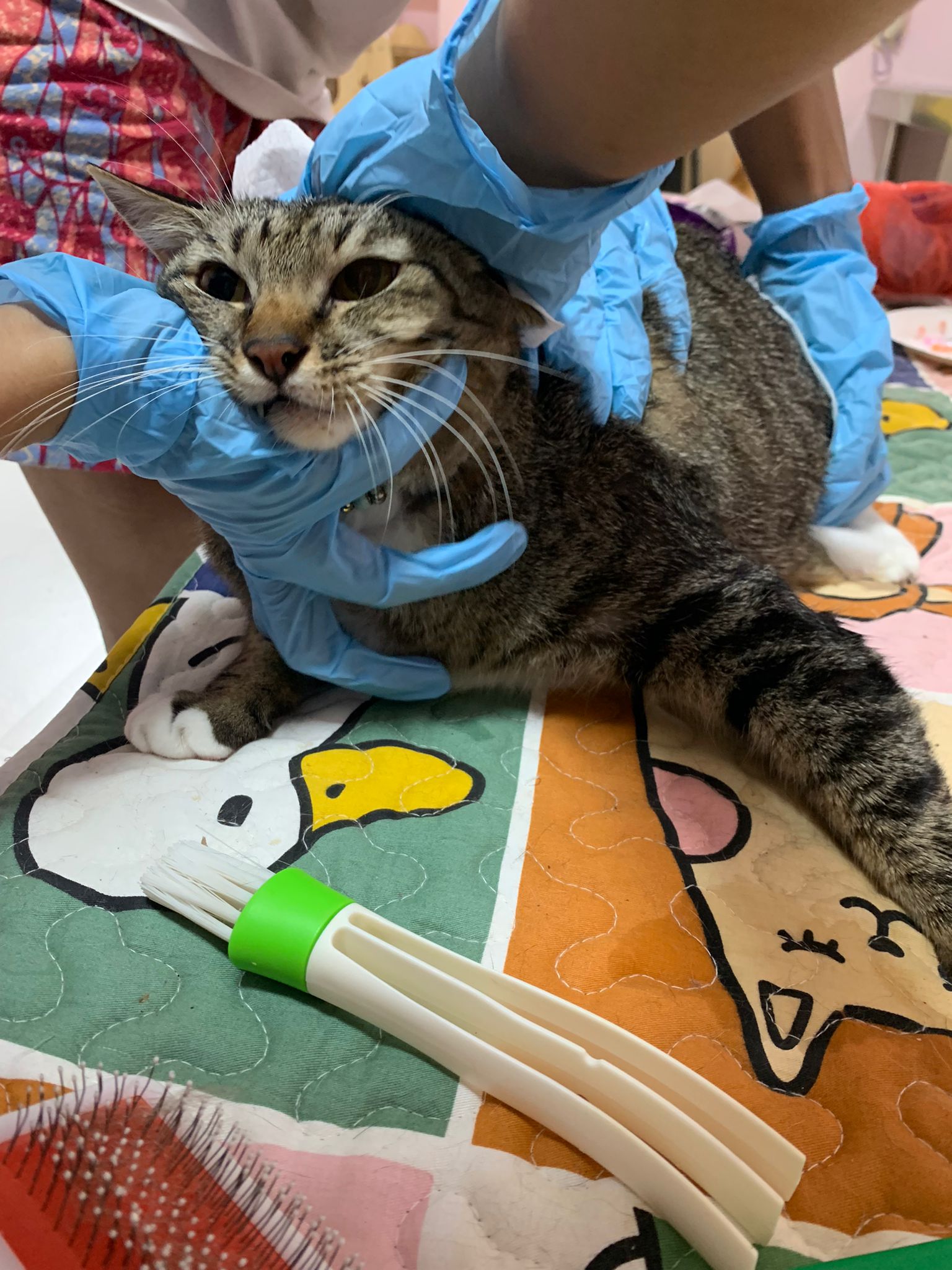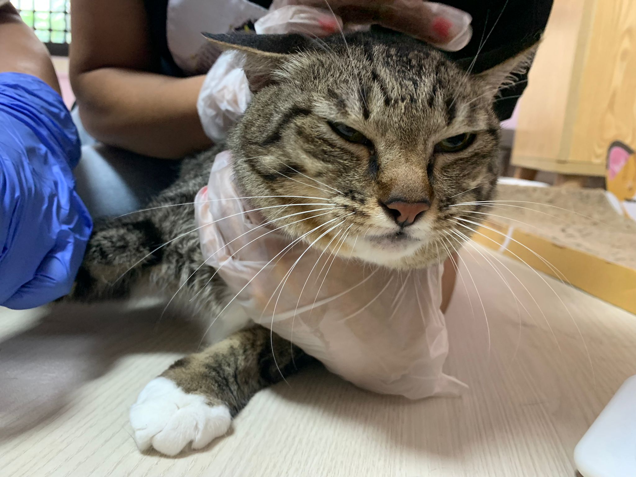 • nala, the only girl, 2.3kg female tabby. Very very siao siao. Even blur from sedation, still dash here dash there, jump up jump down the wall, wanna run from human touch. I found out her tummy area v saggy, like those typical hernia cat like that somemore she just spay recently. can’t be fats Cos she rather thin? I don’t think the previous place can confirm whether she did eat. This have to observe