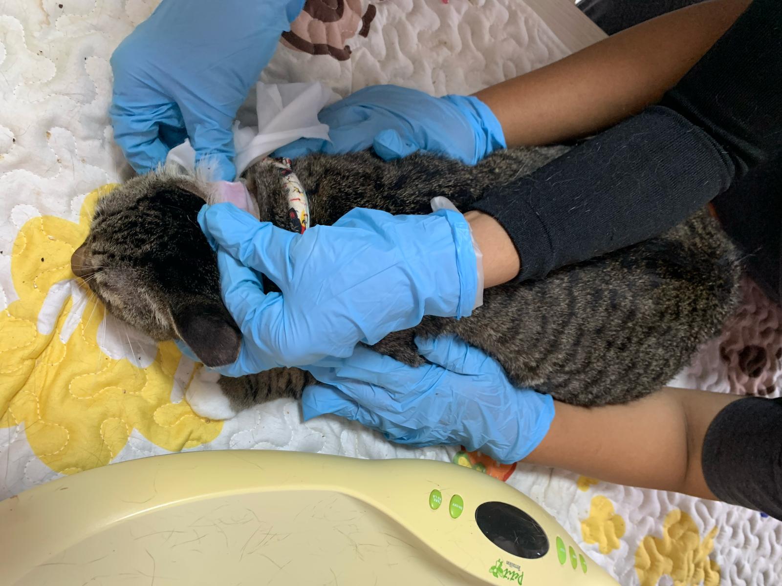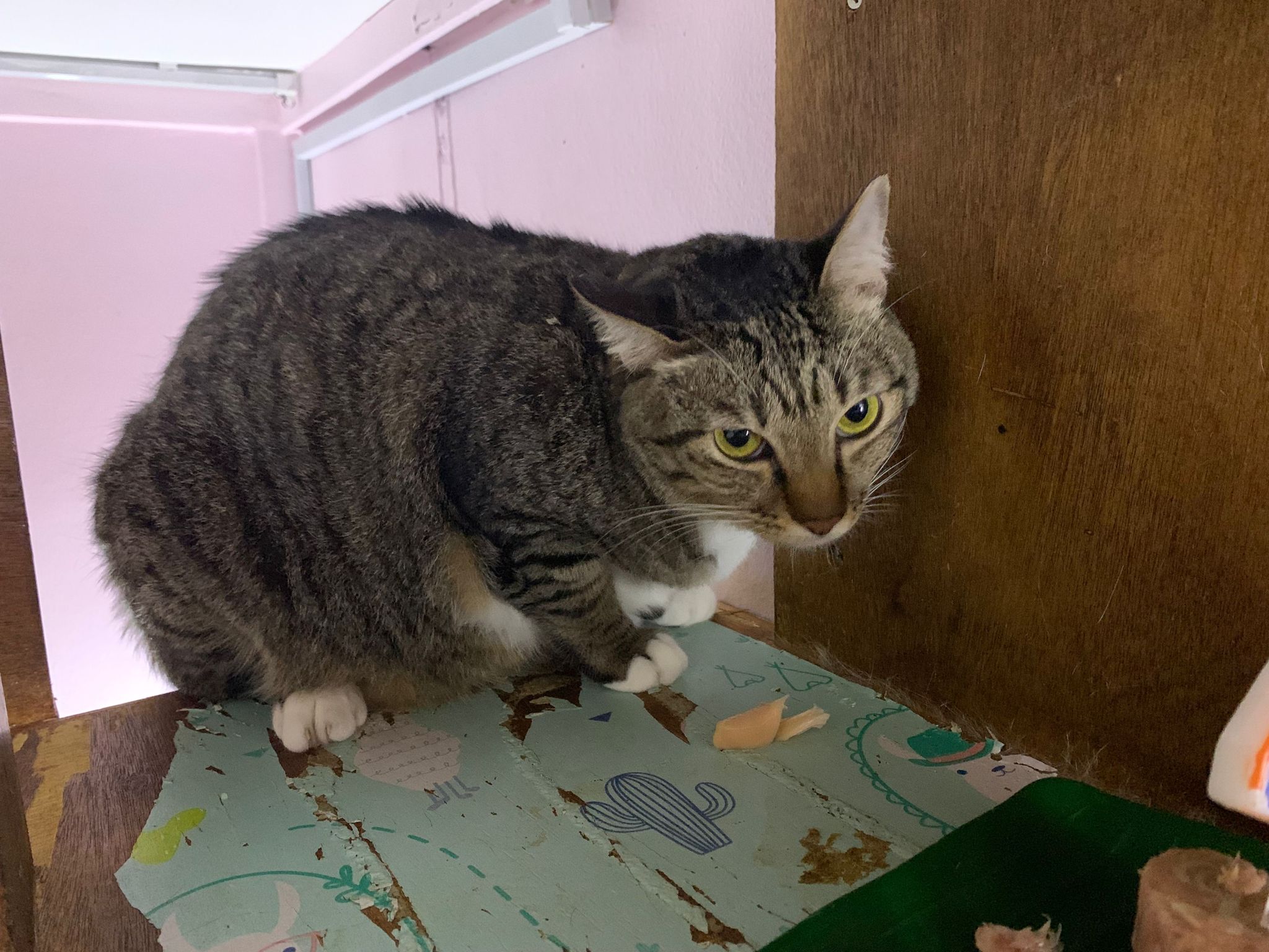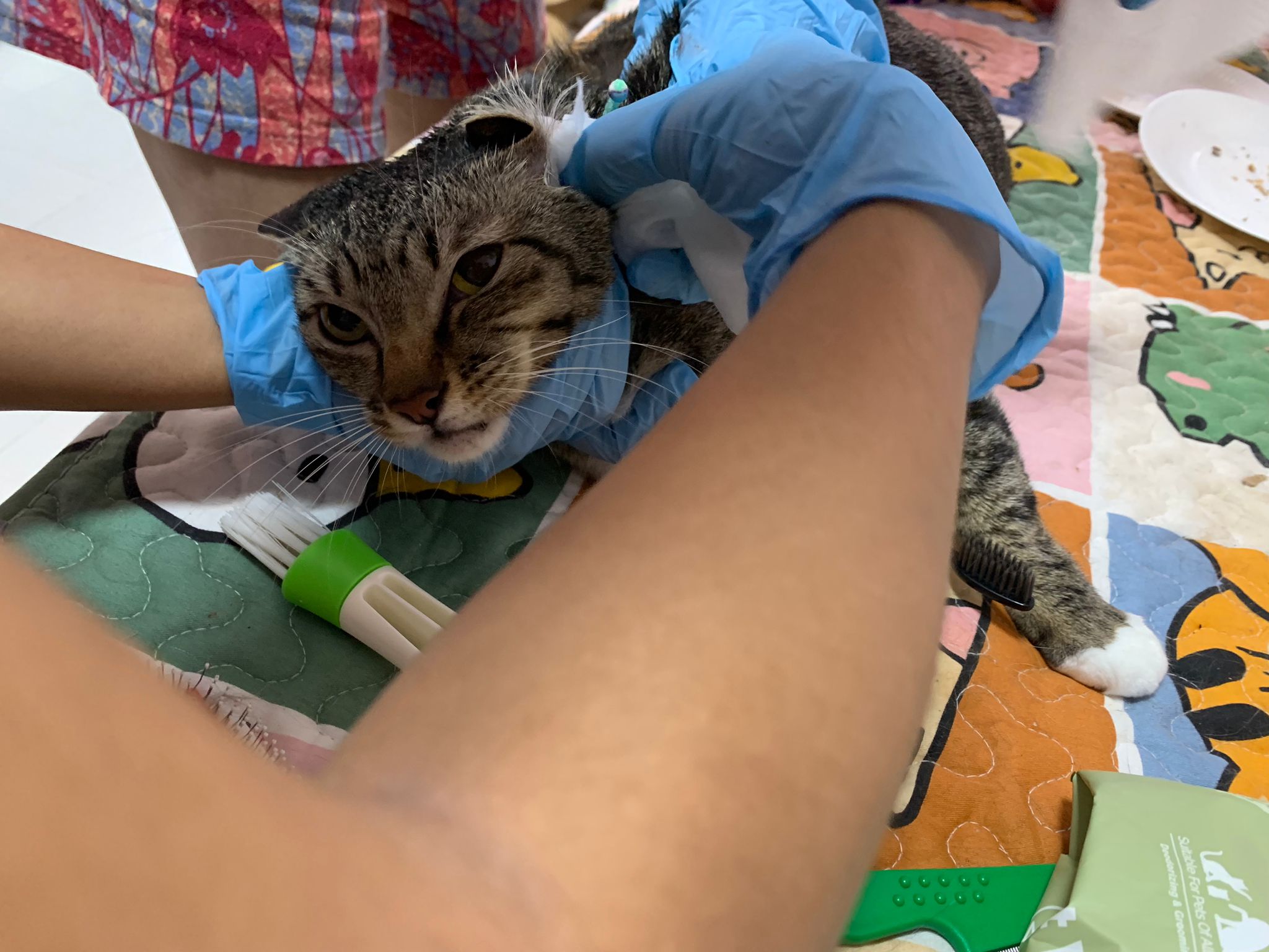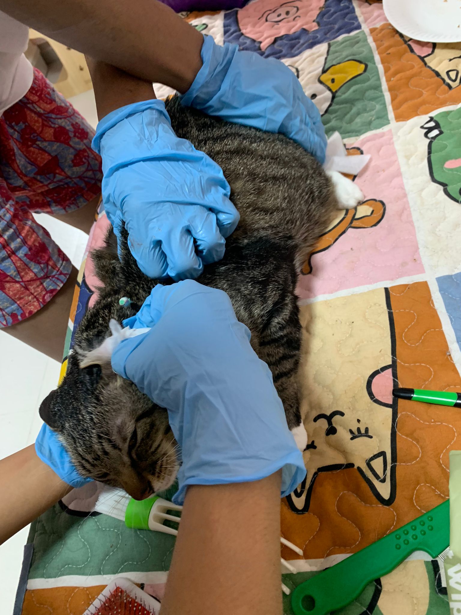 • nala, the only girl, 2.3kg female tabby. Very very siao siao. Even blur from sedation, still dash here dash there, jump up jump down the wall, wanna run from human touch. I found out her tummy area v saggy, like those typical hernia cat like that somemore she just spay recently. can’t be fats Cos she rather thin? I don’t think the previous place can confirm whether she did eat. This have to observe