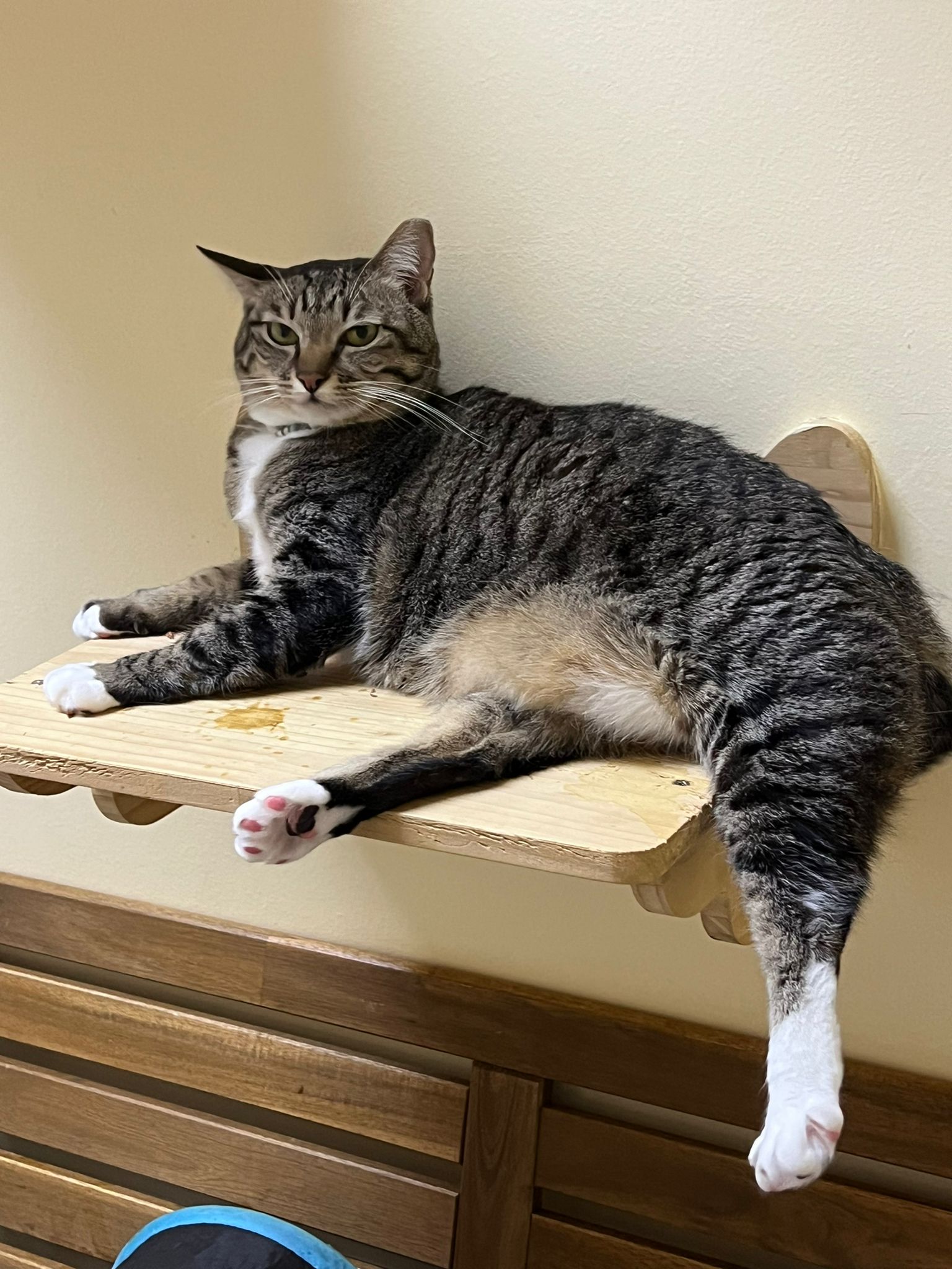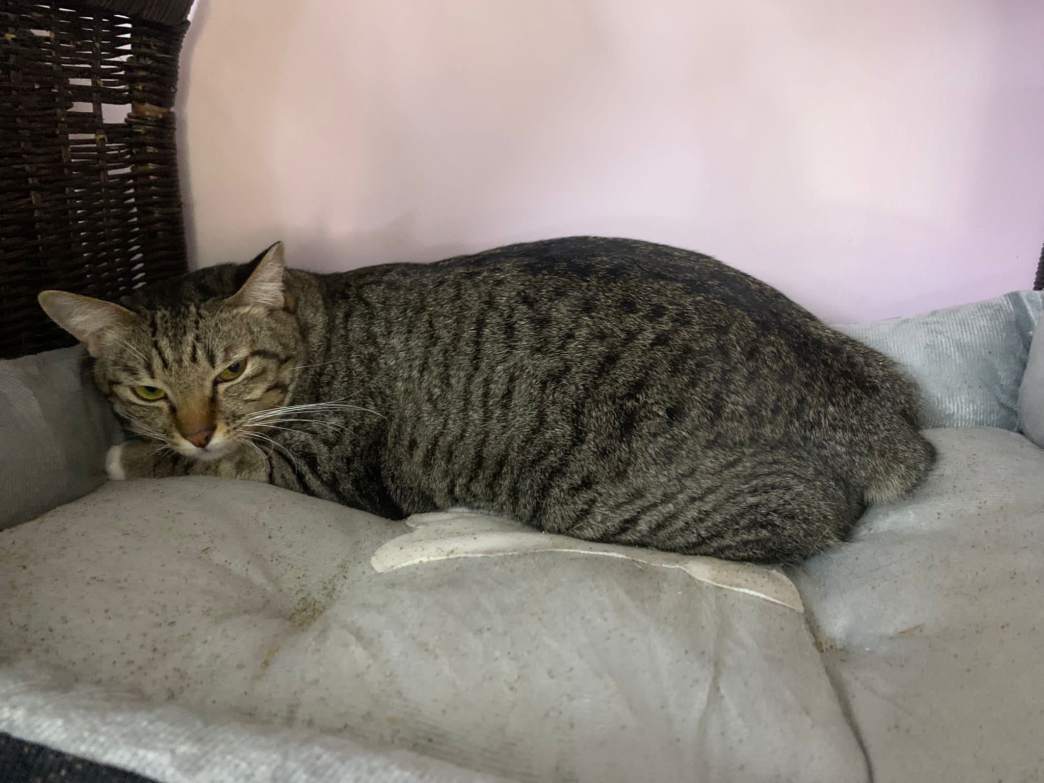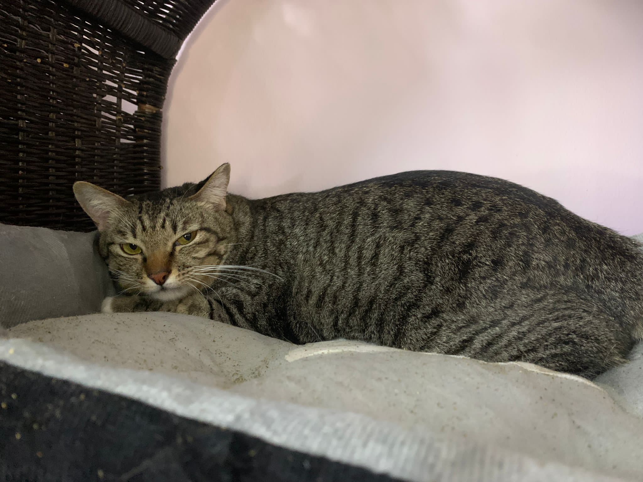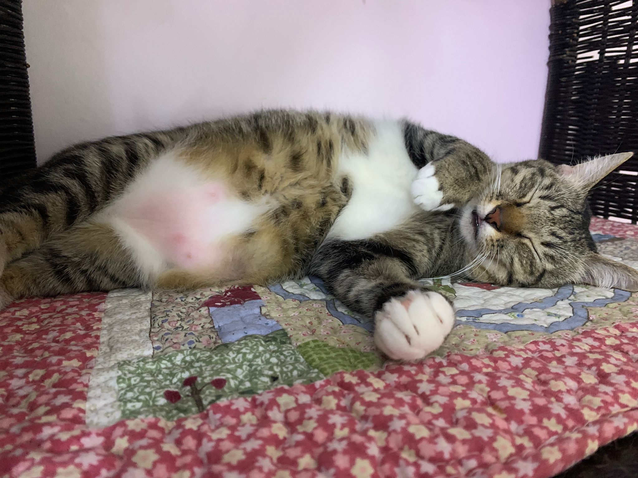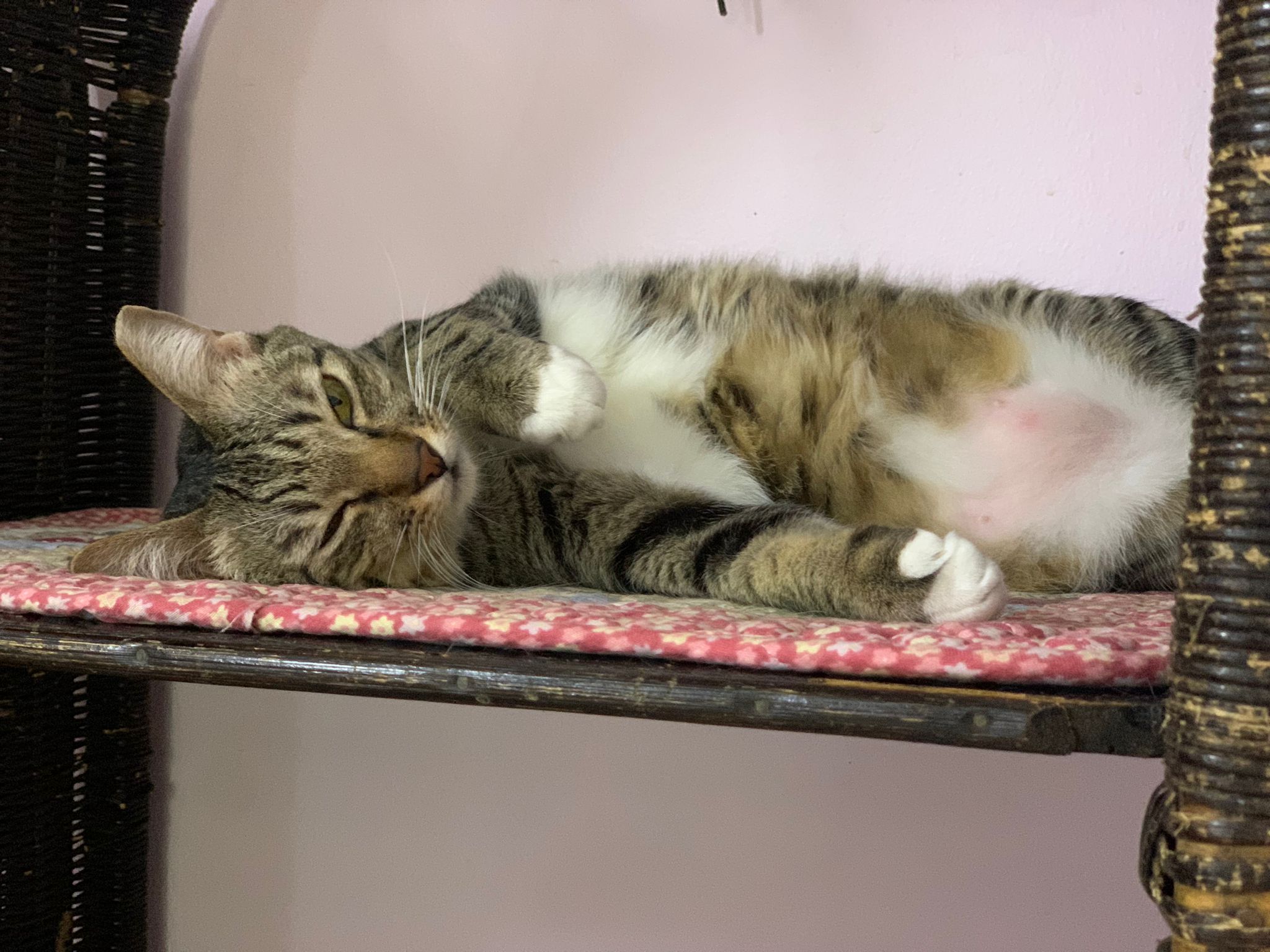 • nala, the only girl, 2.3kg female tabby. Very very siao siao. Even blur from sedation, still dash here dash there, jump up jump down the wall, wanna run from human touch. I found out her tummy area v saggy, like those typical hernia cat like that somemore she just spay recently. can’t be fats Cos she rather thin? I don’t think the previous place can confirm whether she did eat. This have to observe