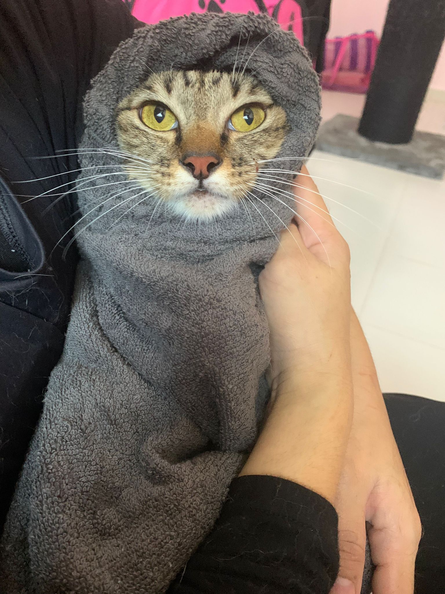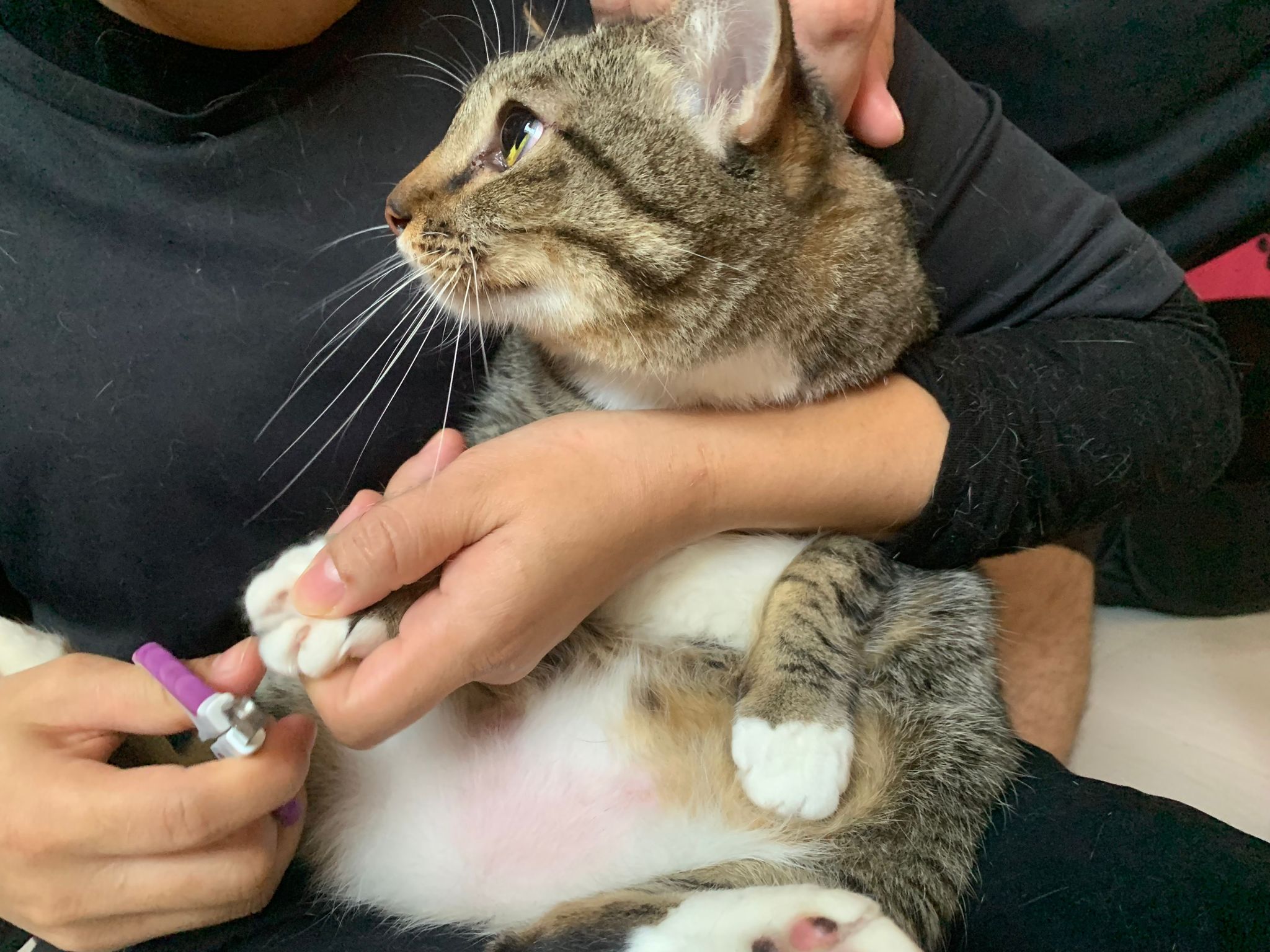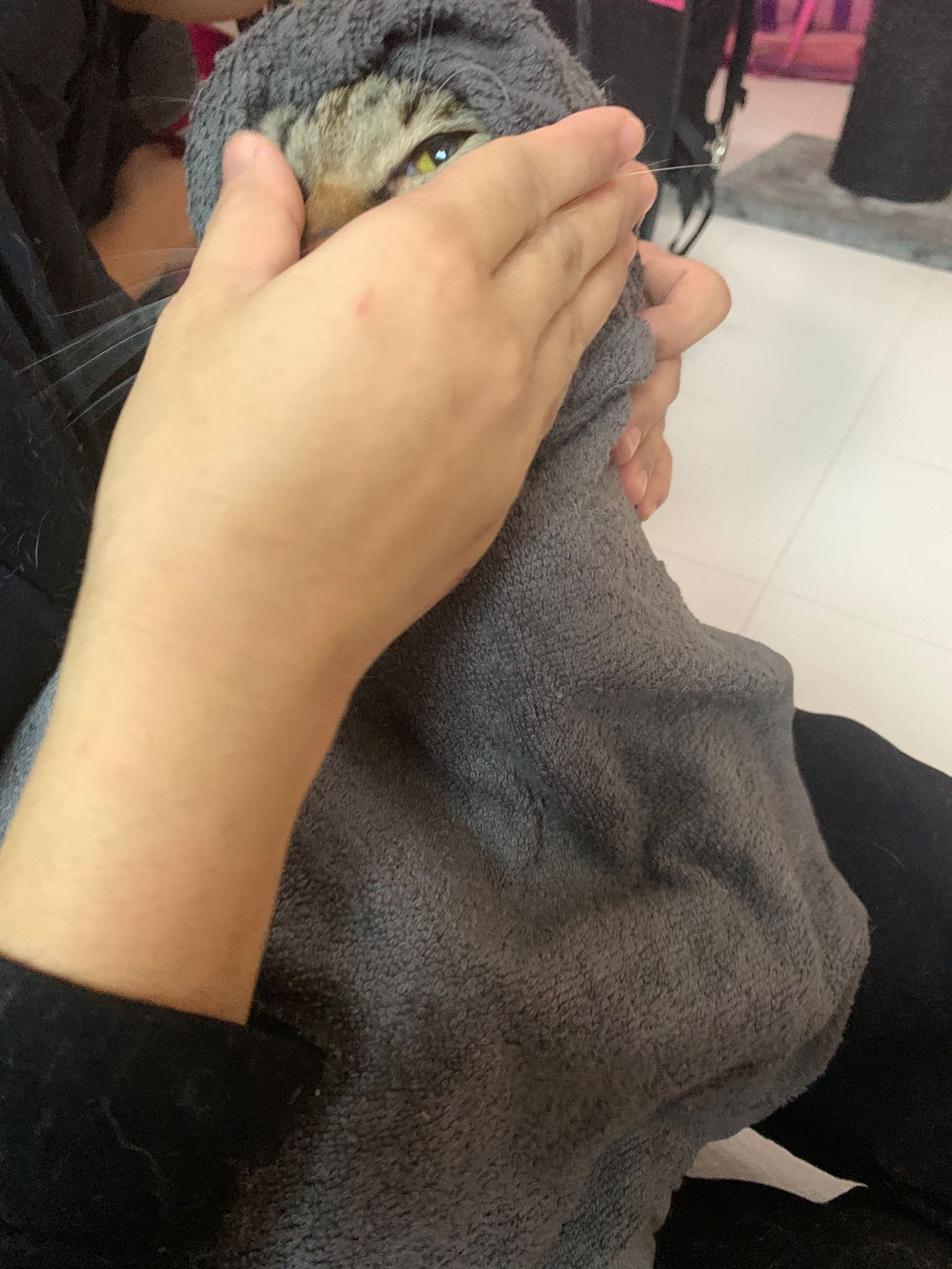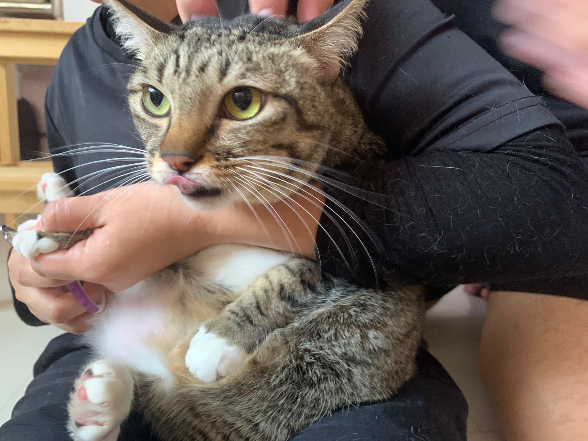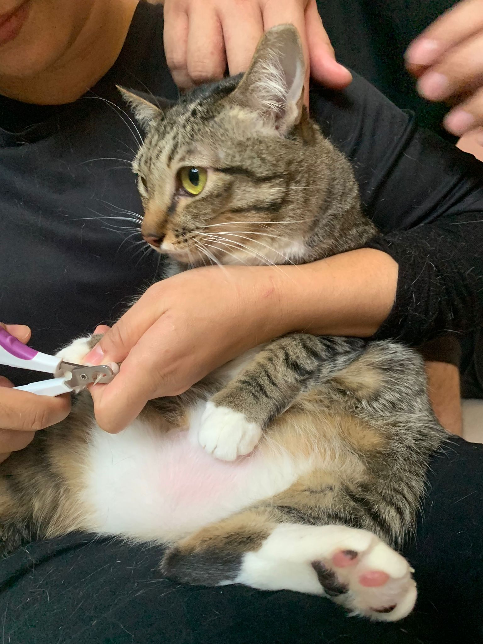 3pm+: last round of basic grooming, brush fur, clean ears, cut nails. – nails cut cut half way only. Later catch again n done.