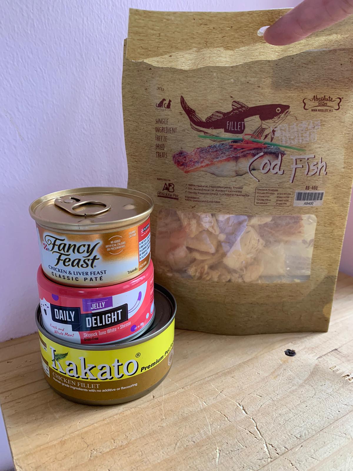• serve tuna w chicken and also fc gold chicken in gravy – food accepted by them. 🙂