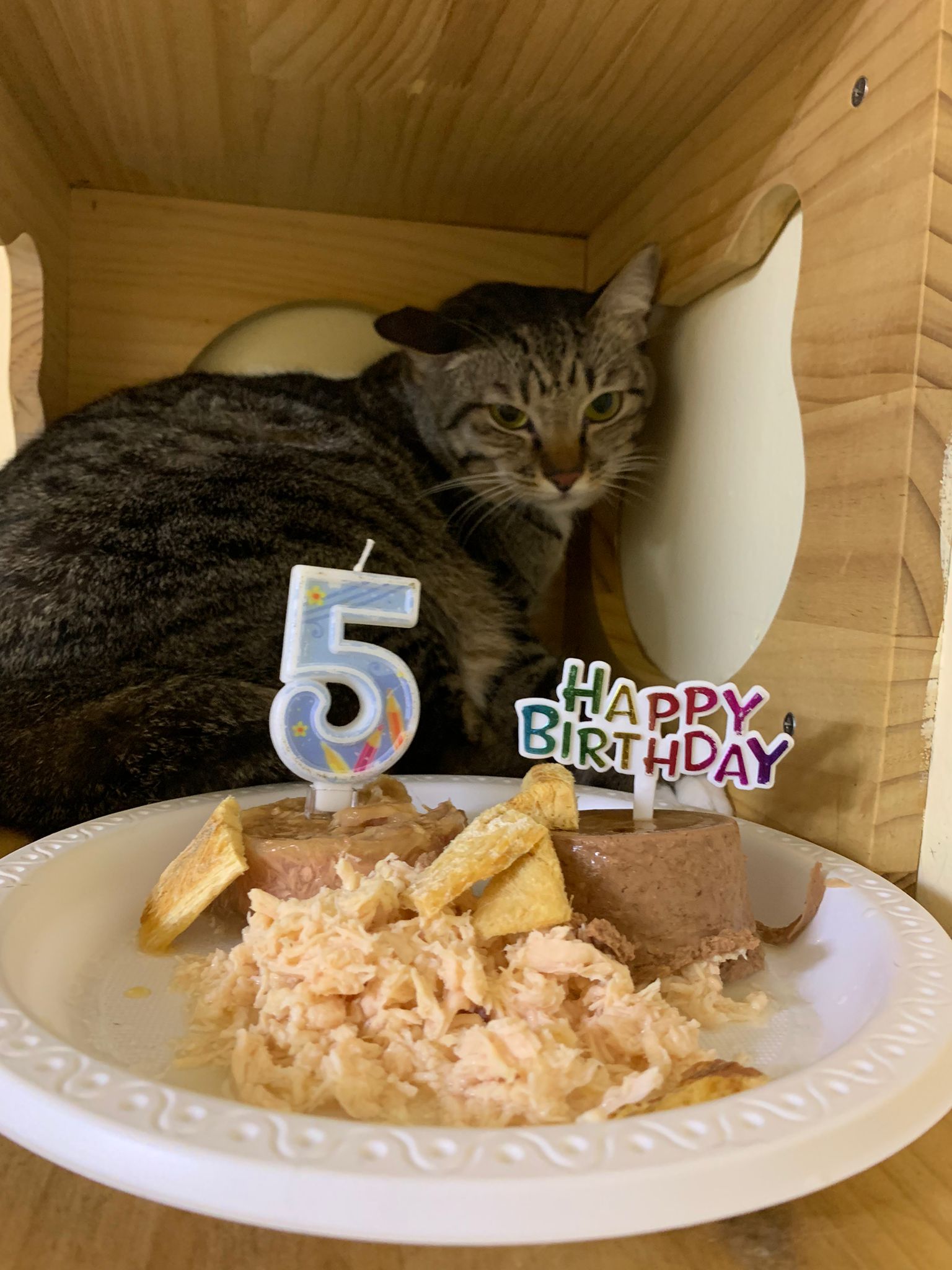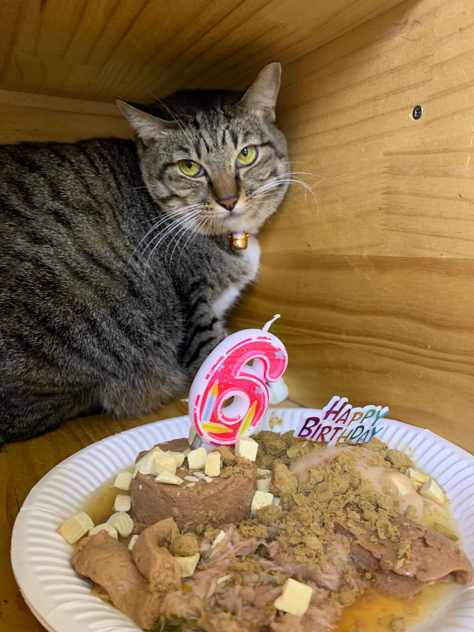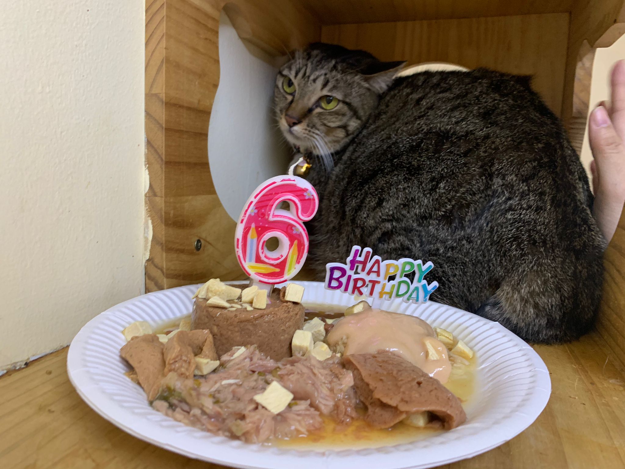 1pm+: Celebrate junior and Nala 6th bday in 猫房. She didn’t eat – keep running away from the bday plate. Sayang her lots cos she is tense. Think she is happier if I don’t celebrate her bday, just play w her will do