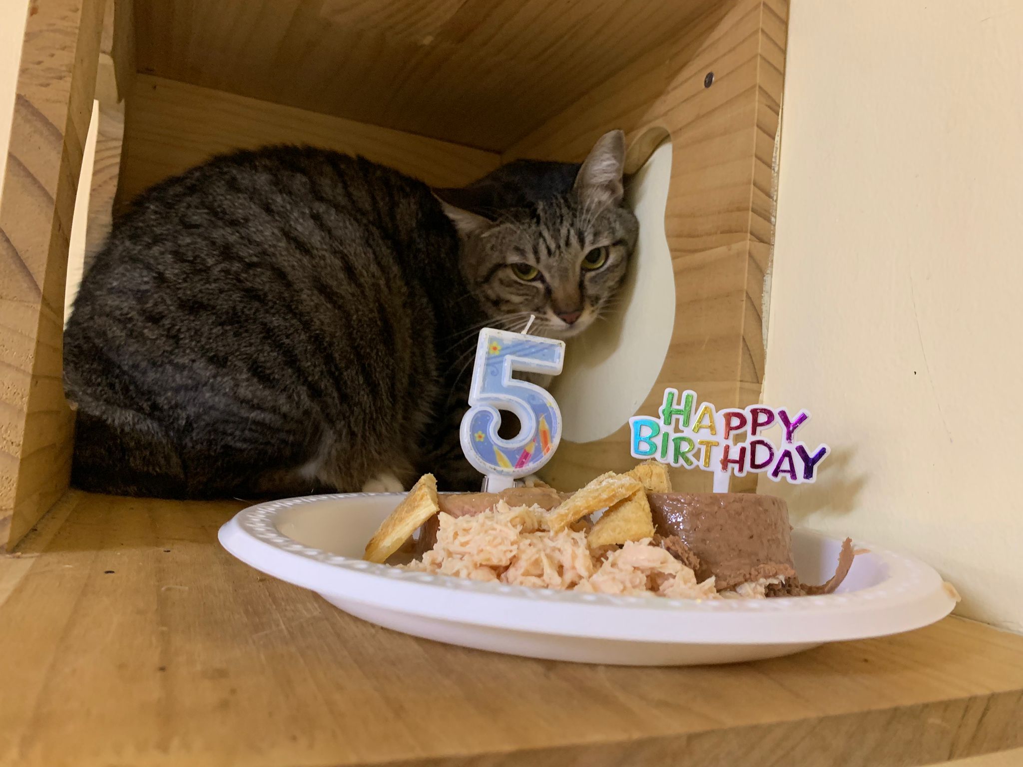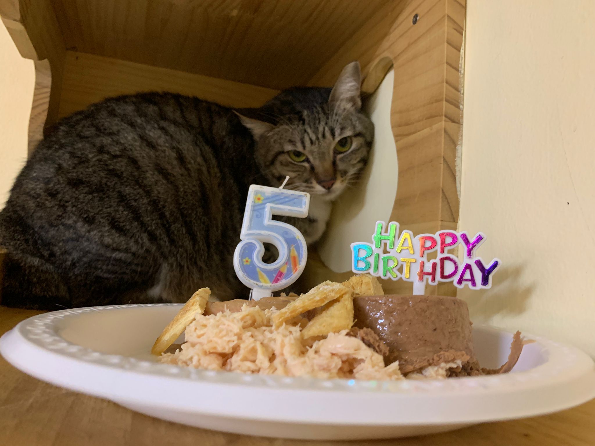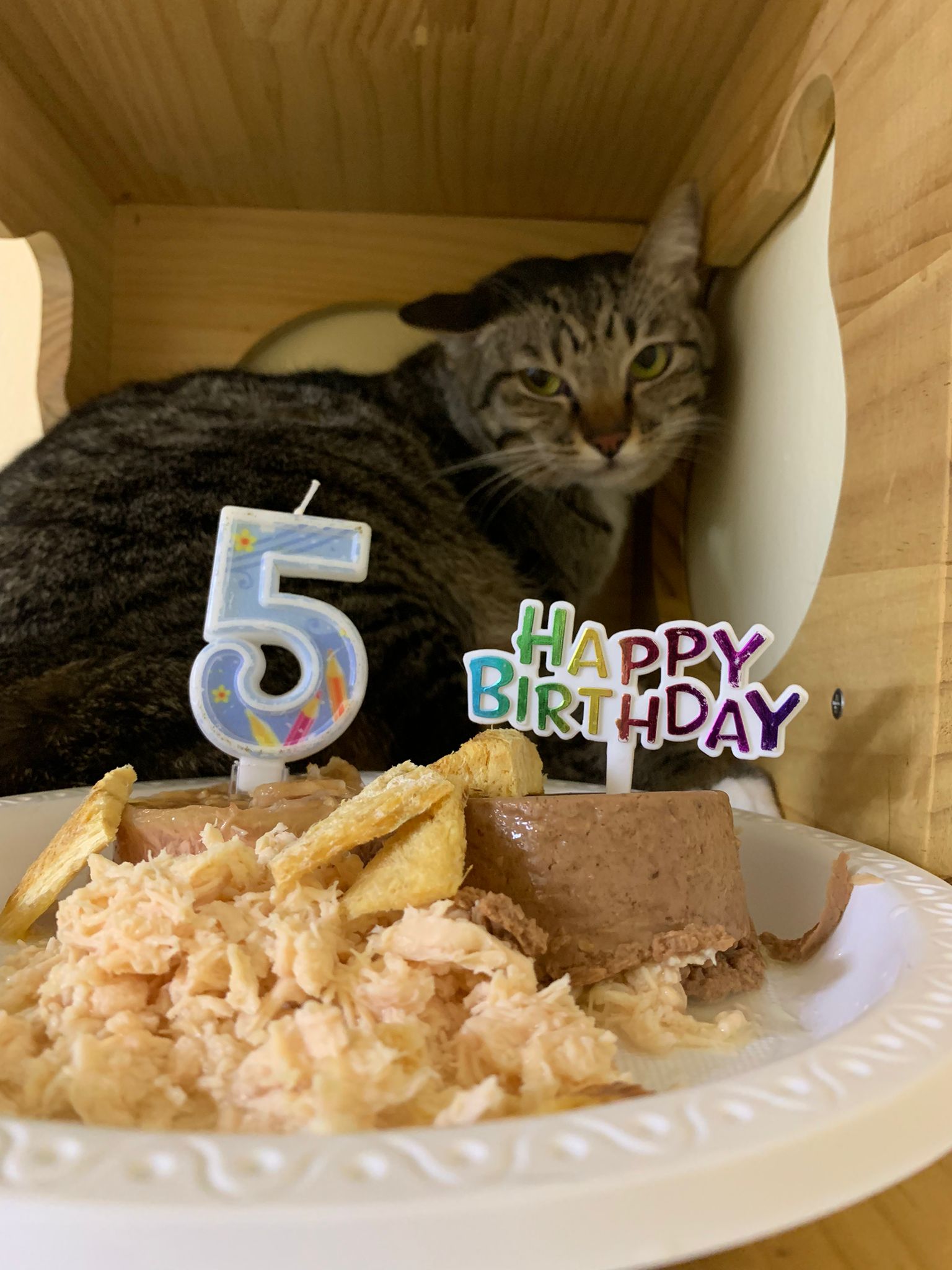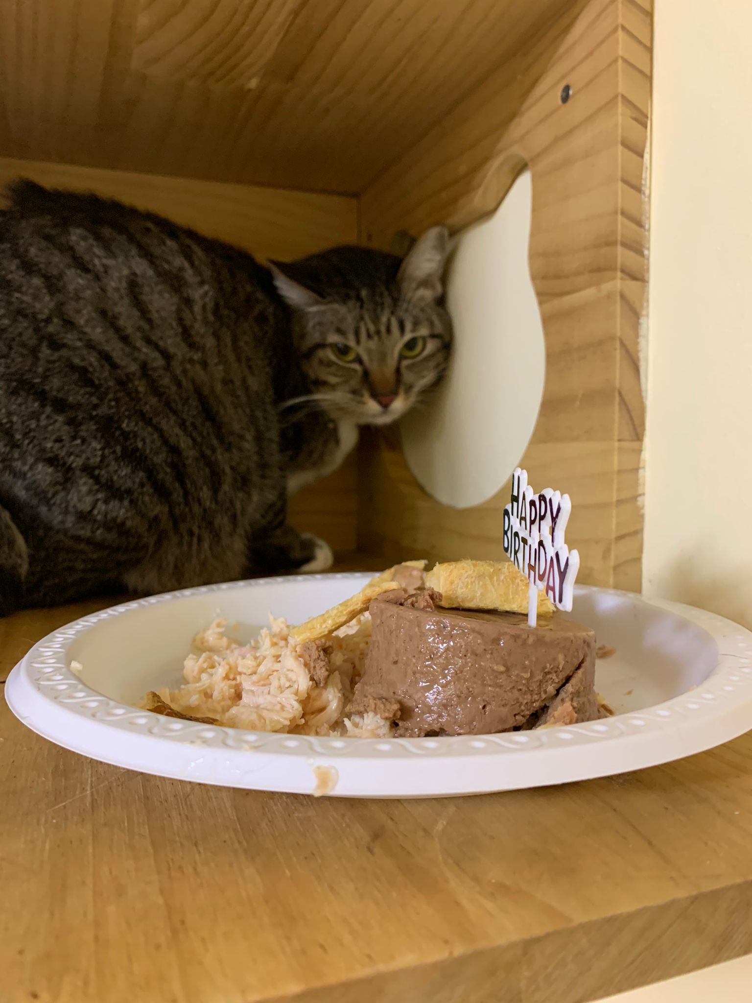 1pm+: Celebrate junior and Nala 6th bday in 猫房. She didn’t eat – keep running away from the bday plate. Sayang her lots cos she is tense. Think she is happier if I don’t celebrate her bday, just play w her will do