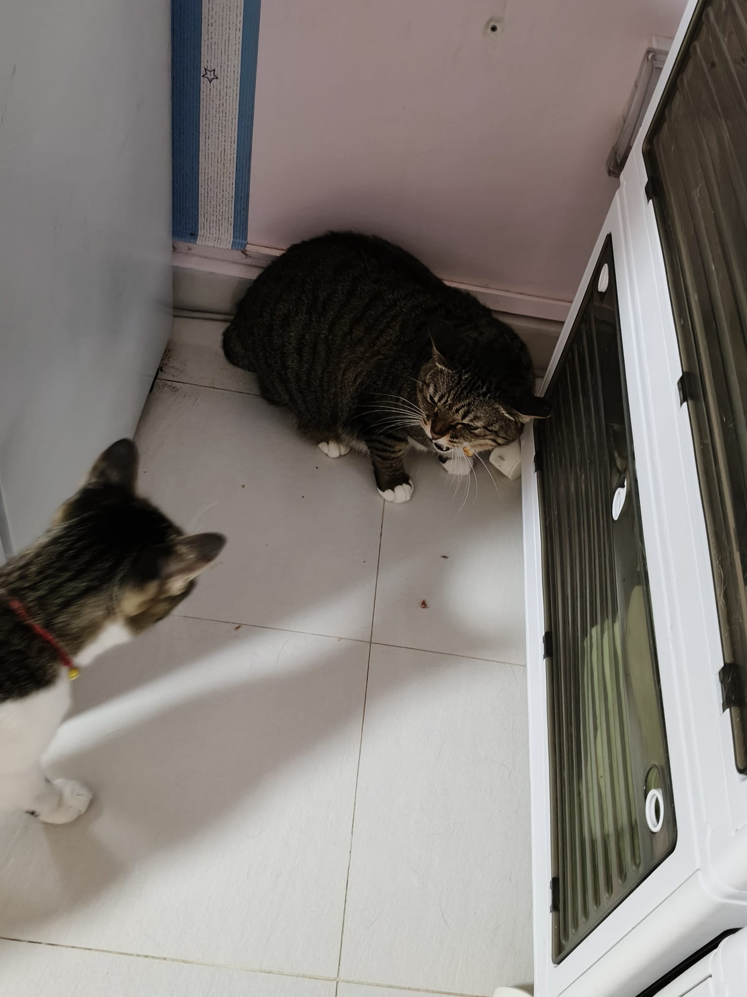 * at least for 5 days nala had been on the dustbin condo in room a when she will just watch me subcut Maxine and just look at me Loh – she know the routine of my hand going v near her but not touching her Cos I’m putting down the needle and taking syringe to feed Maxine