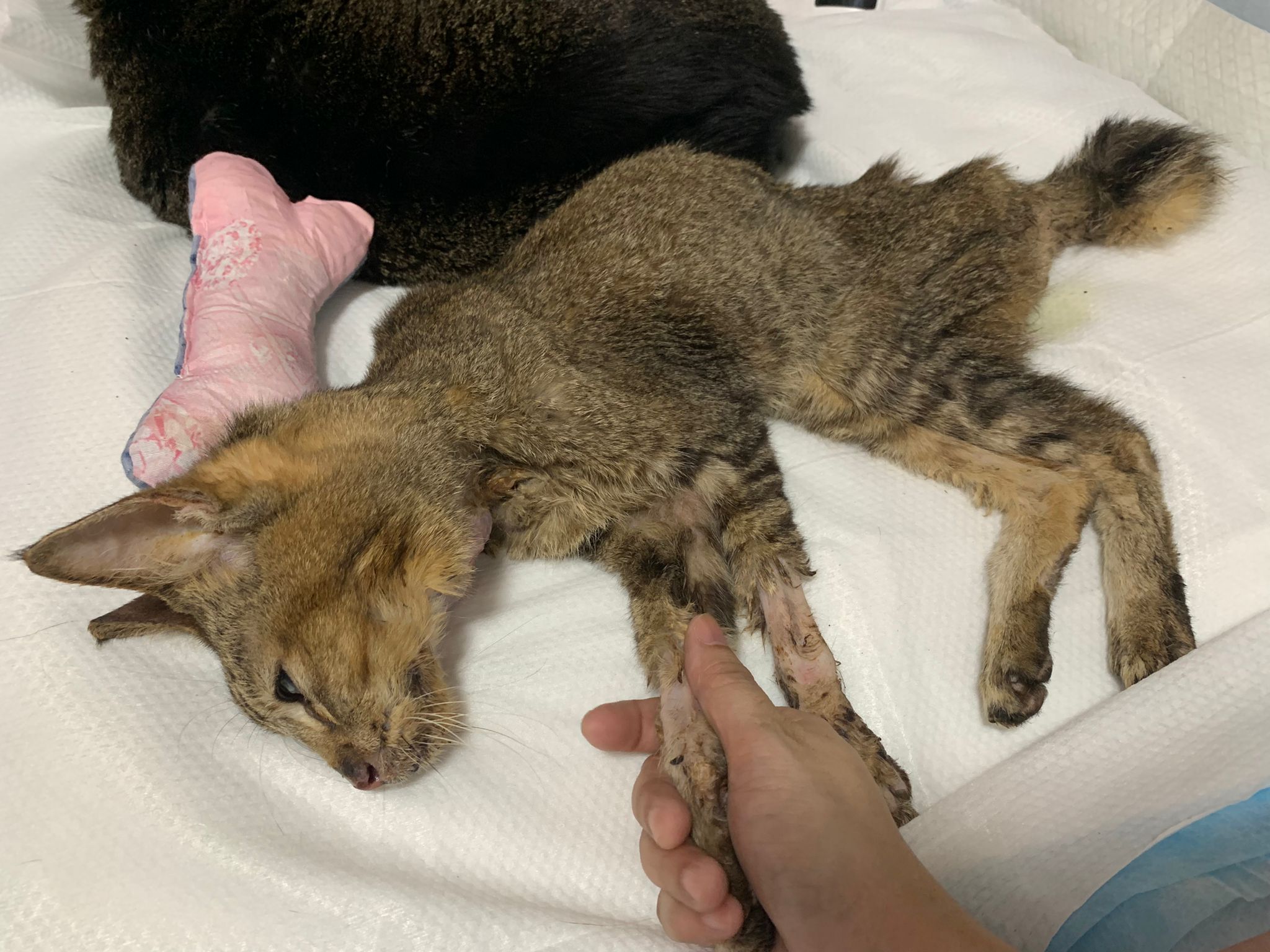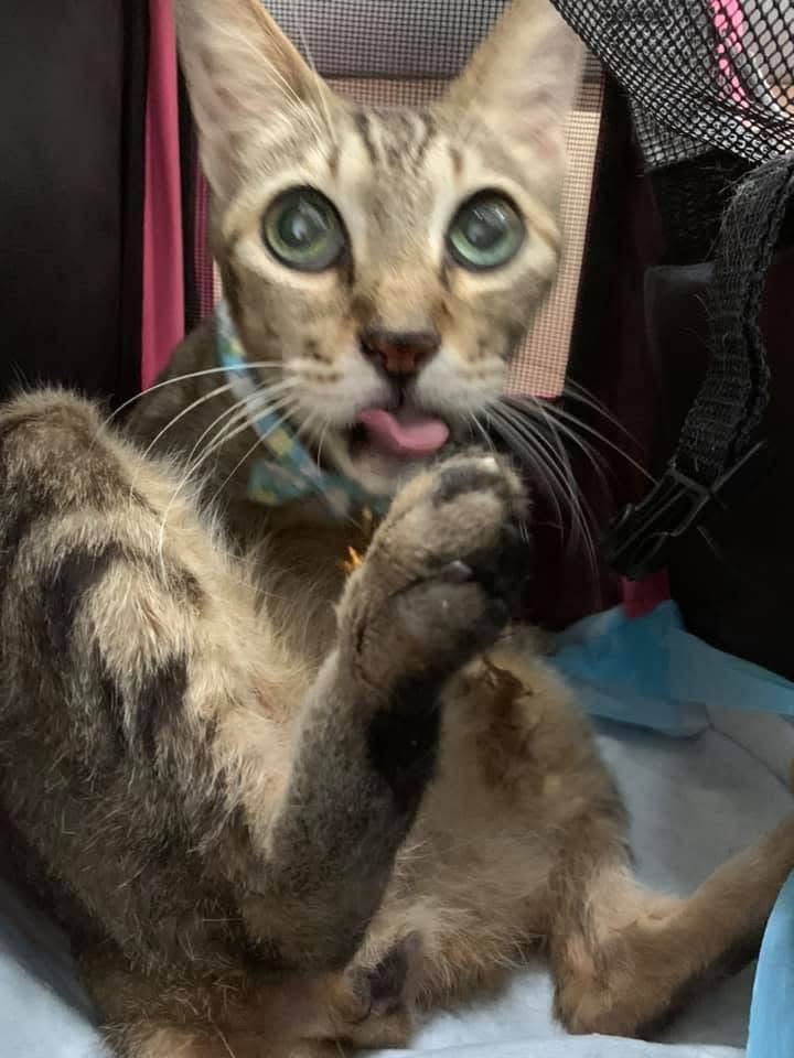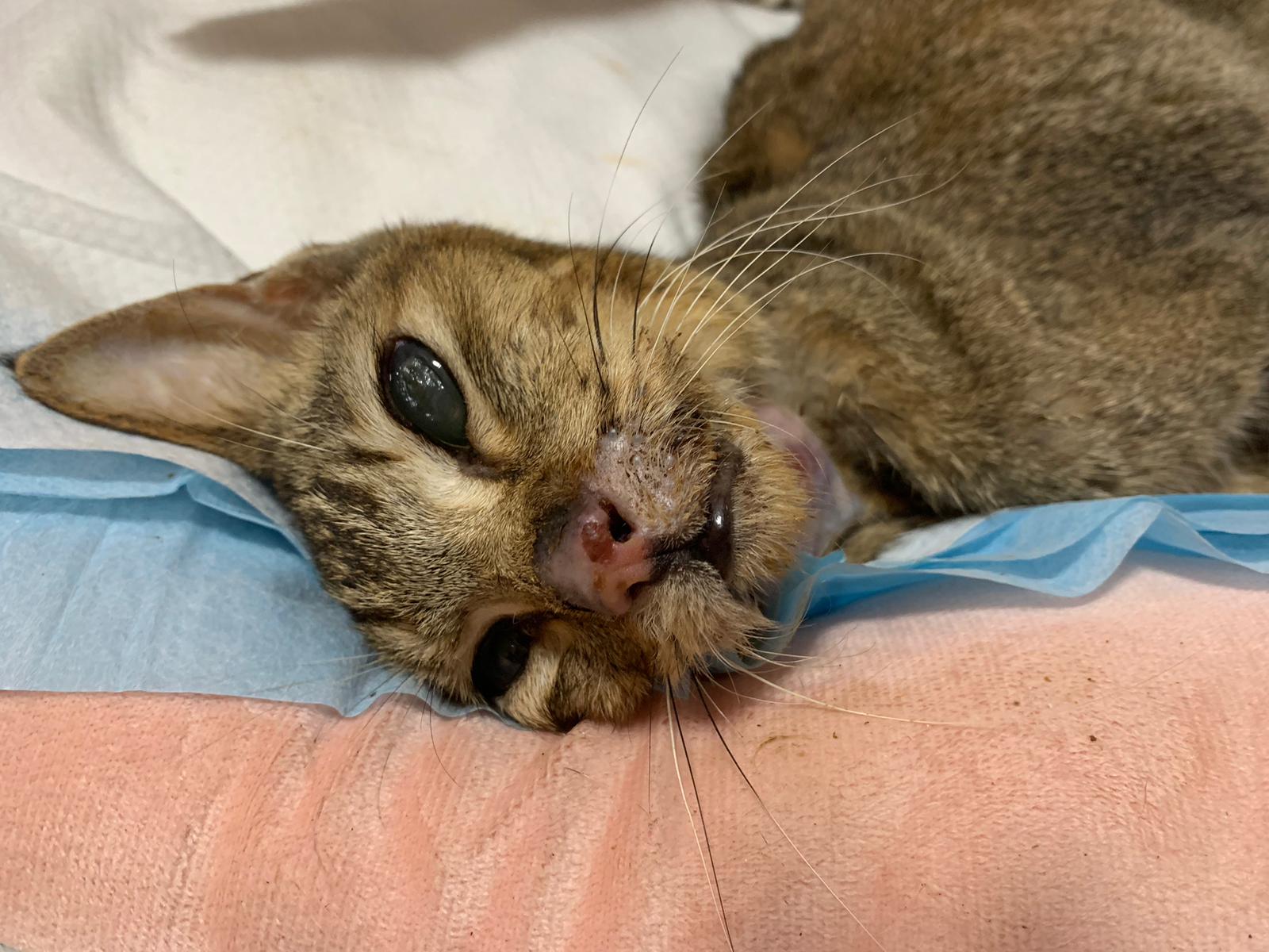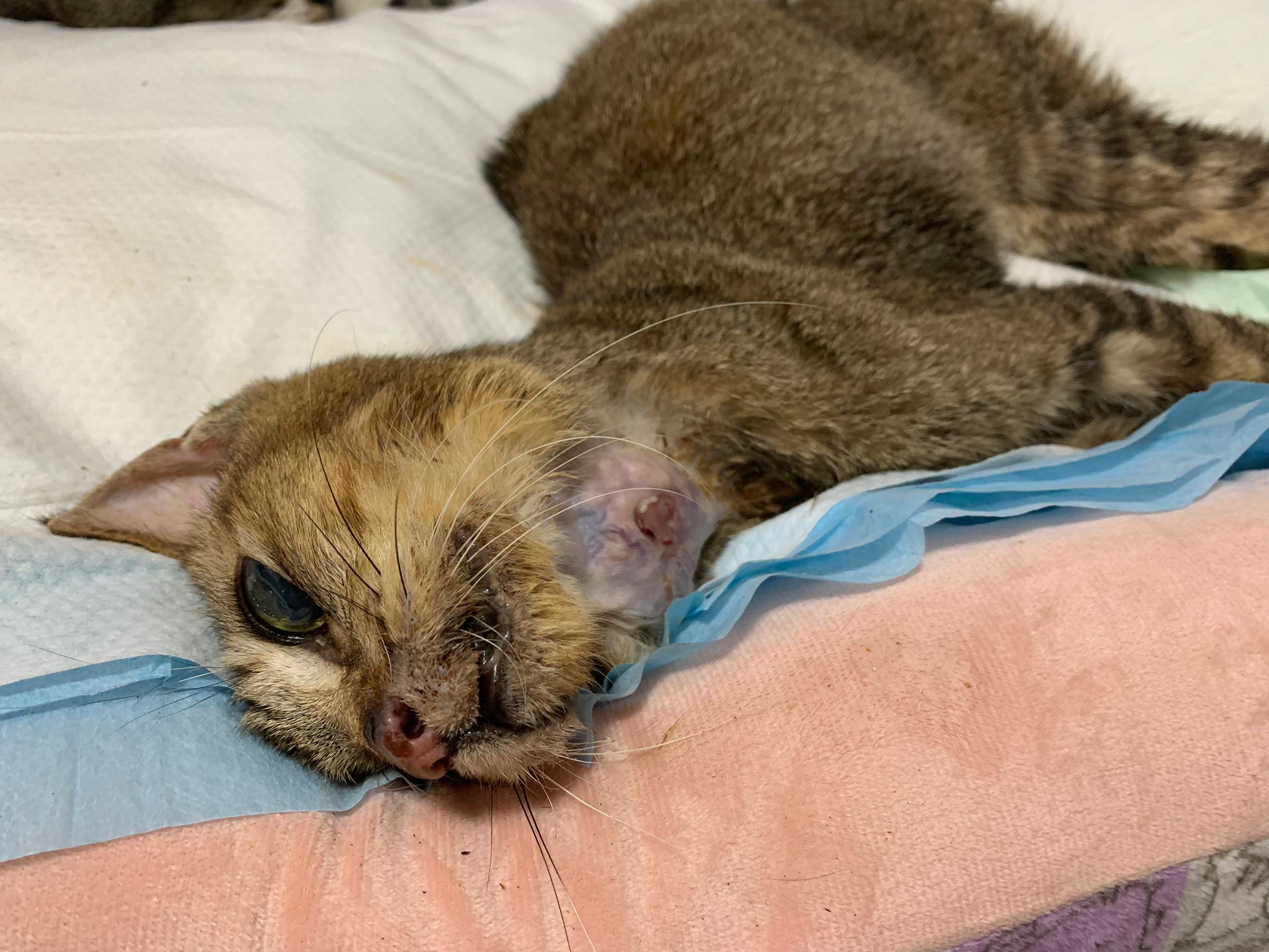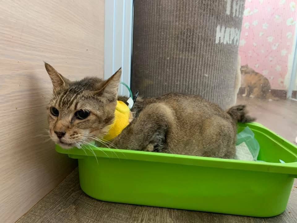 Morning: should be a good thing that she still got pus coming out … clean her up. She is still eating well. I’ll pack some of 猫房 stuff and give her another snack meal b4 I leave. I Subcut her left body, and the fluid flow to her leg again, now paw swollen. Tmr must remember to Subcut right side better (will flow to tummy)