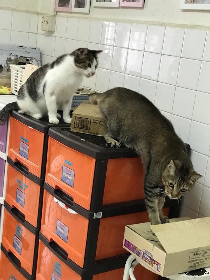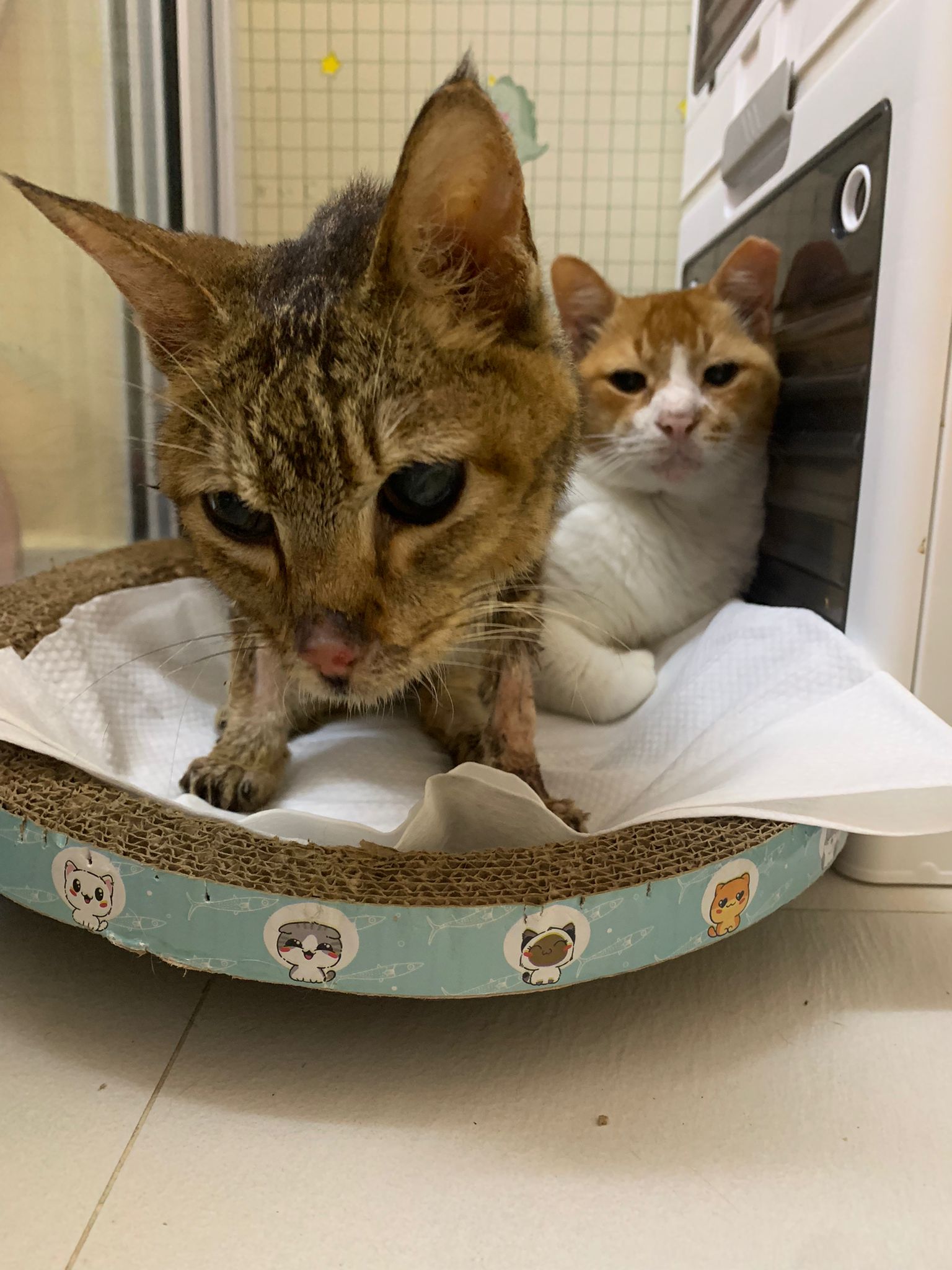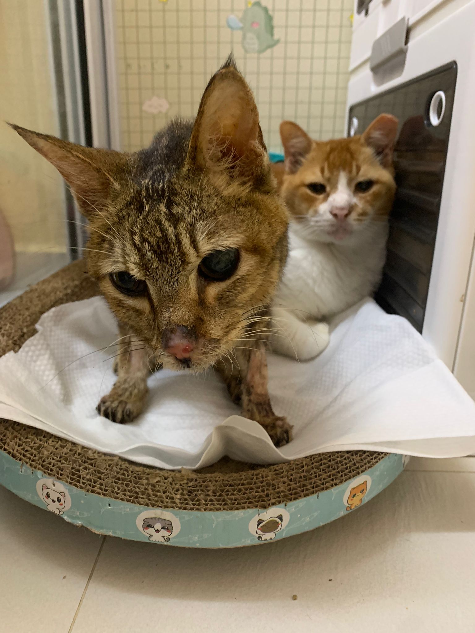 Rescued with Cookie when I go and see her thinking that she might be my lost Comm cat. Took them in as 猫房 cats cos someone wanna dump them somewhere.