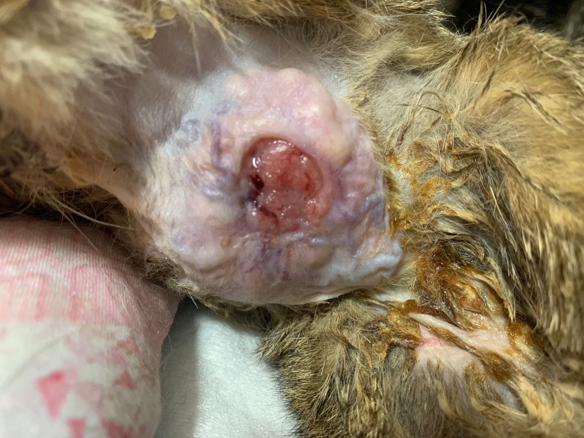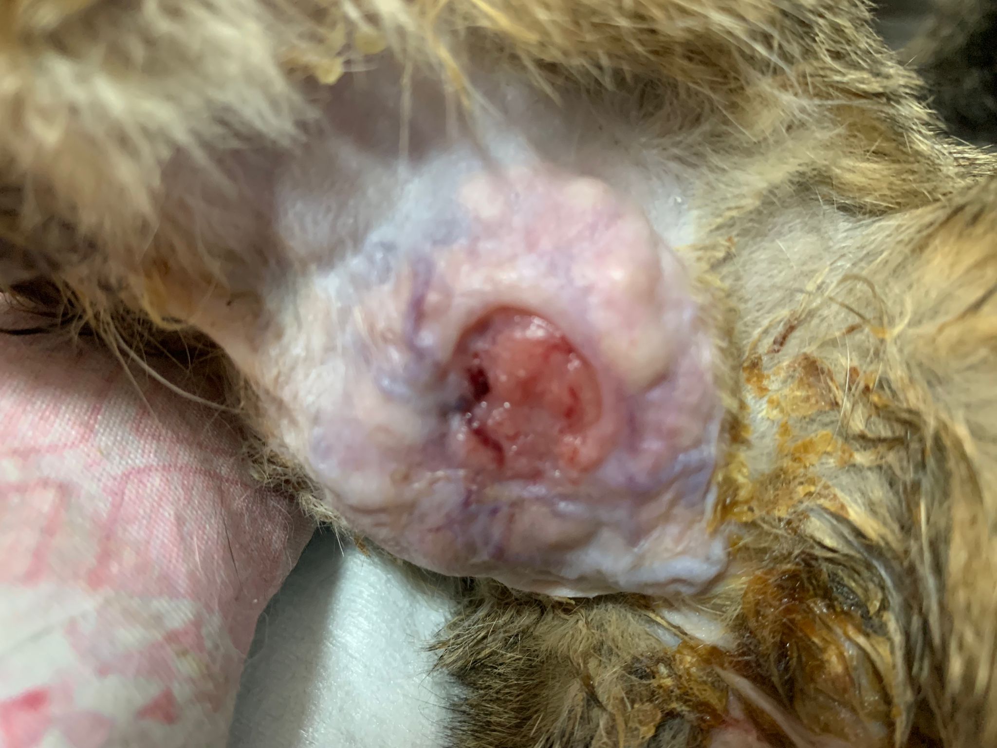 Morning: today lots of pus when I remove bandage. Clean her up. Told her clean as much. 2 weeks later I scare she ok w once every 2/3 days or not when I’m not ard. apply honey while I do other stuff. She keep following me for extra meal time. 1.81kg – lose 20g in 4 days