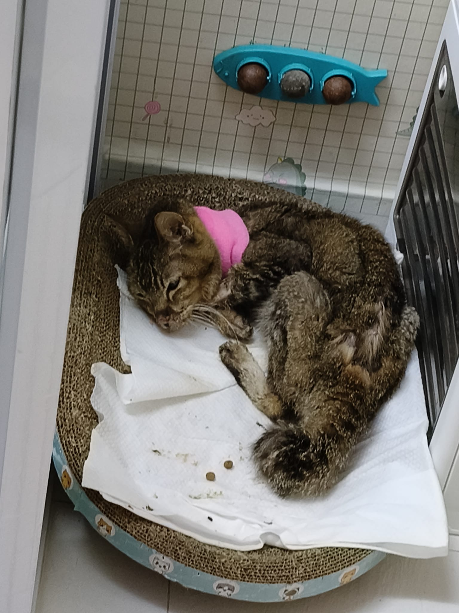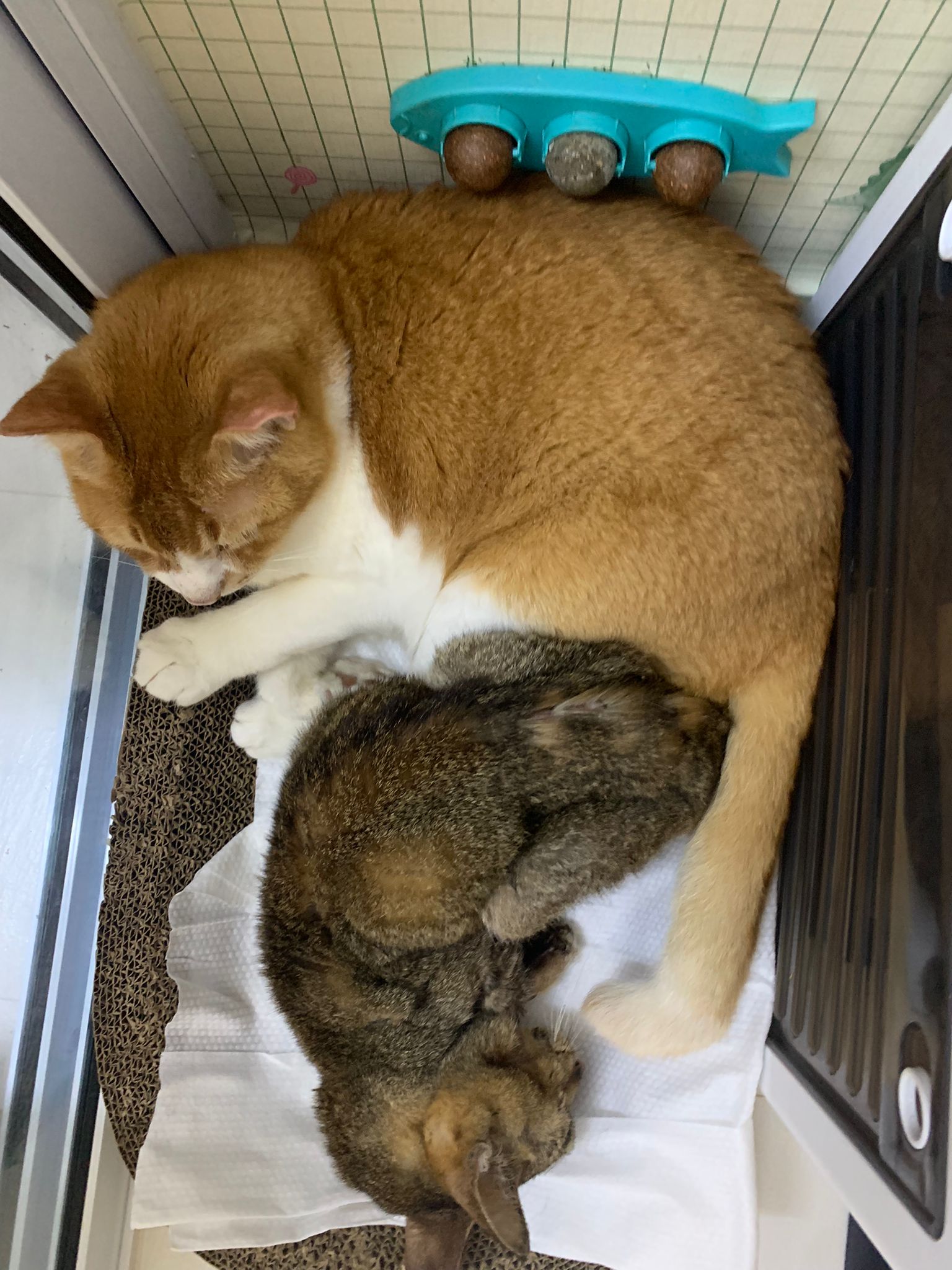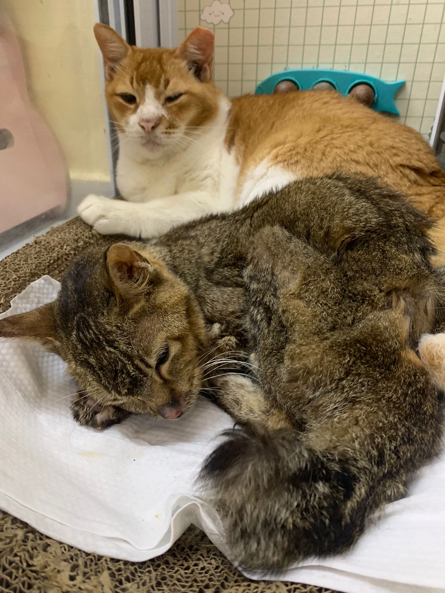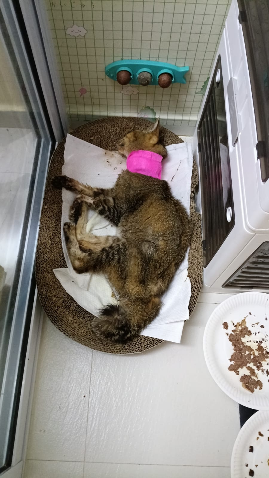 12pm: back in 猫房, too rush I forgot to bandage her again. Sigh. Given Subcut w kcl though n etc. Tao tao double the size of rena.