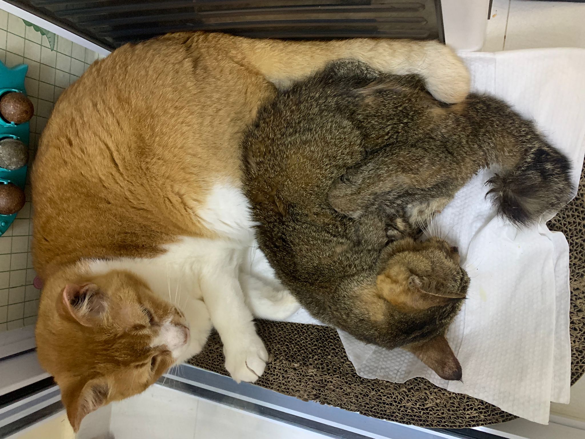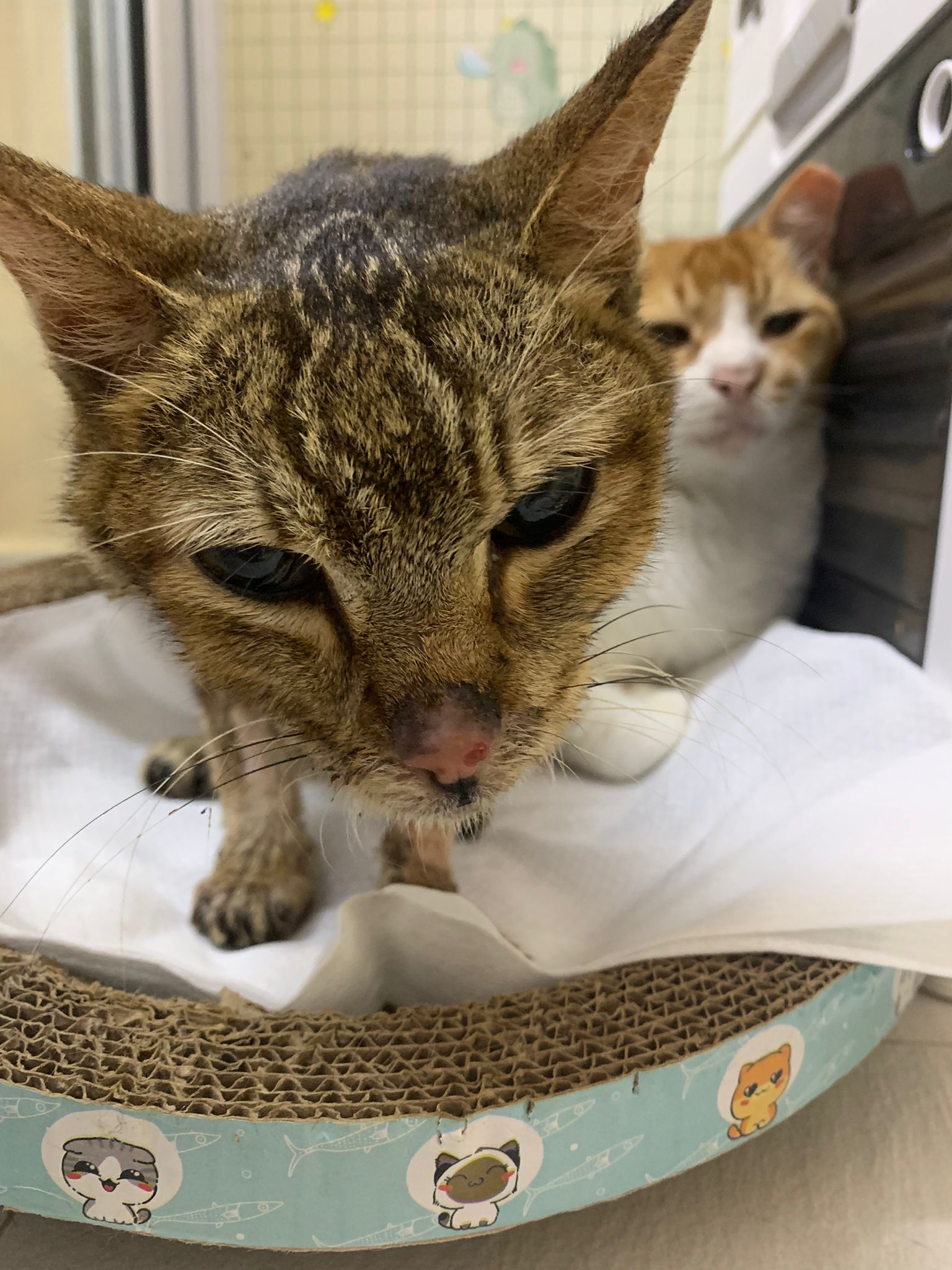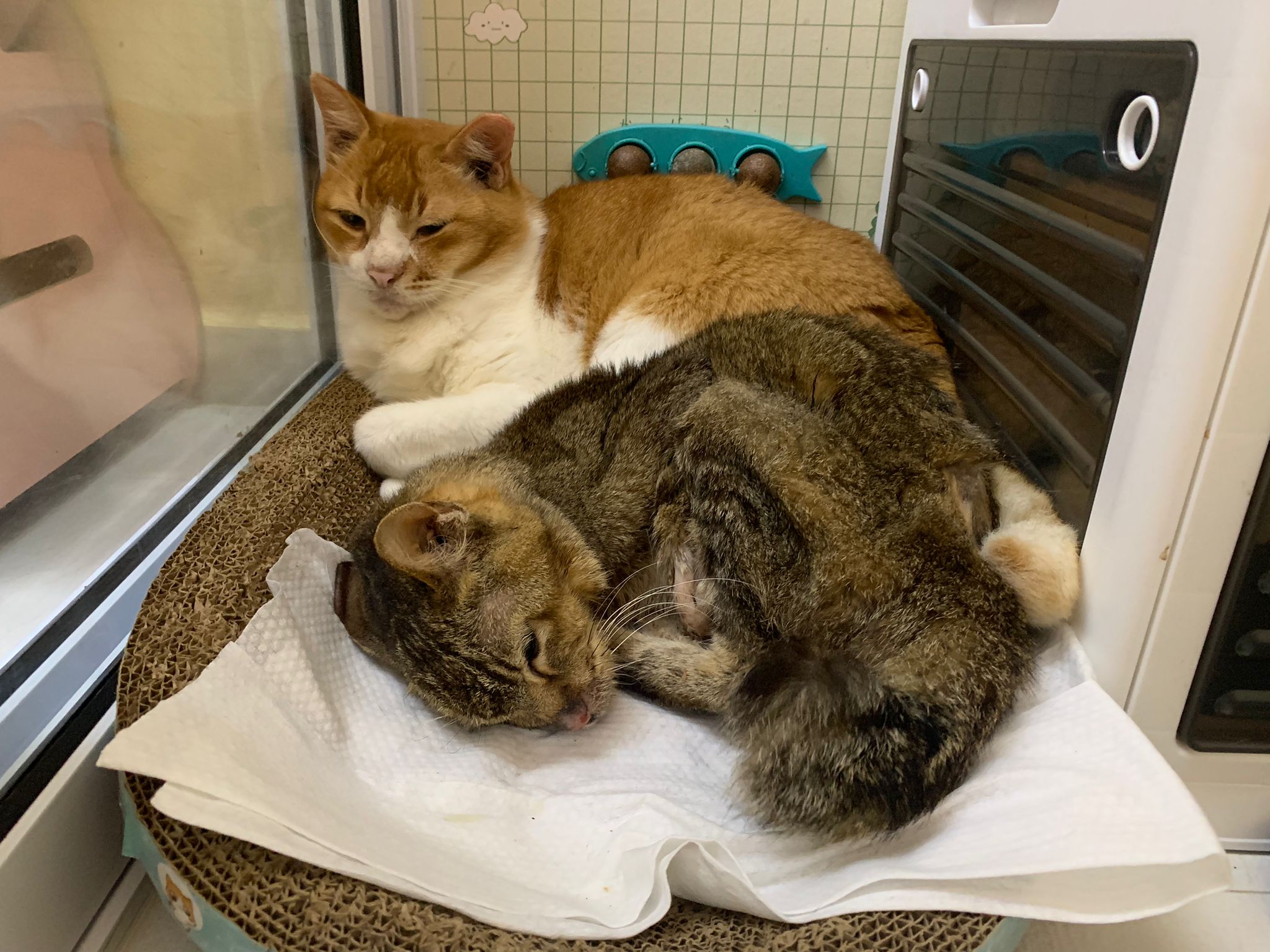 12pm: back in 猫房, too rush I forgot to bandage her again. Sigh. Given Subcut w kcl though n etc. Tao tao double the size of rena.