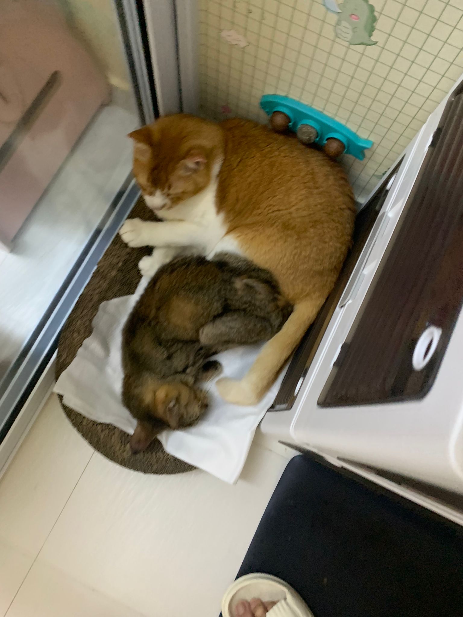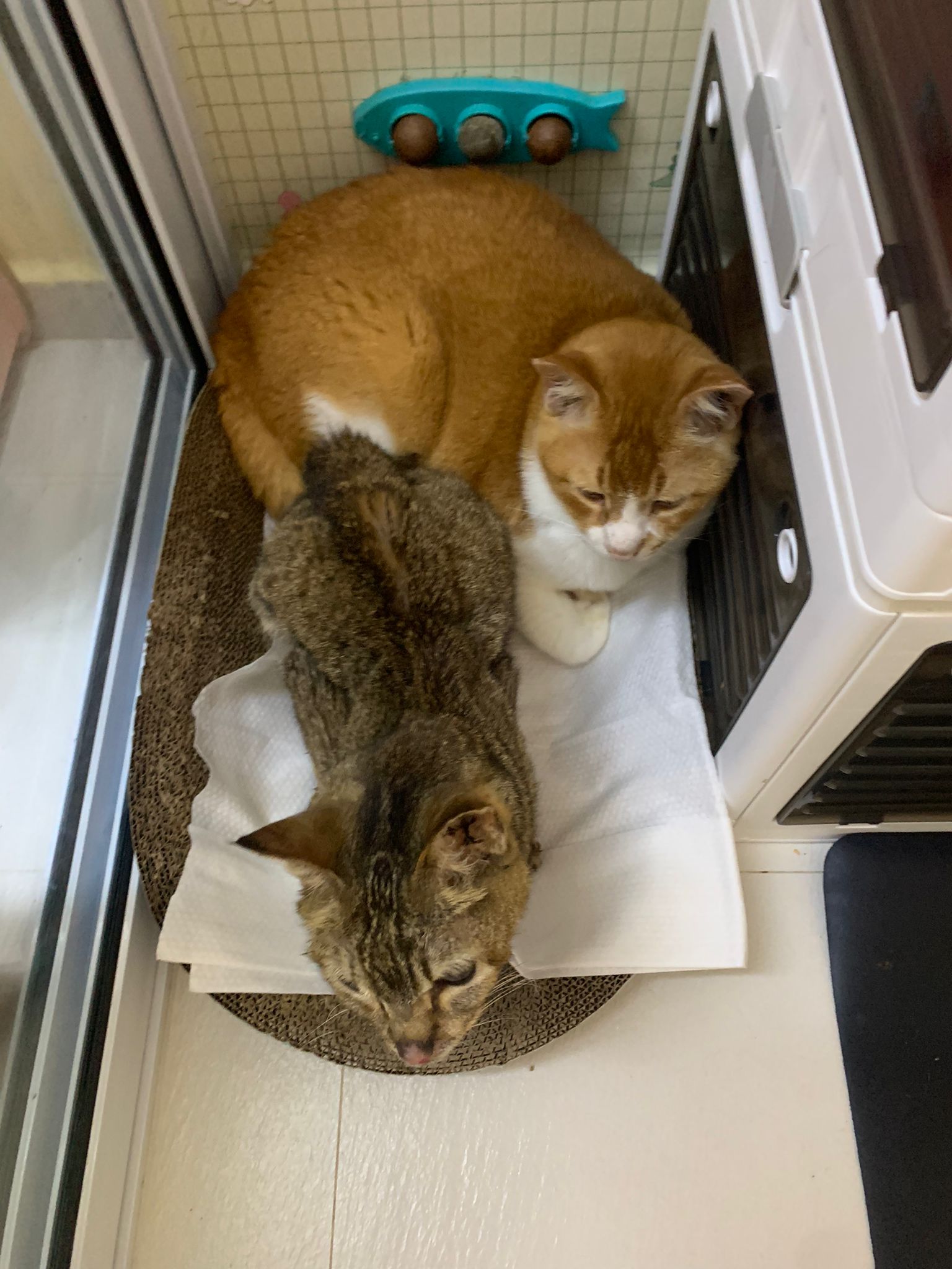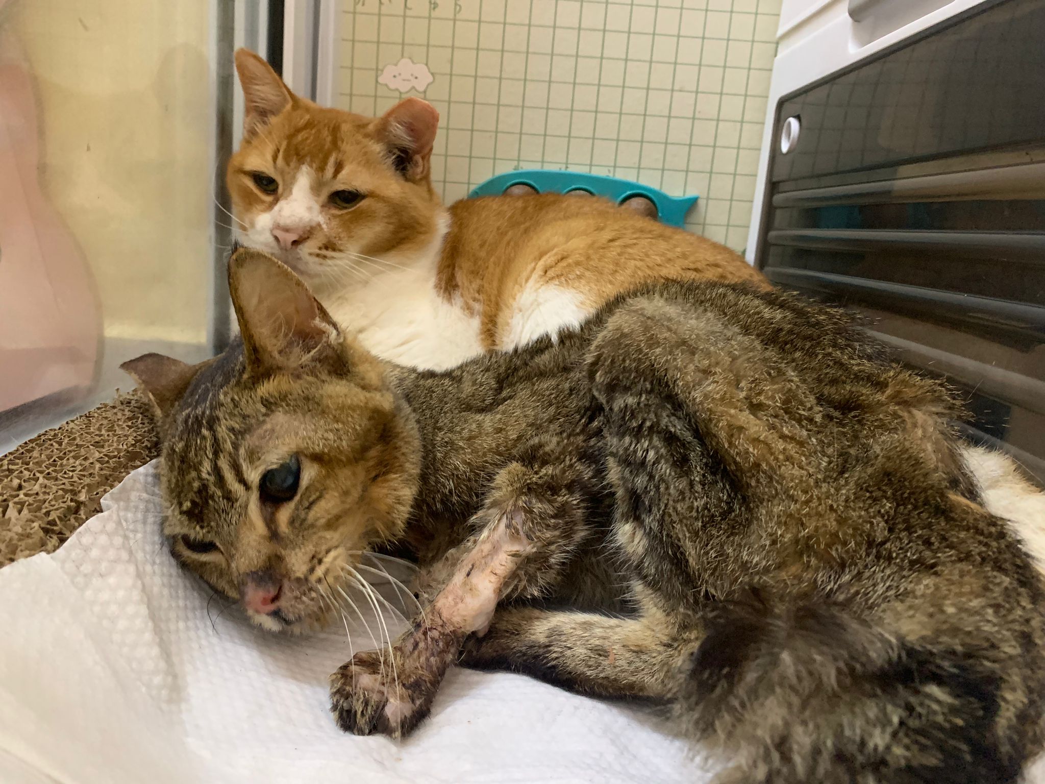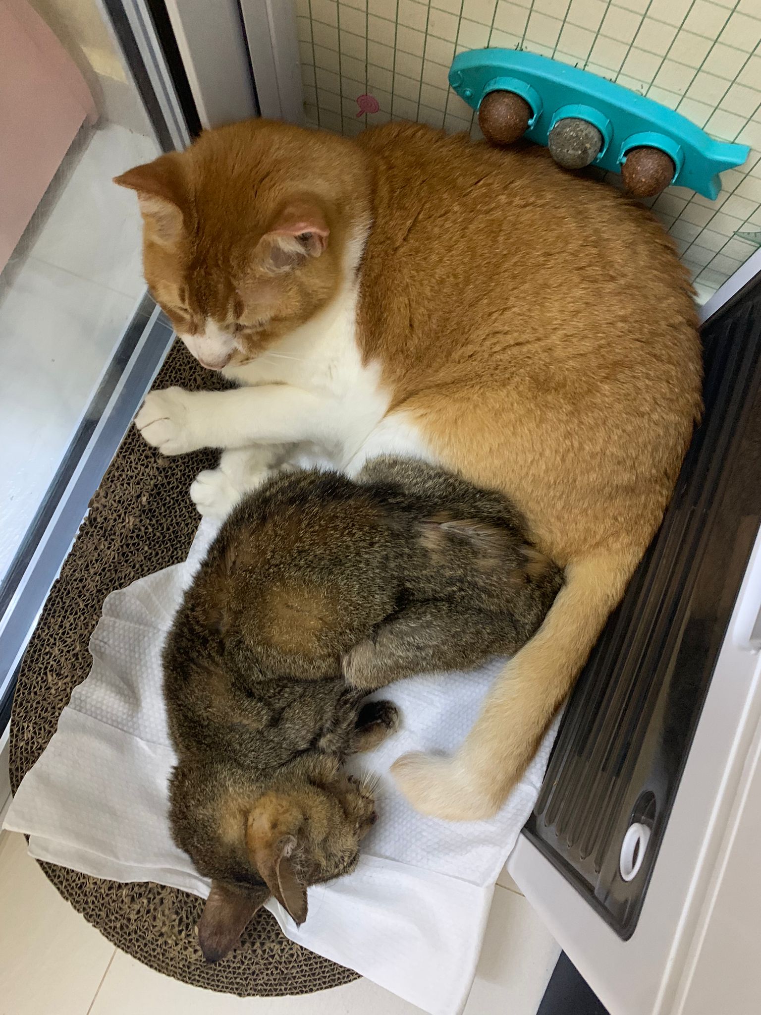 12pm: back in 猫房, too rush I forgot to bandage her again. Sigh. Given Subcut w kcl though n etc. Tao tao double the size of rena.
