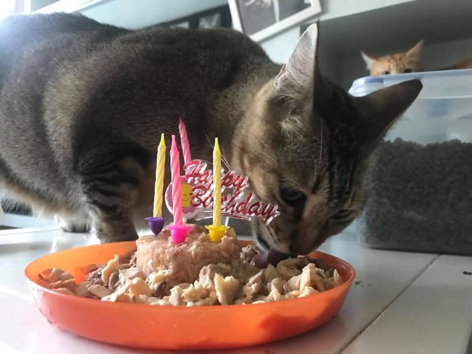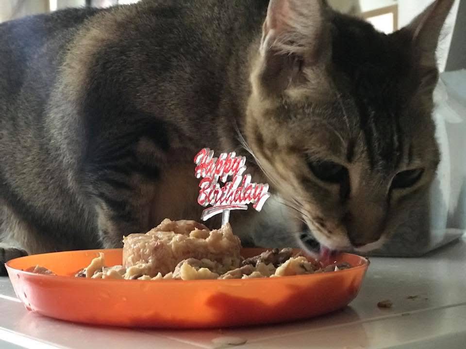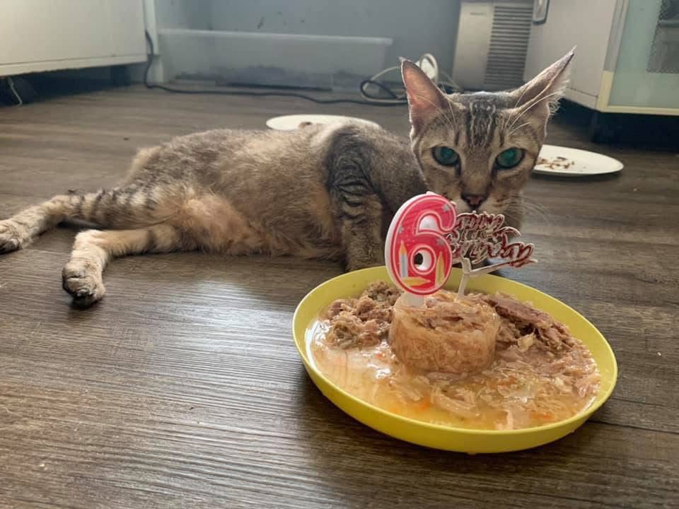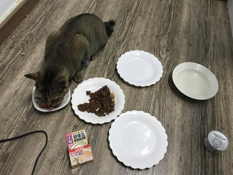I on The tv sound and when it’s time to give snack I call for her she didn’t respond. Duno is tv too loud or she isn’t responsive. I got to carry her to bandage up and she go to a food plate after it’s done – I’m happy to see that. Then I serve her schesir mousse n kakato tuna w mackeral. She lick some n seem to choke.