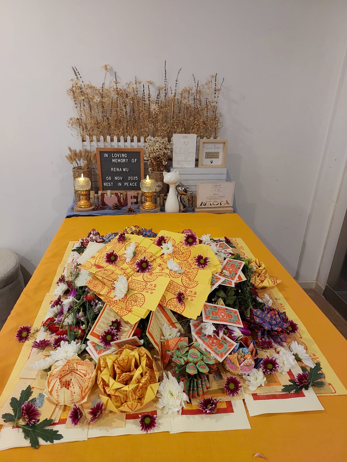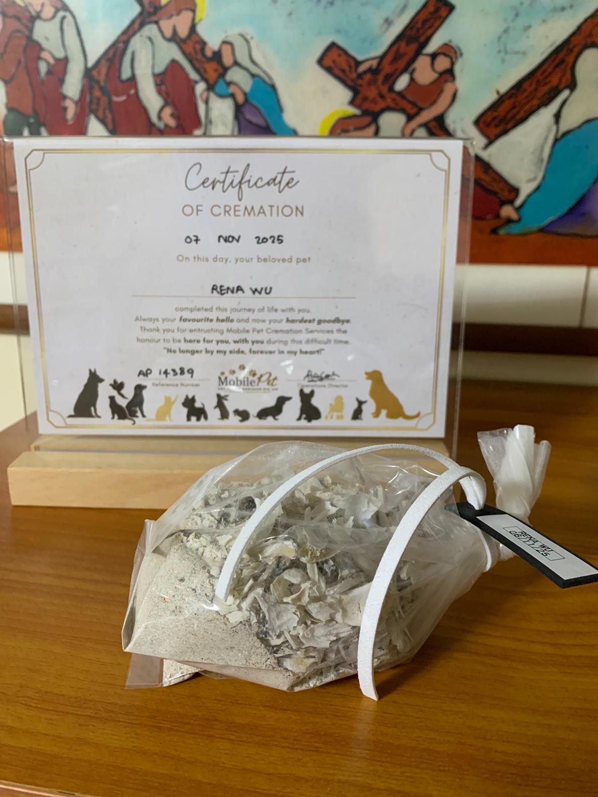 I delayed the cremation by half hour at 11.30am, n i rush back by 11.05am. Sayang rena, told her kc love and miss her but work really delay. Da jiejie sayang her too, but she can’t come when I can’t be back w ah Ma. rena understand de.