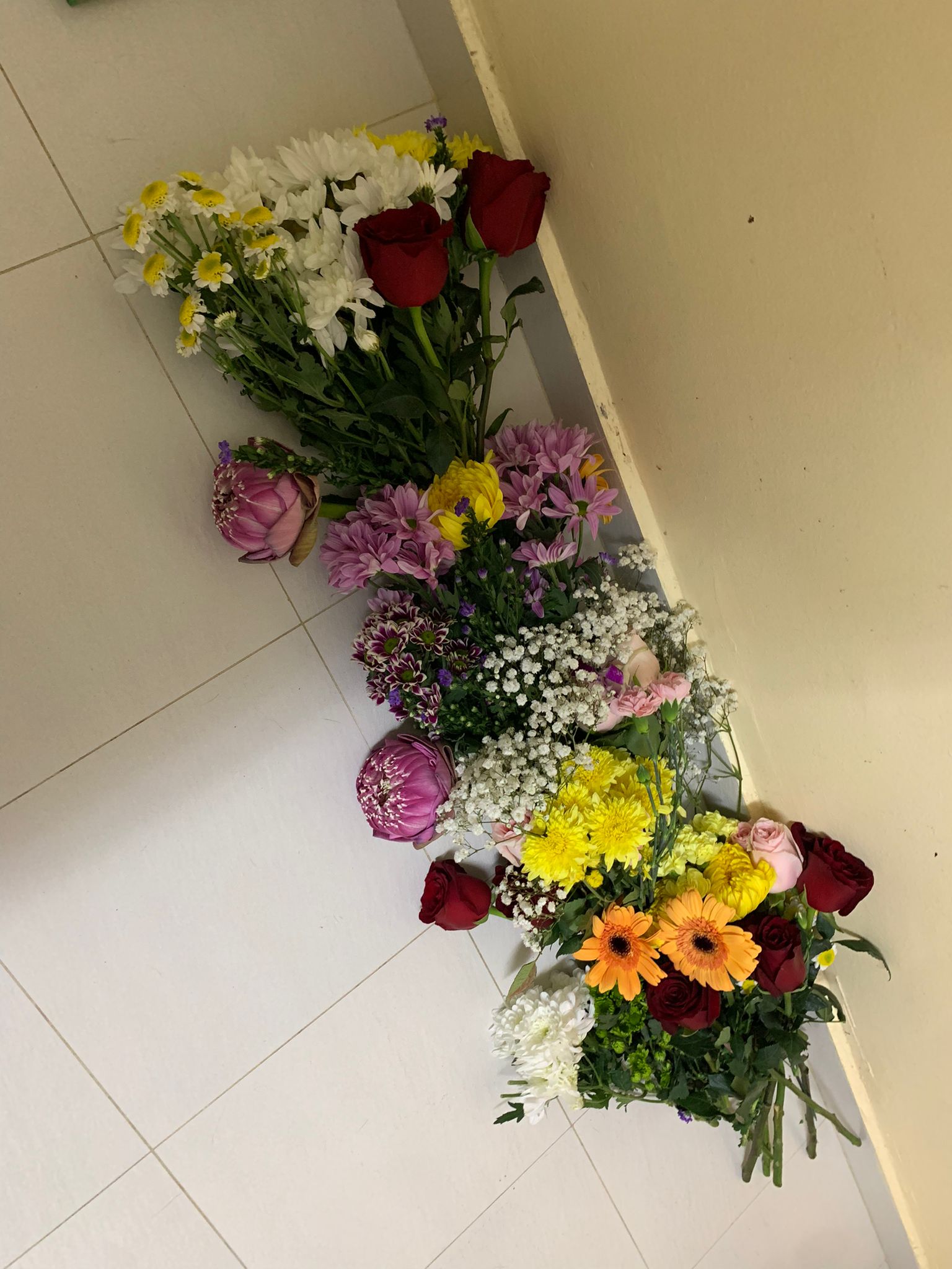 Waaaa mmm flowers a lot. Mountain. I repack and cut away more stem so it won’t be so heavy for the little girl. Tmr she need to carry money along also.