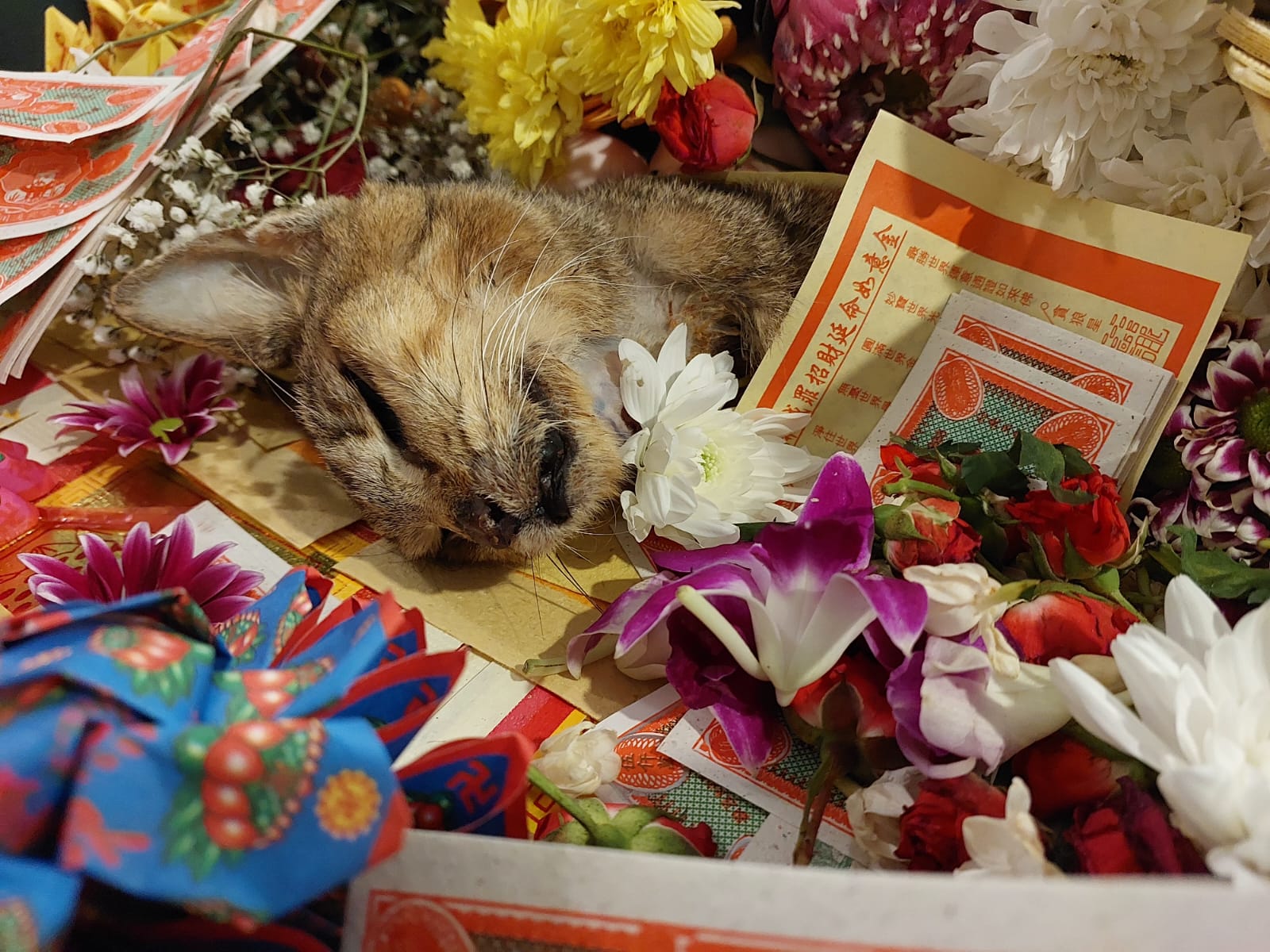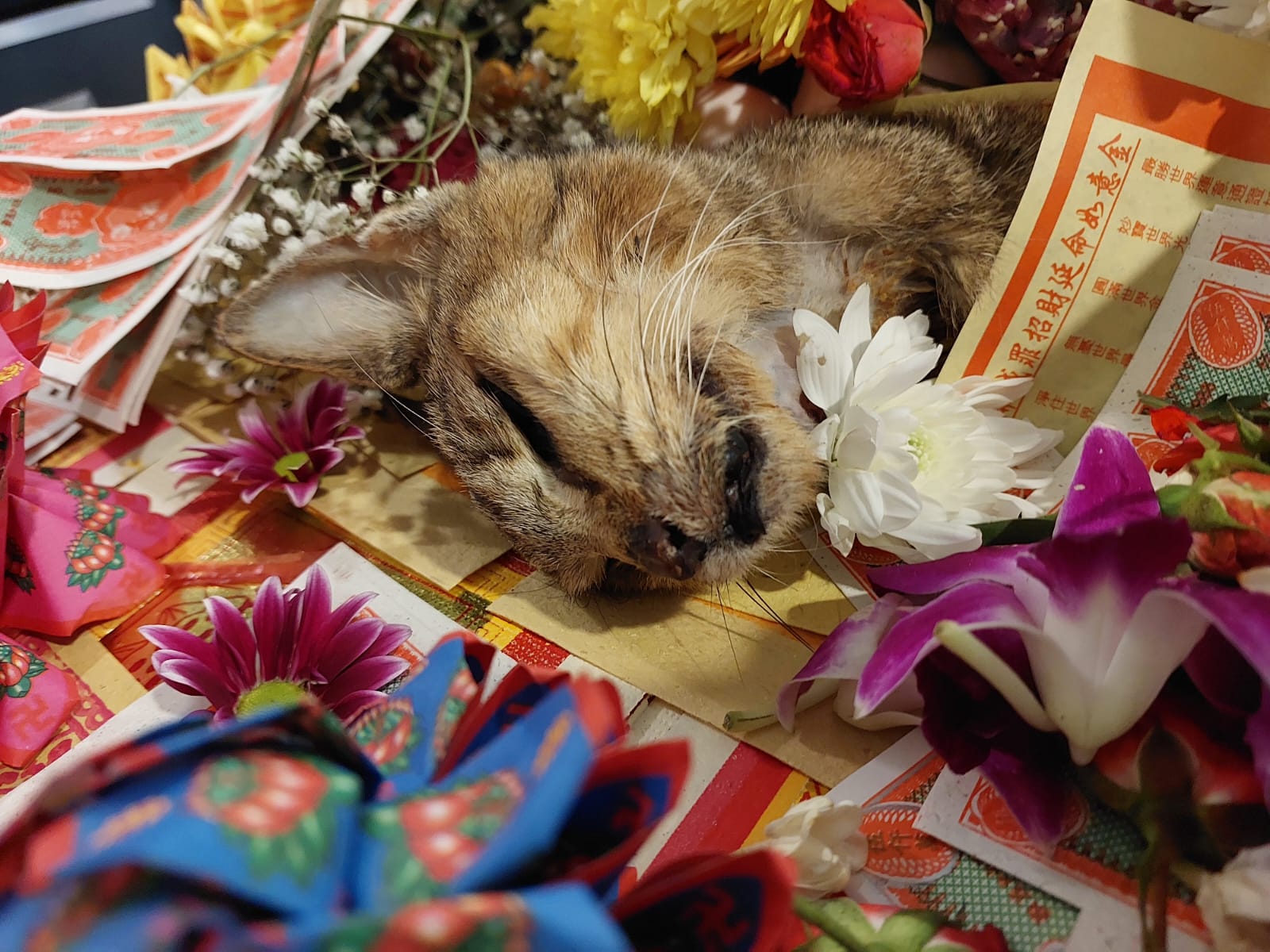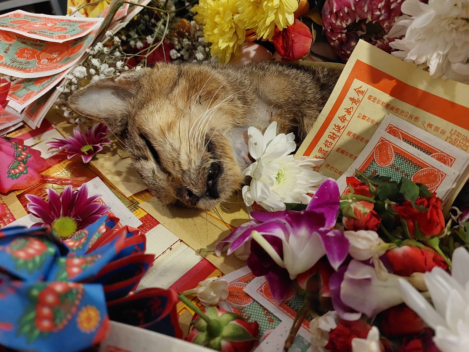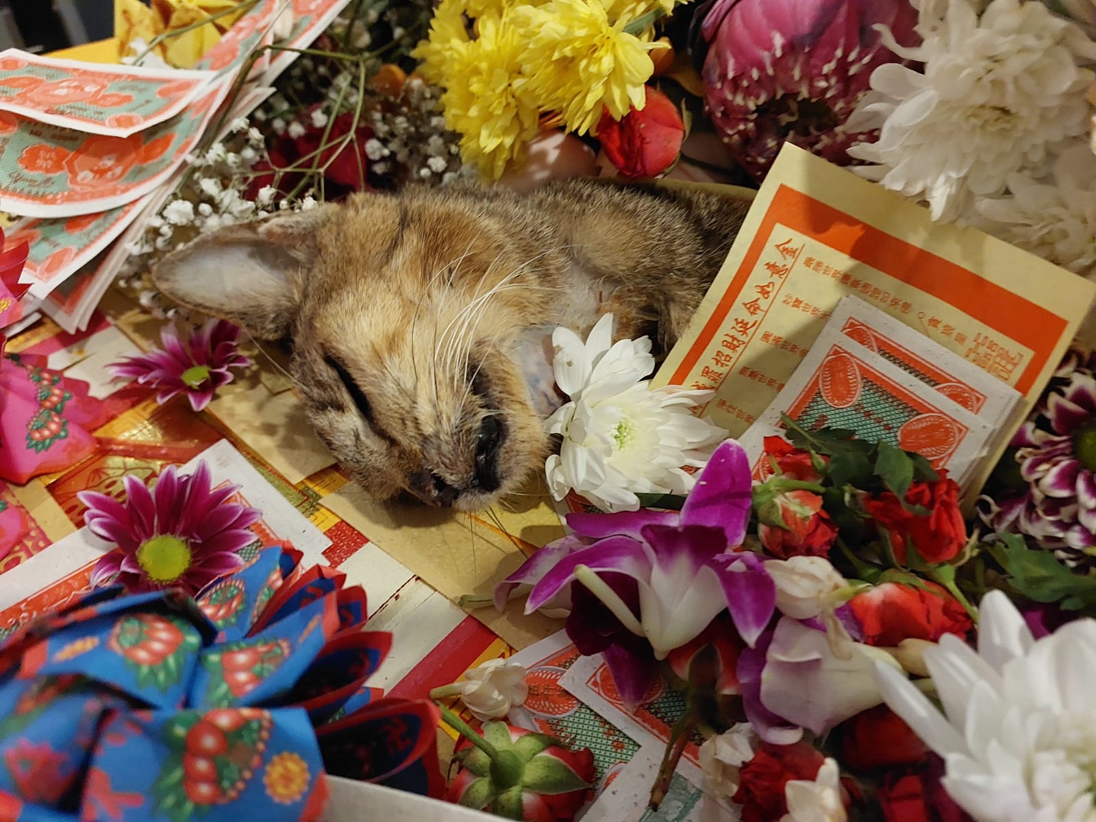 9.15pm: reach 猫房 and carry rena onto me cos she is on the oval sb w soaked towel is so uncomfy. I know she is going le. Body is shutting down. I set up a new bed w heating mat and towels (she seem to like it) and lay her down … I know she is going but yet somewhere in my brain I almost think that she still can be saved if I jab something else. Maybe a dex? Another ab? But she alr have that going movement for a couple of times, she just can’t go … same as maxine, 断不了气? sigh。 she waiting for me to go off then she go off? I waiting for her to go off then I go off. Sigh. Tmr morning I can’t come in somemore, I need to go hospital again. If she pass after midnight after I leave, how … this afternoon when I pack all the cats photos into their xmas party frame, i short of one frame, and the photo is Rena’s – I alr know something bad going to happen. Cos rena won’t be able to attend the party le.
