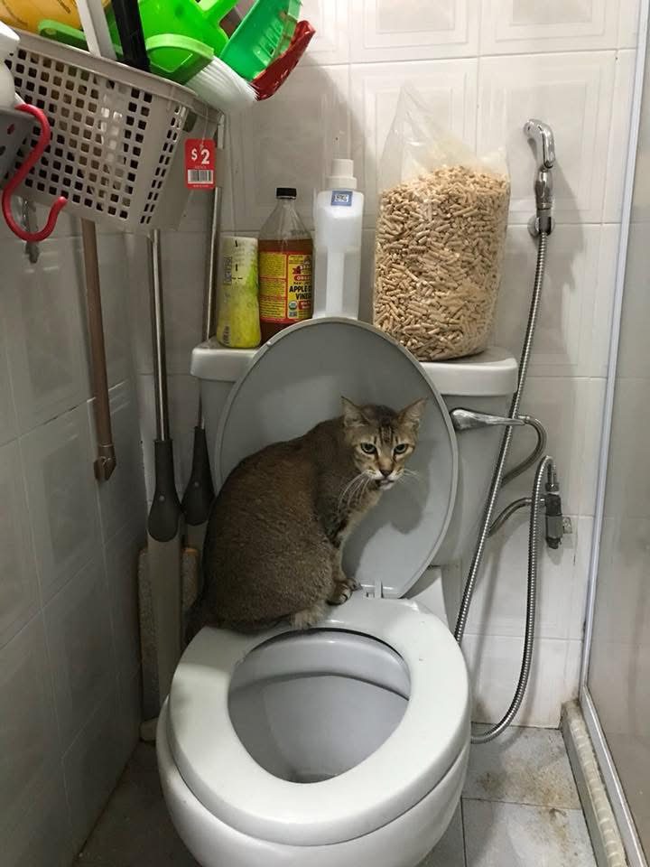 12.30pm+: she go on top of the sb, trying to poo, let her be, Duno she rushing or what. Nothing came out n that pc of round shit go back in, I even microlax her but she just too excited want the snack round. Concentration not on the pooing. Go to toilet drain then go unicharm, all gan jiong come out want eat. Not concentrating on shitting sigh