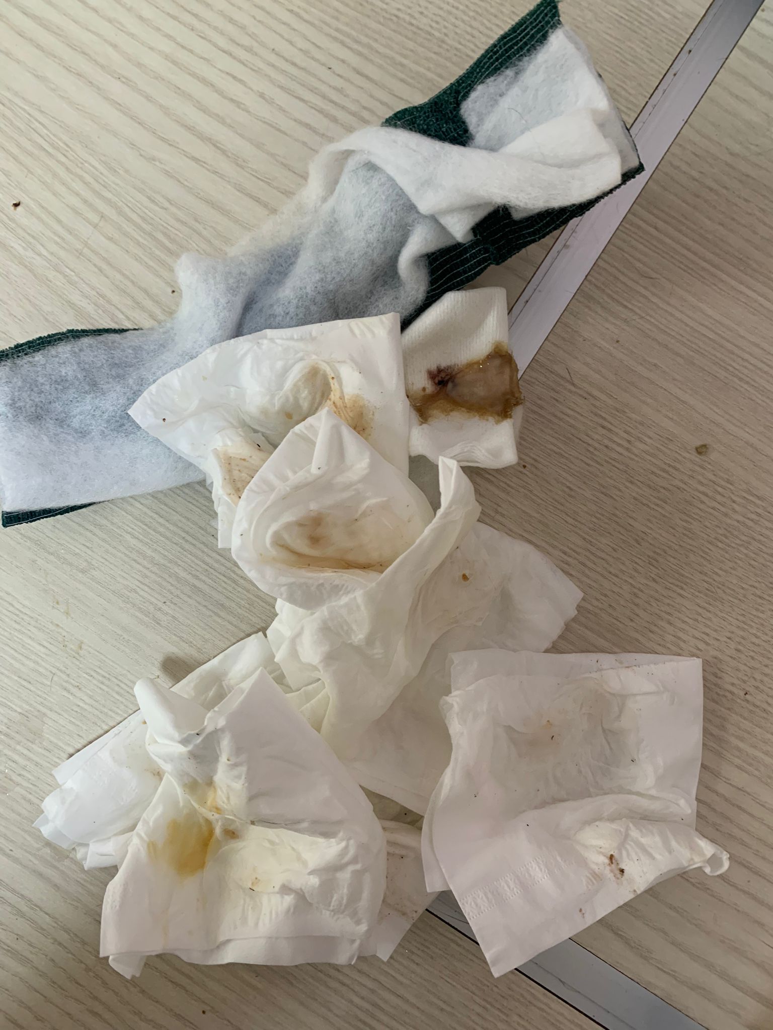 9Am+: I walk in and rena want to dash out. Help her neck, got pus n more pus so i thought I can help her squeeze more out. A blood vessel burst?! – fresh blood drip for sometime, put pressure for her n put YNBY and pressure simple bandage for her. She still active in wanting more food – but didn’t see her eat much.