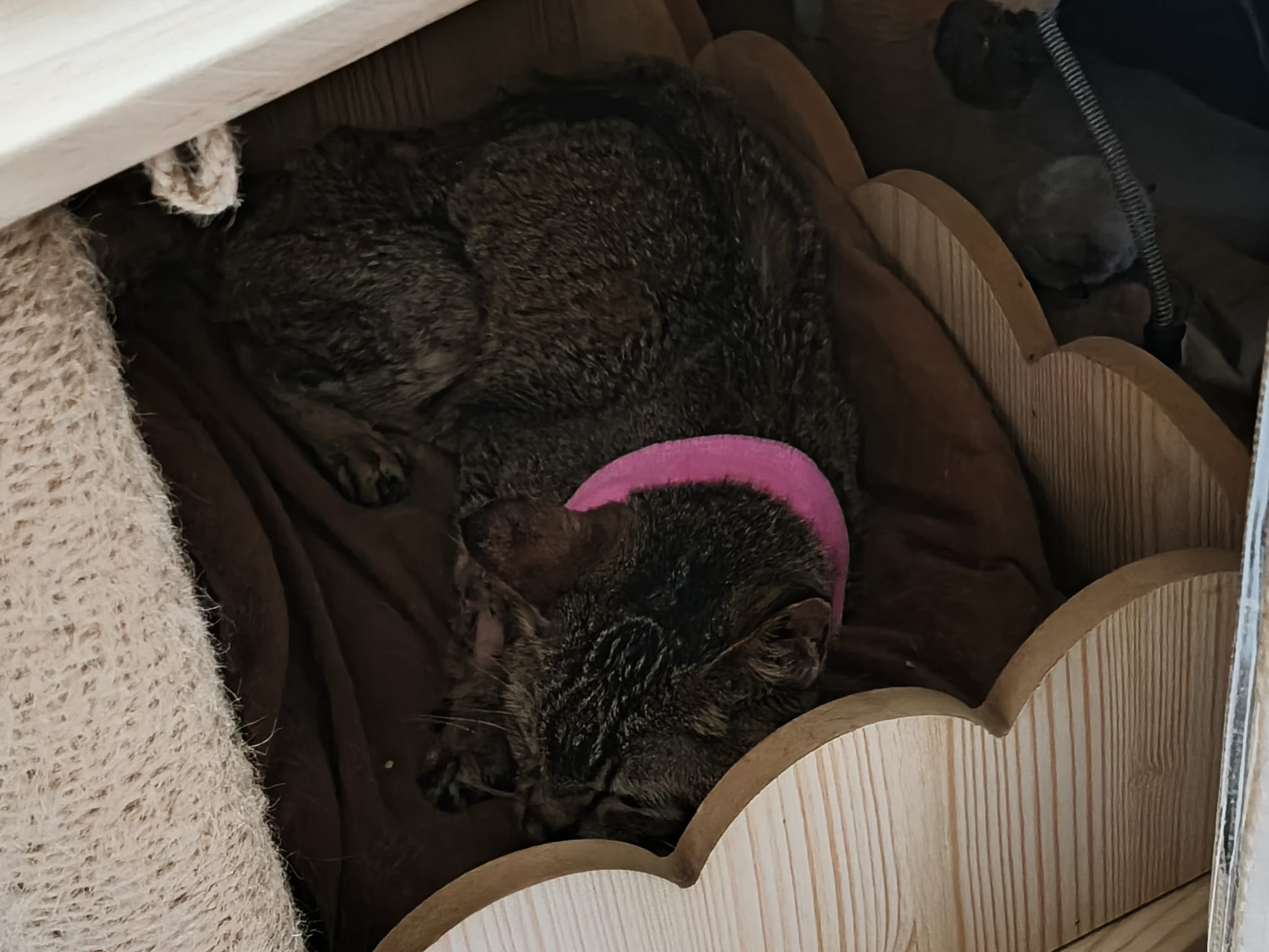 9am+: go in need to do fast but not rush till the contractor start calling wa Liao 2h earlier, told rena I need to rush off. Her eye, I know. The left eye either is a sign she can’t take it anymore soon. Or she is in pain. She is 1.84kg today, lose 90g in 3 days. Bought the schesir Carnivore kibble for her, mmm says she got eat. Given 0.06ml bupre on top the rest of medi . I serve her 1/3 ff b4 I run off, she got eat. Still active in food. Drink from water tap