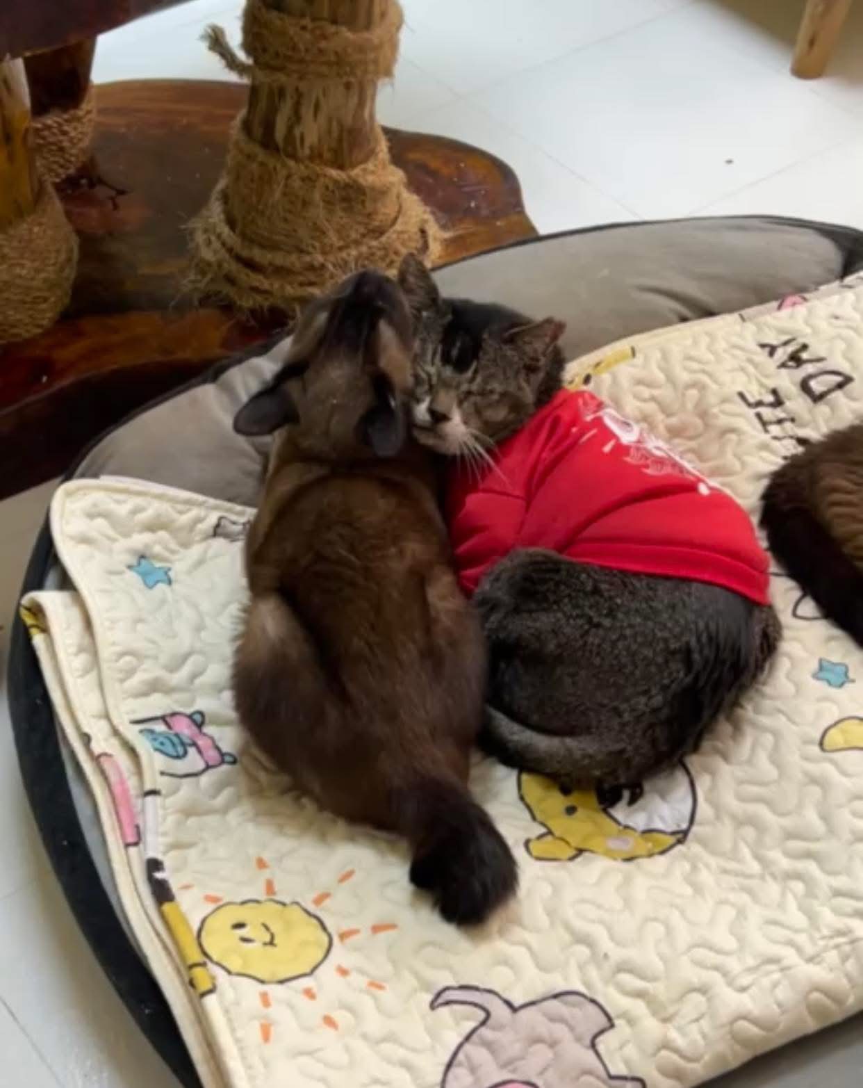 11am+: I go back 猫房 try to tell everyone n sayang everyone that ah mao love them and pamper them but I can’t come so frequent le, even come have to do medi n leave, they know I’m worry and love them can le. Sayang renny a lot, his back and his front, he wanna react but holding in and I choose to trust him and sayang him n tell him ah mao will miss them, they take good care of themselves n each other. told him tell Amber relax too.