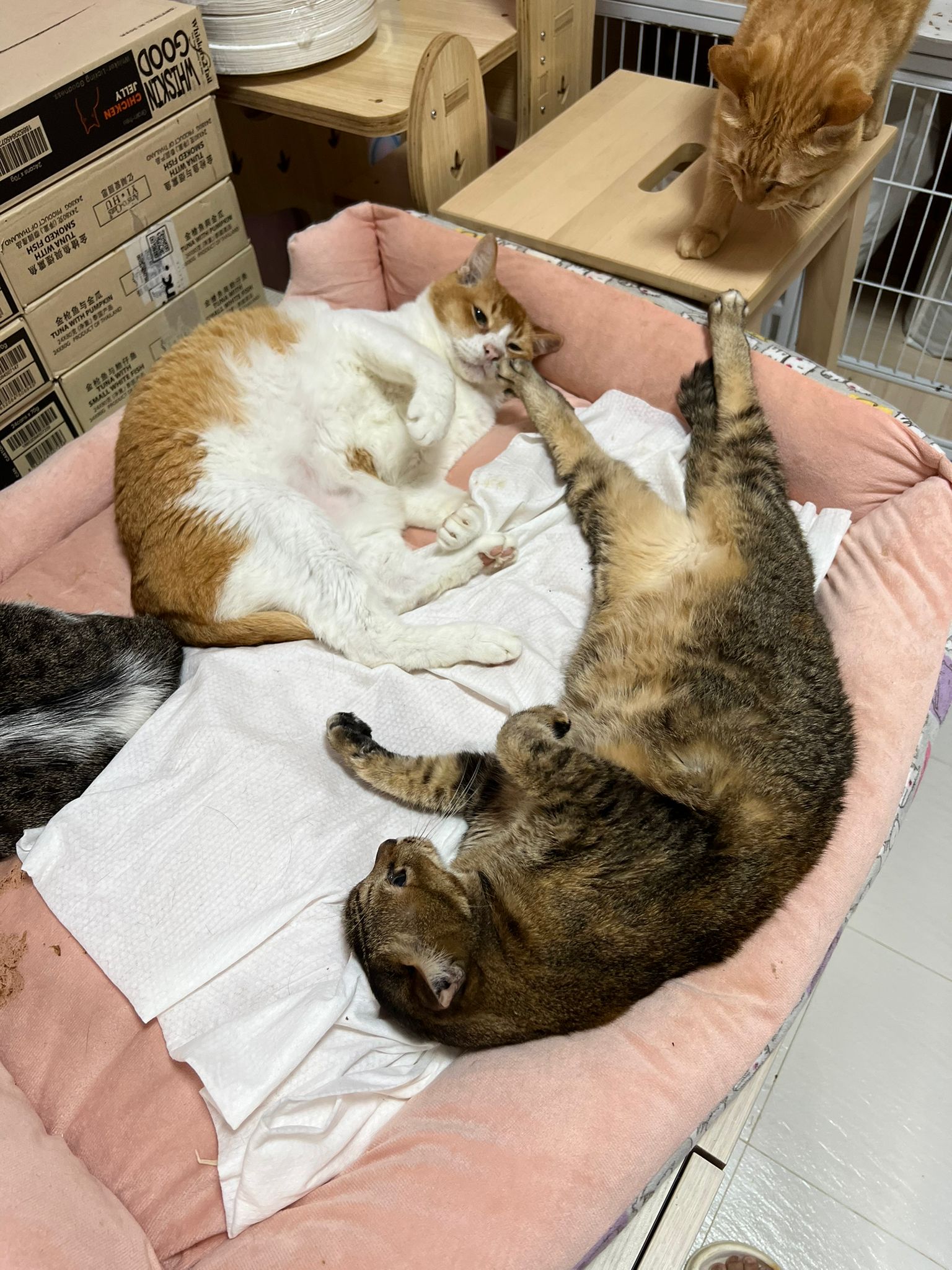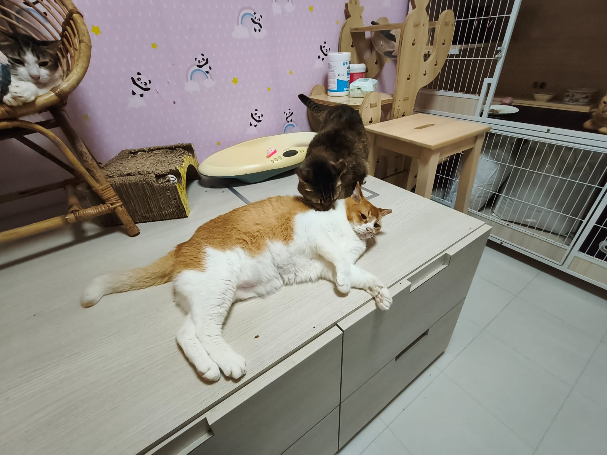 Morning: I did some packing and do medi n sena looks a little jealous. I sit down n kiss her n we hug hug told her she knows she is the cutestiest 猫房 cat. Last time mao mao king so big hearted also welcome them to 猫房 … this is how 猫房 have lots of good and positive vibes. All love love