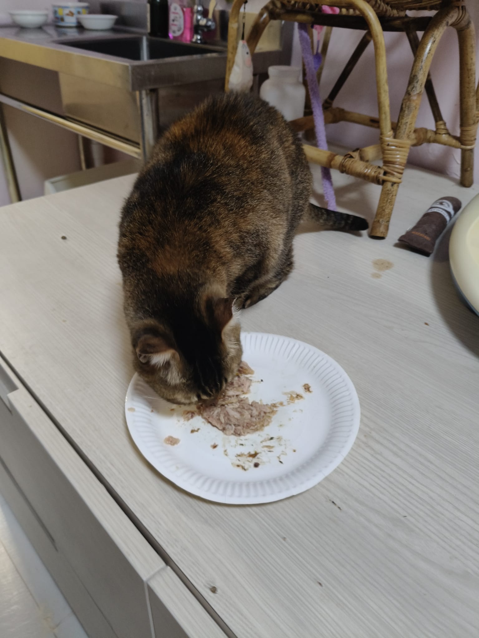 1120pm; active but I seldom see her eat. Supper is tuna w salmon – don’t eat