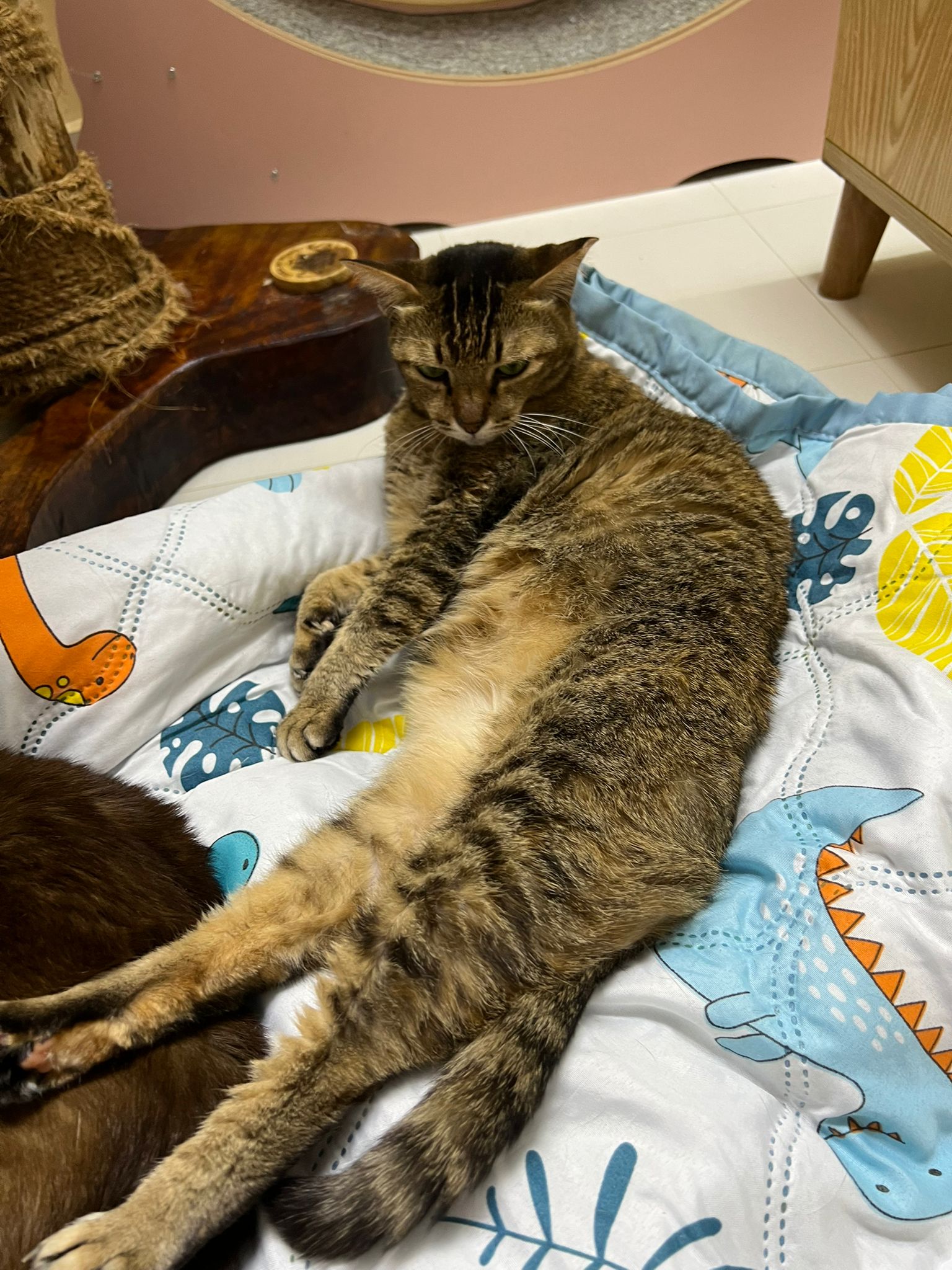 Morning: still my super belly rub queen. Kitty wanna the small tent n sena don’t want to give him. Told him wait, later vacant then go in.
