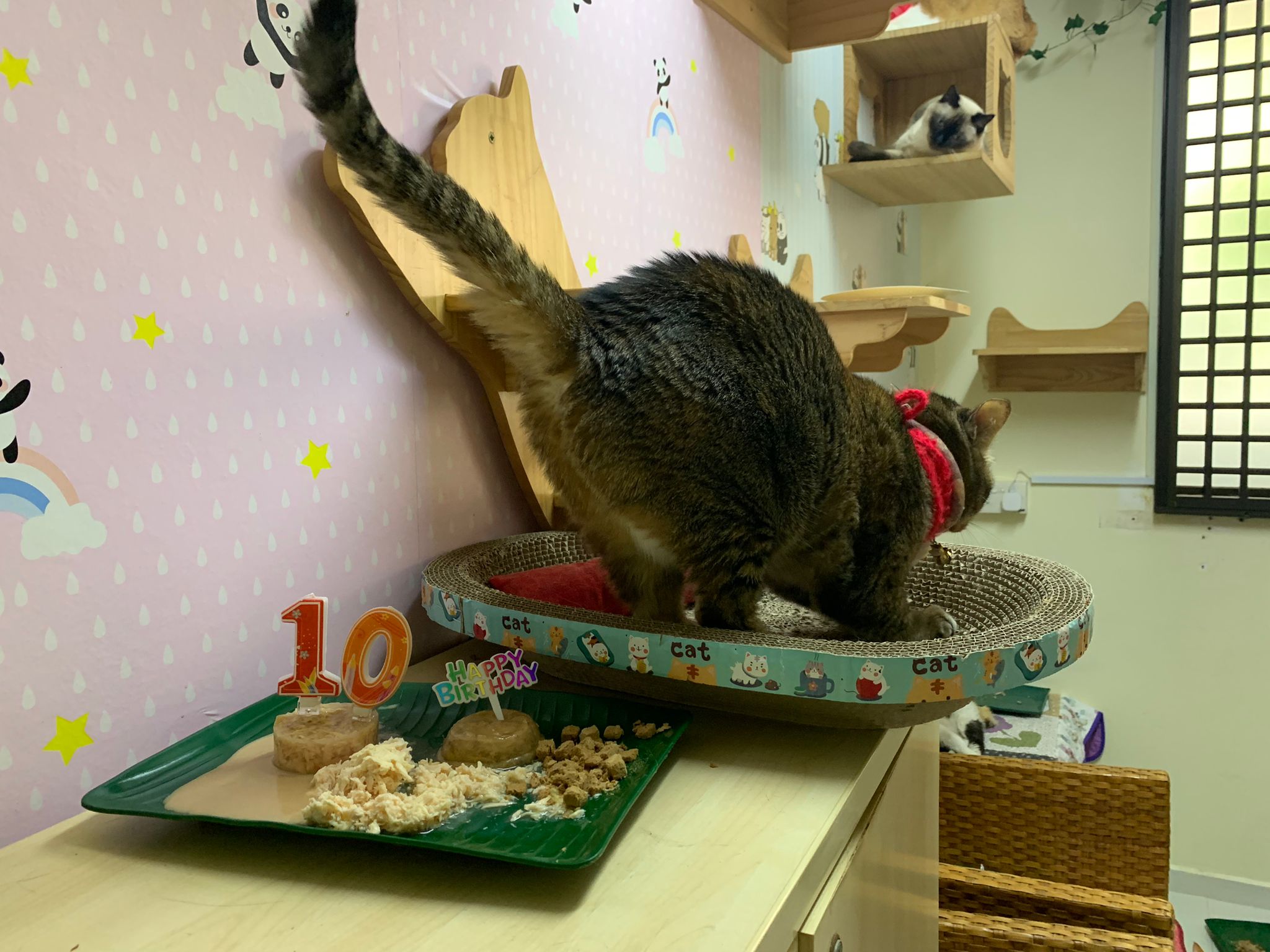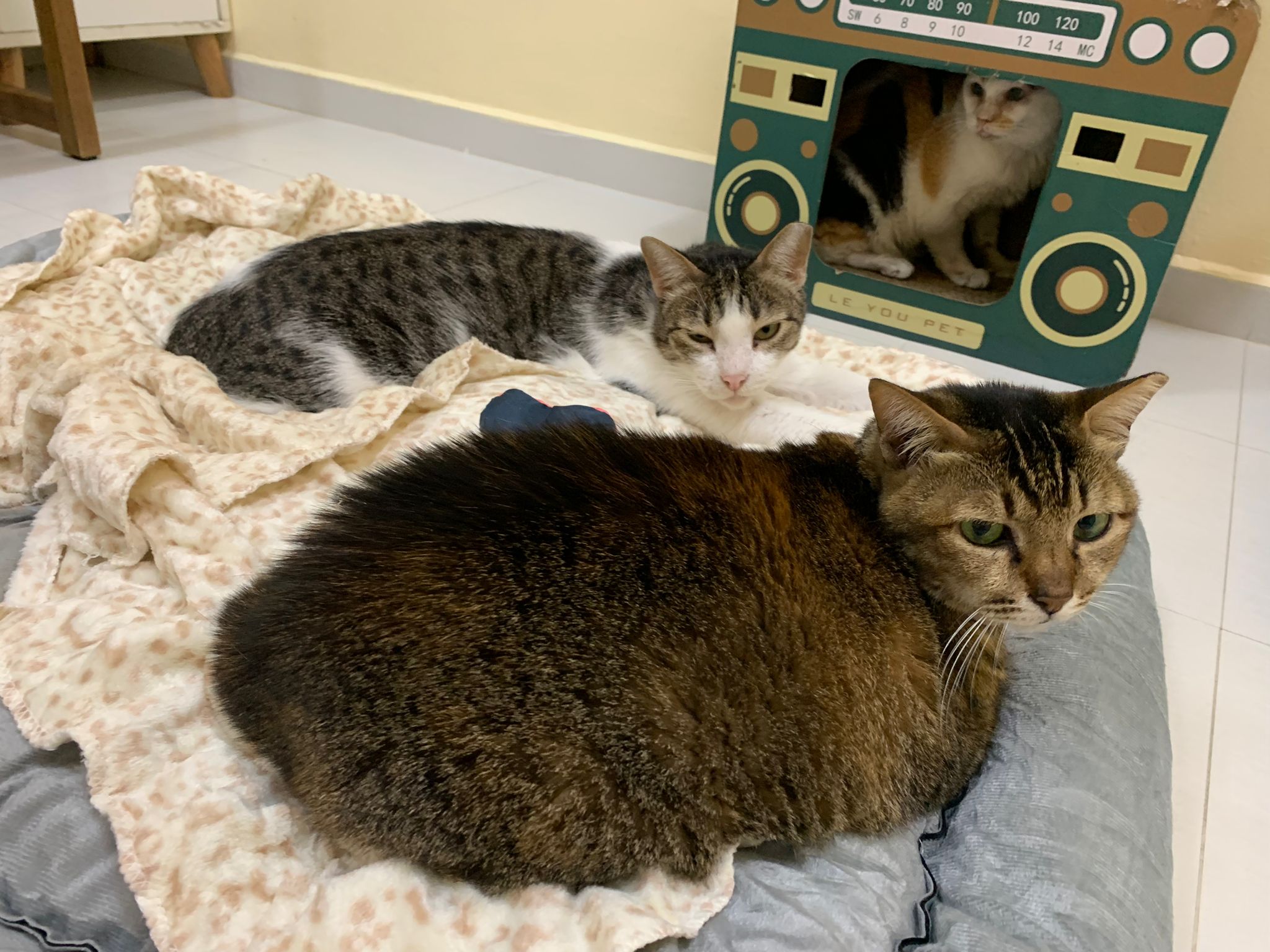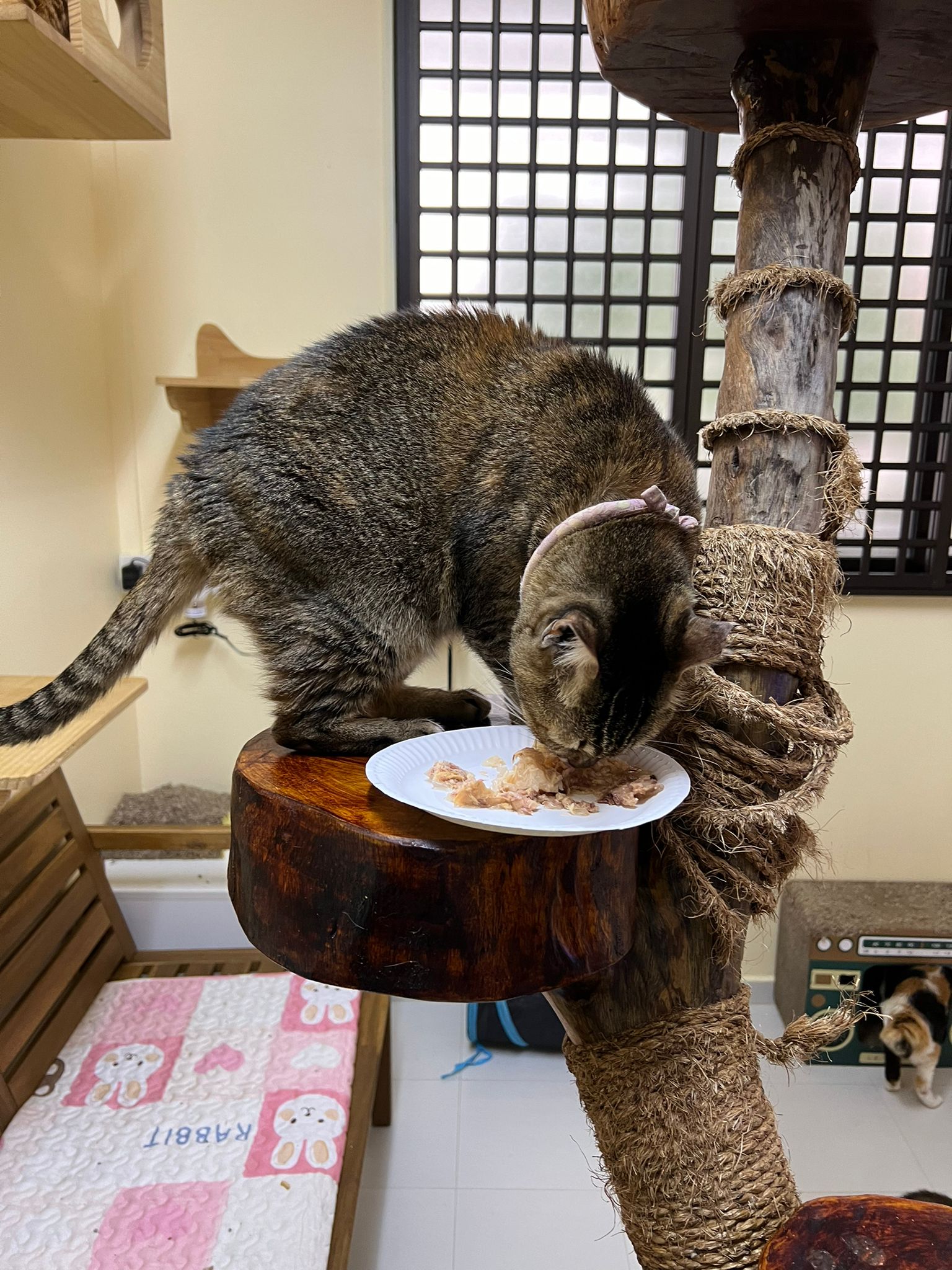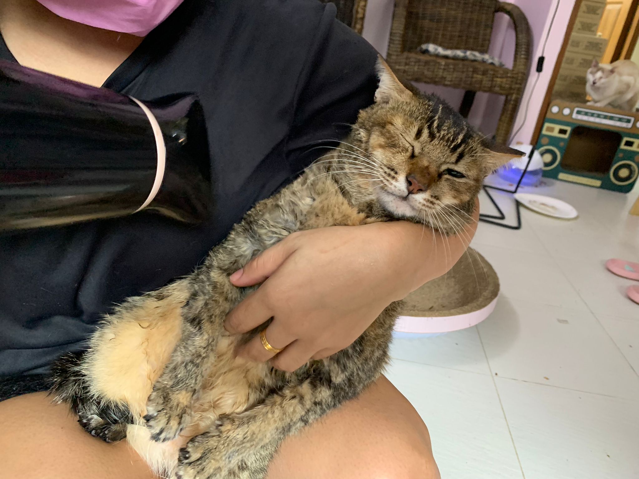 Agree to take her in after she is bailed out from AVA cos she is scheduled to be Pts. She had been in 猫房 for so long loh, cos all these years can’t find someone who is keen on both her and Buddy. They must be together. She is currently 猫房‘s only staff nurse 🙂