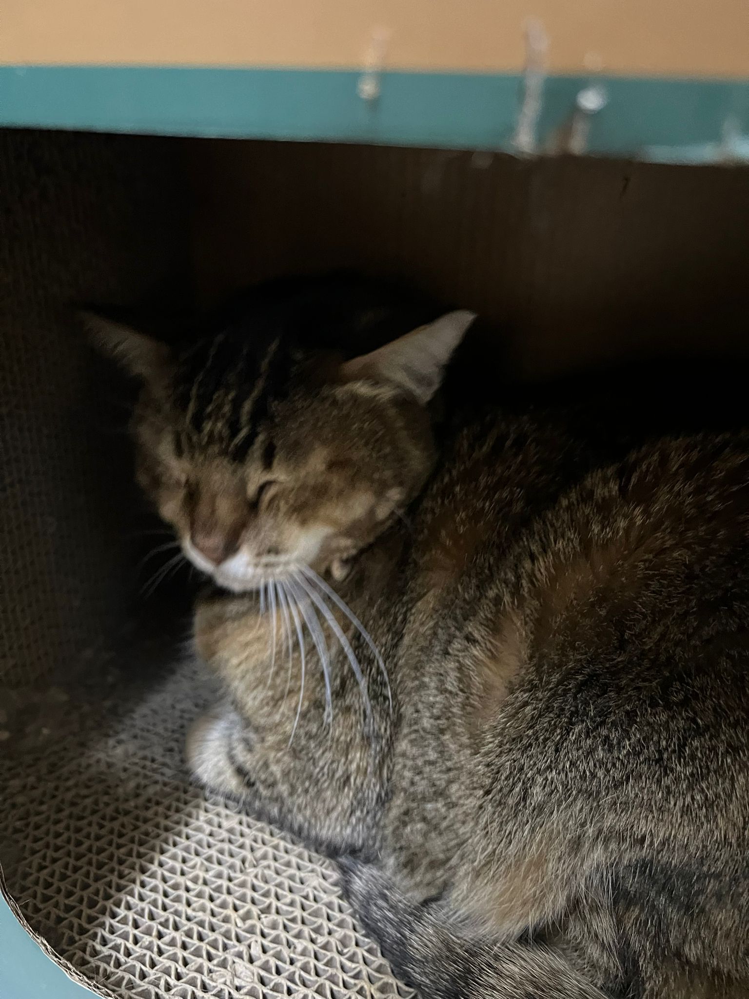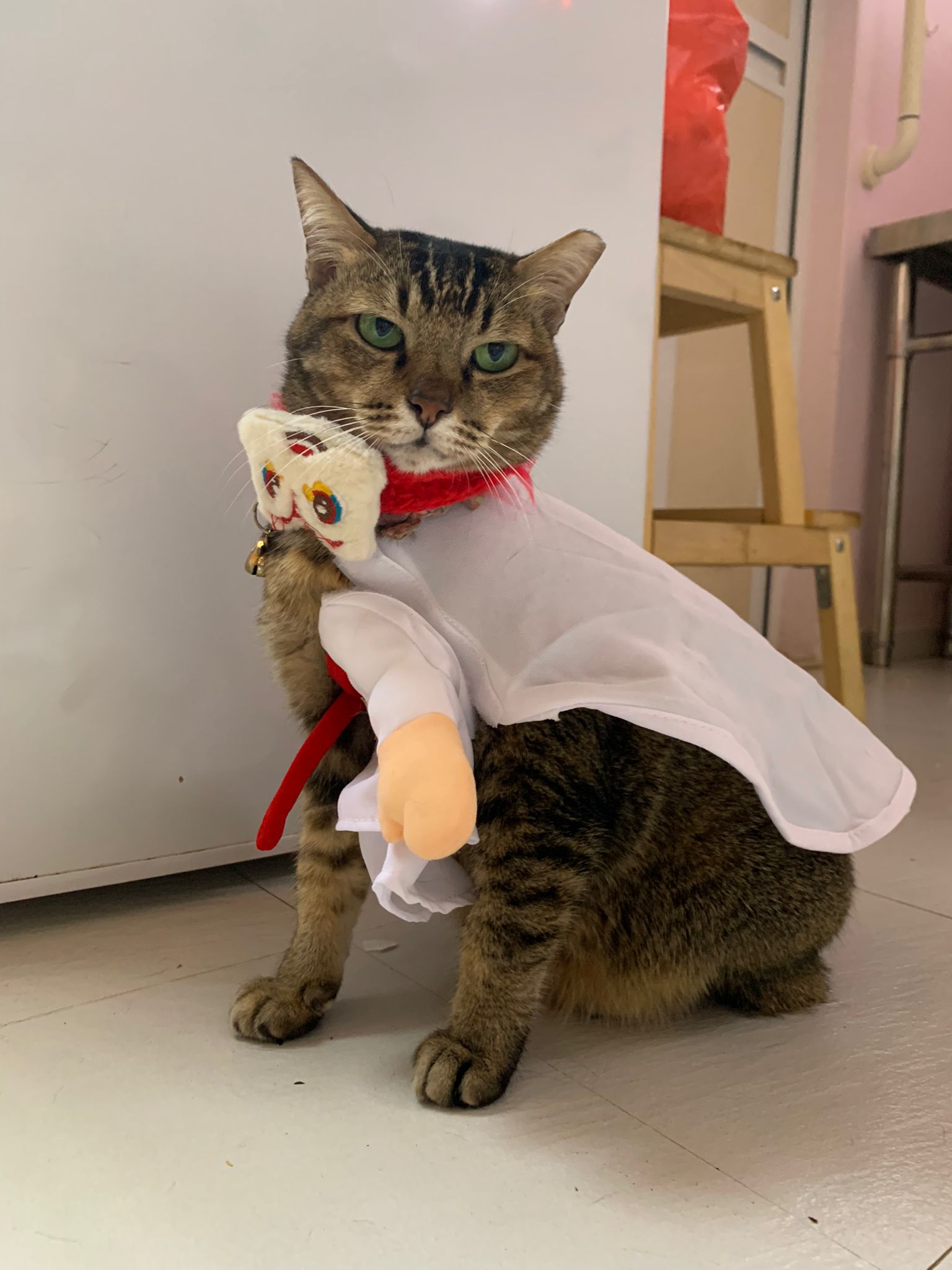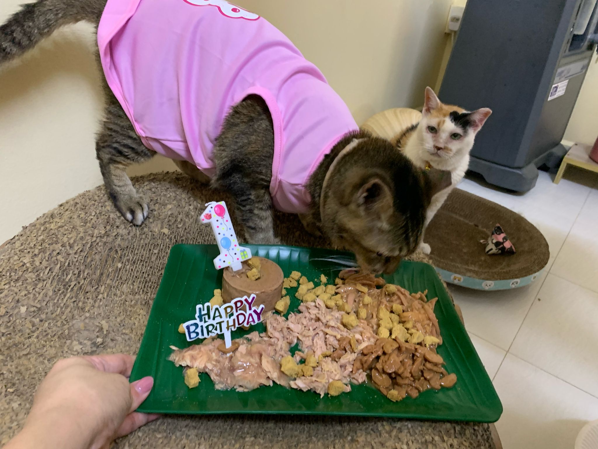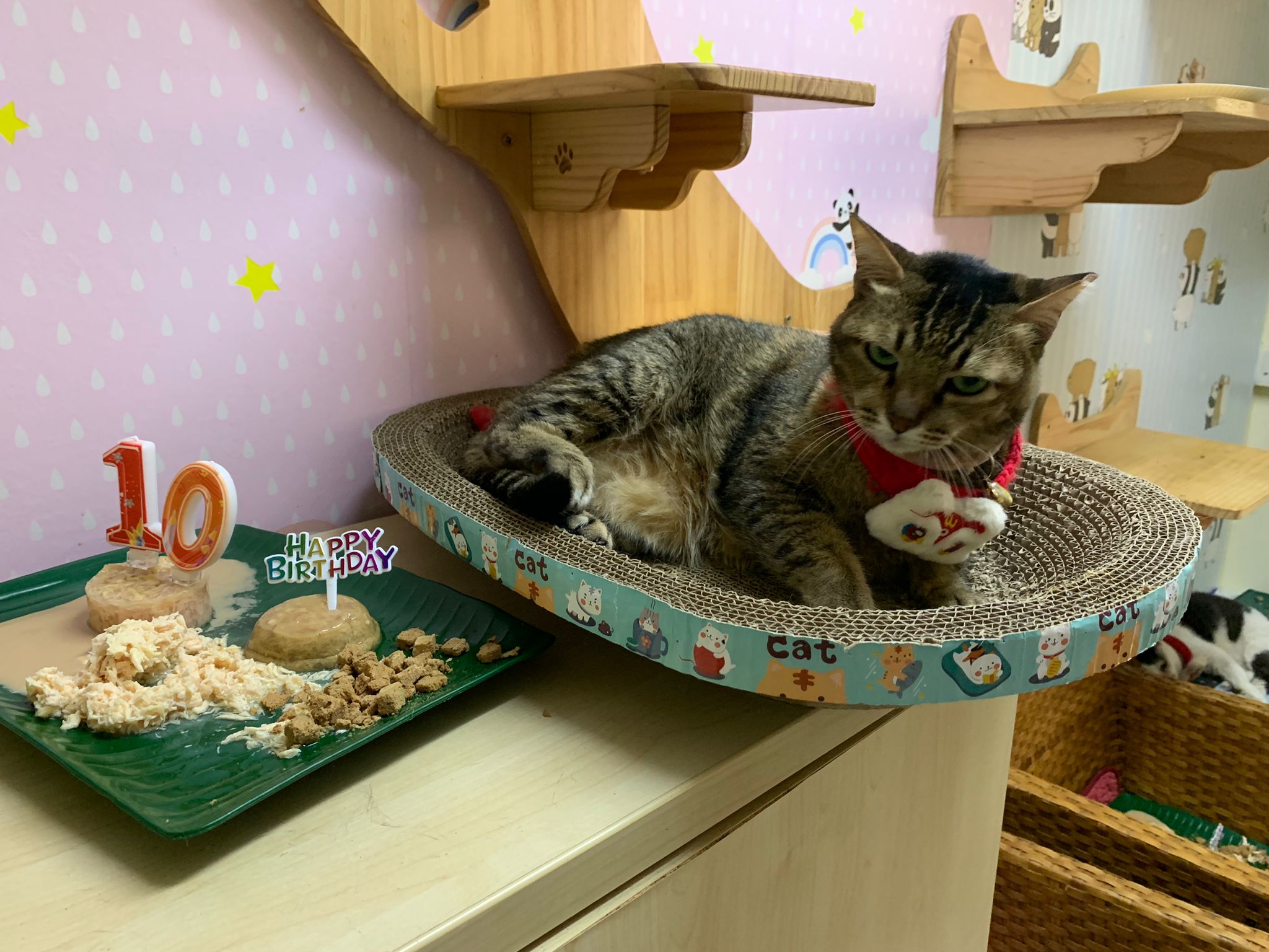 Agree to take her in after she is bailed out from AVA cos she is scheduled to be Pts. She had been in 猫房 for so long loh, cos all these years can’t find someone who is keen on both her and Buddy. They must be together. She is currently 猫房‘s only staff nurse 🙂