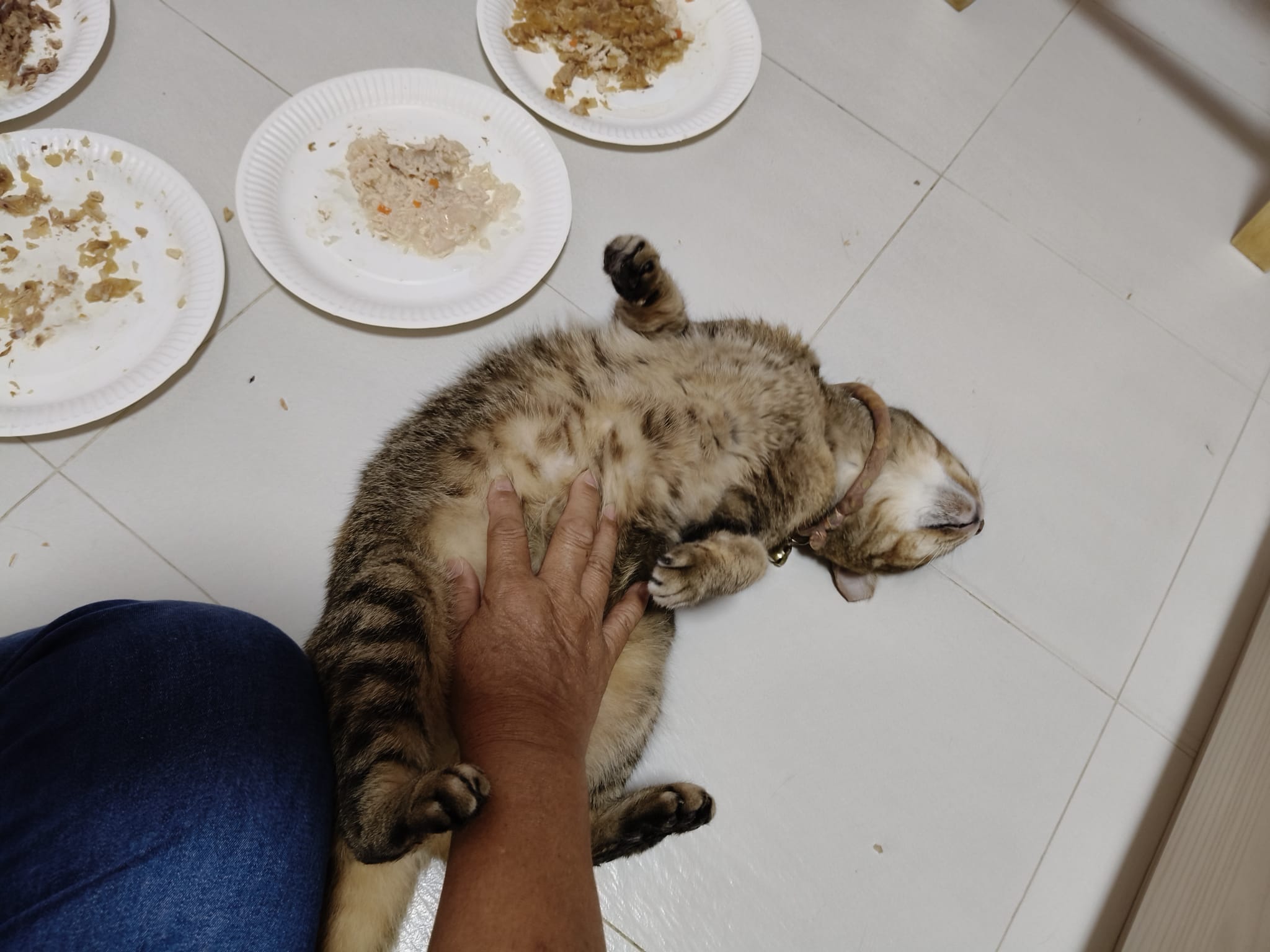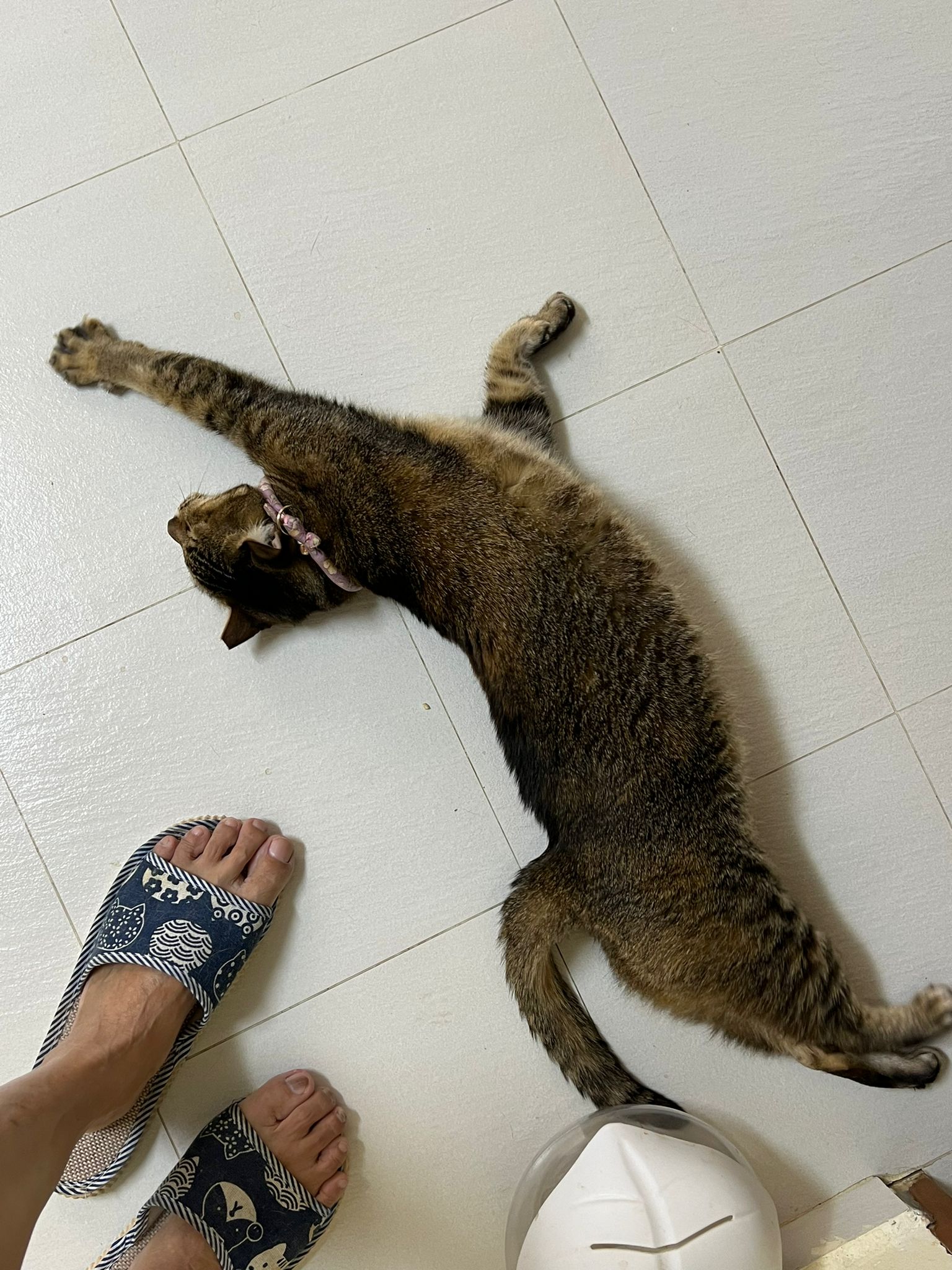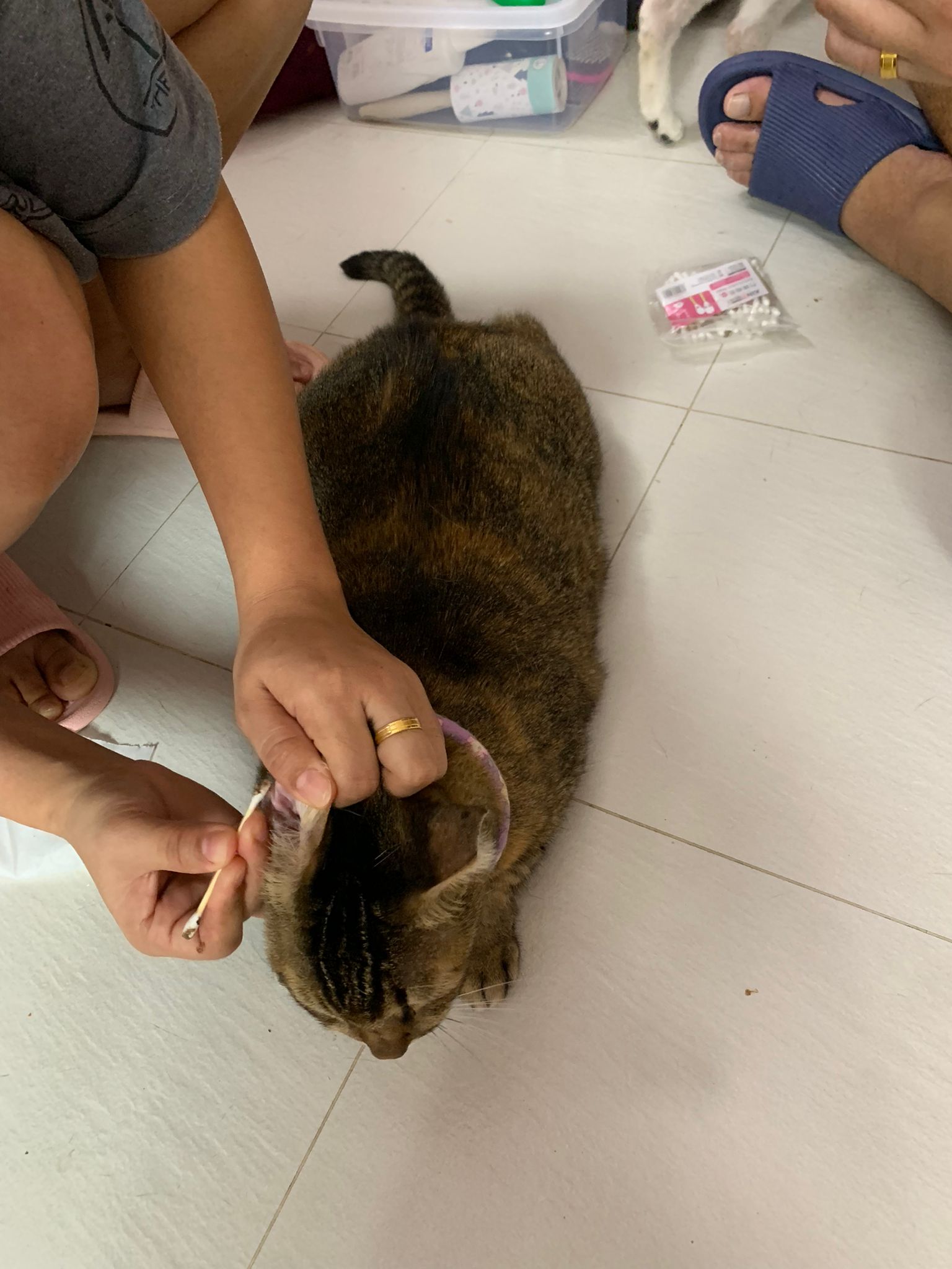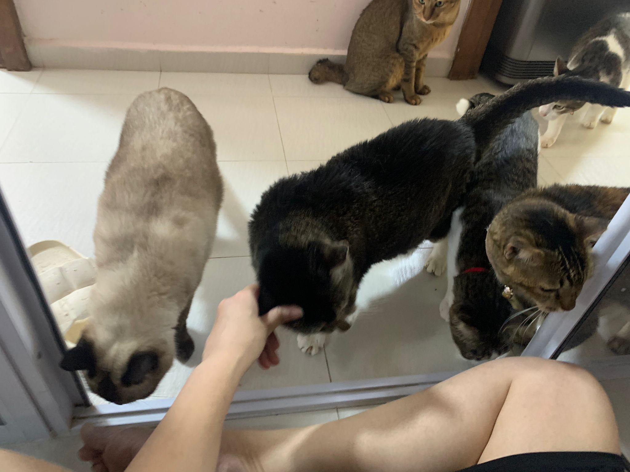 Morning: I greeted everyone and lucky I did so. That’s my basic way to check for any thing Re them within the limited time I’m there. Sena definite asking me for help, her collar stuck to her leg, Erm blood flow won’t be good and uncomfy. V tight can’t adjust her body part to get it out, so cut off and massage her. She know it’s done and she is happy, I sayang n kiss her. I’m the ah mao she can trust. I trace photo sigh may even took photo of her n buddy w that collar stuck to her n she didn’t do anything about it/ doubt she even notice it.