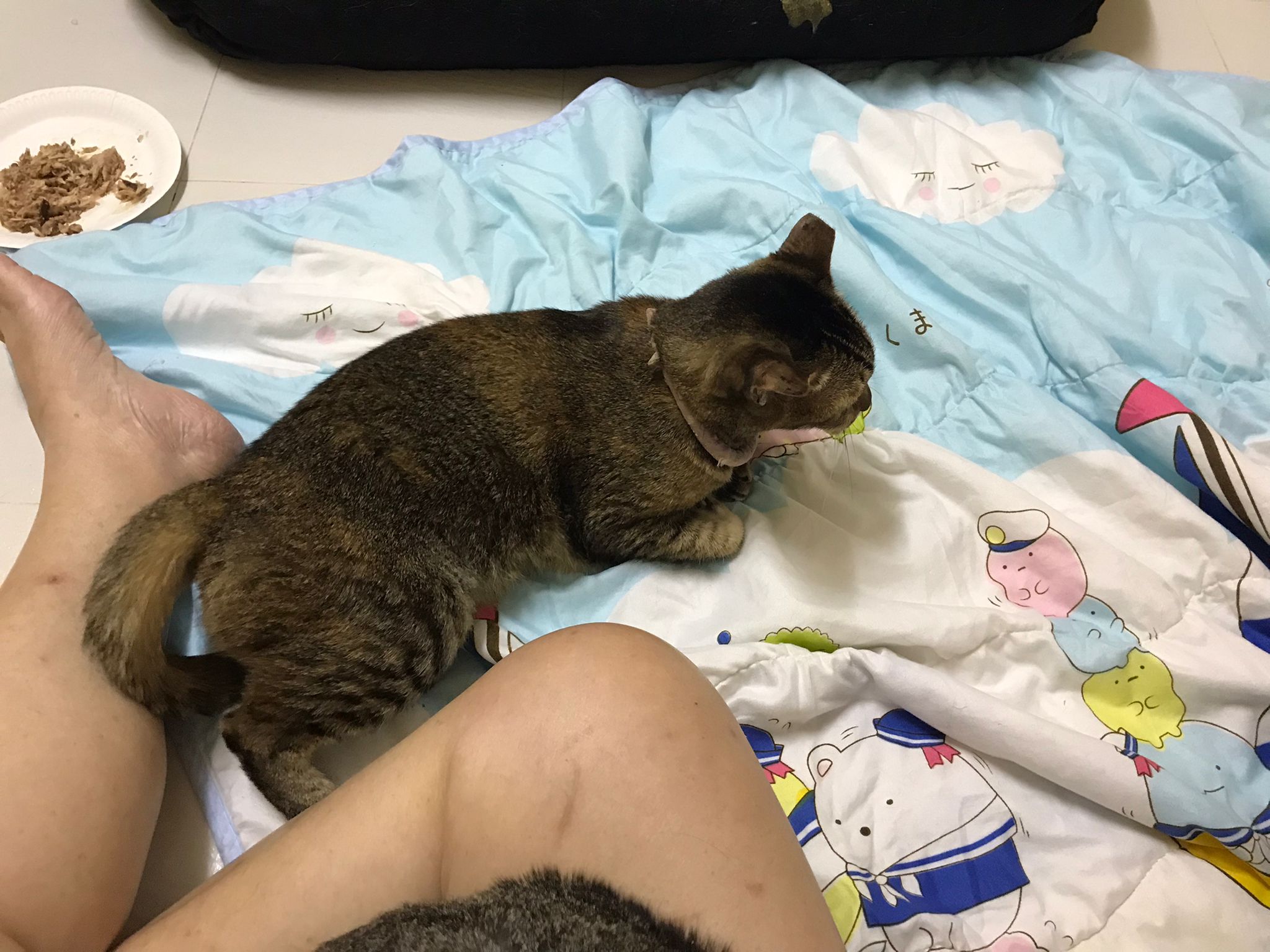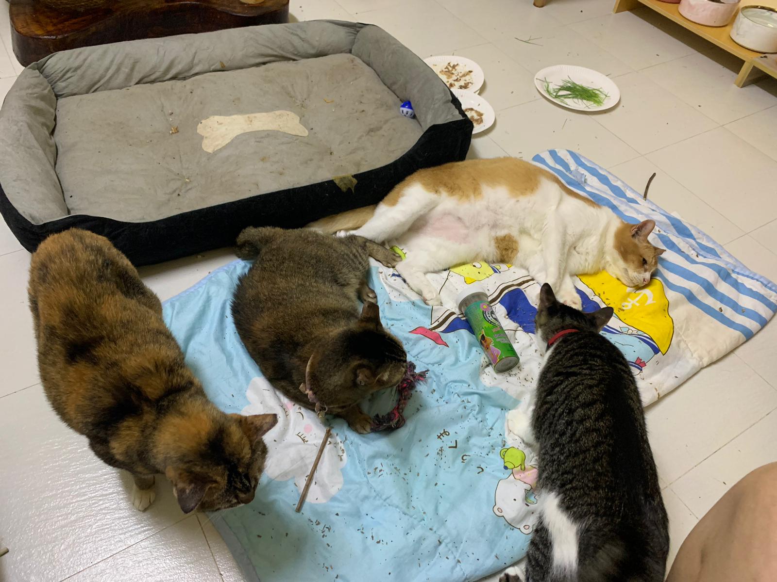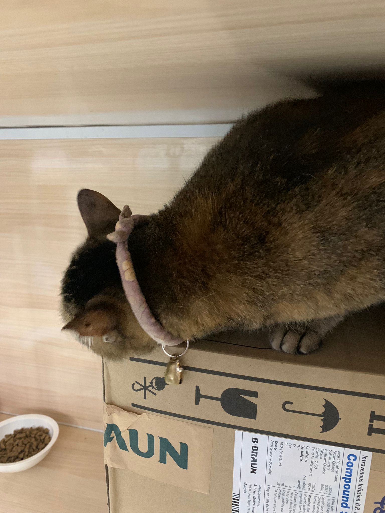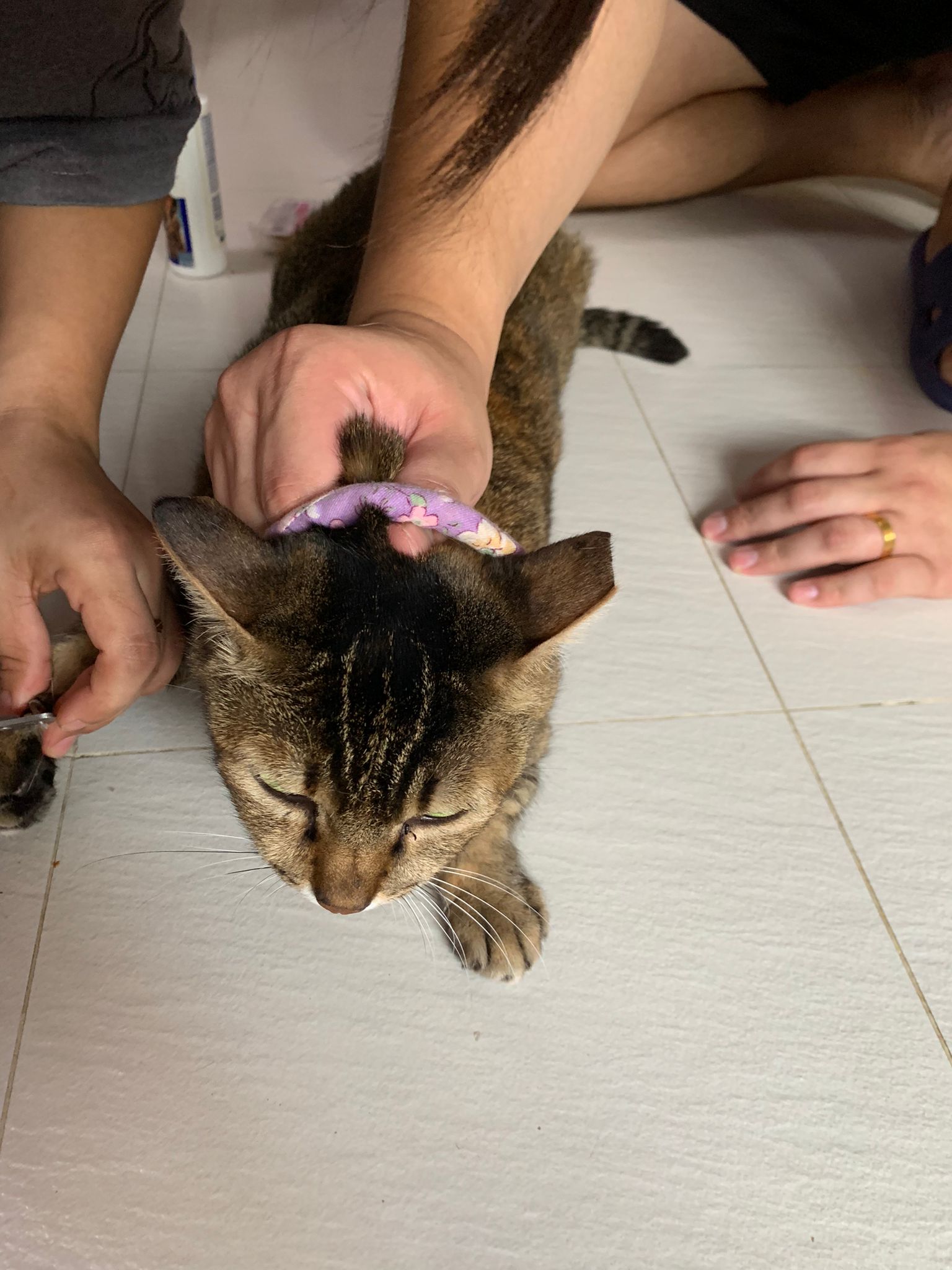Morning: I greeted everyone and lucky I did so. That’s my basic way to check for any thing Re them within the limited time I’m there. Sena definite asking me for help, her collar stuck to her leg, Erm blood flow won’t be good and uncomfy. V tight can’t adjust her body part to get it out, so cut off and massage her. She know it’s done and she is happy, I sayang n kiss her. I’m the ah mao she can trust. I trace photo sigh may even took photo of her n buddy w that collar stuck to her n she didn’t do anything about it/ doubt she even notice it.