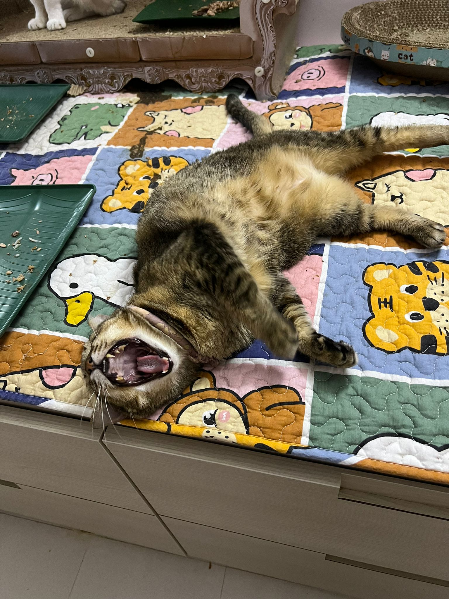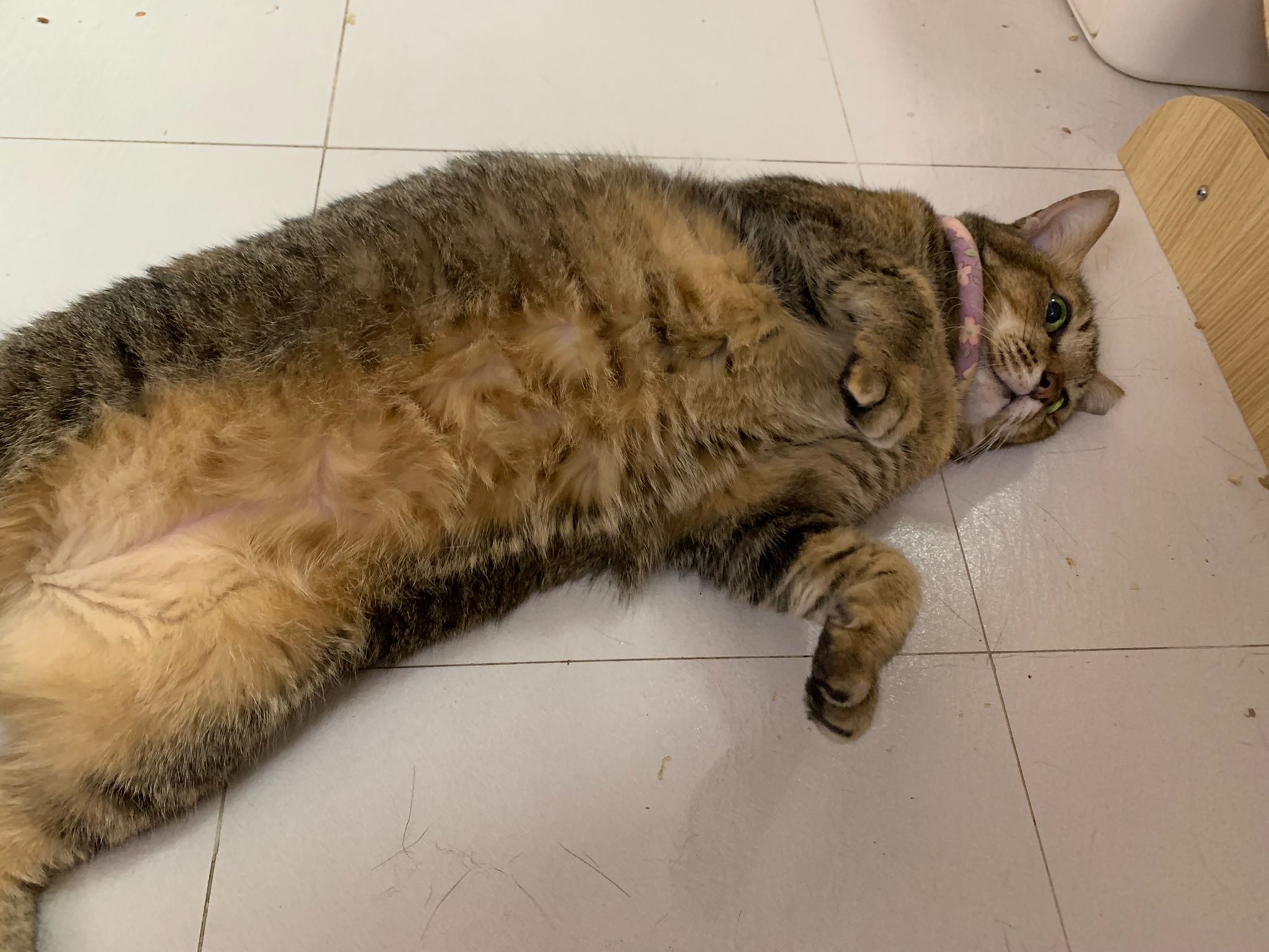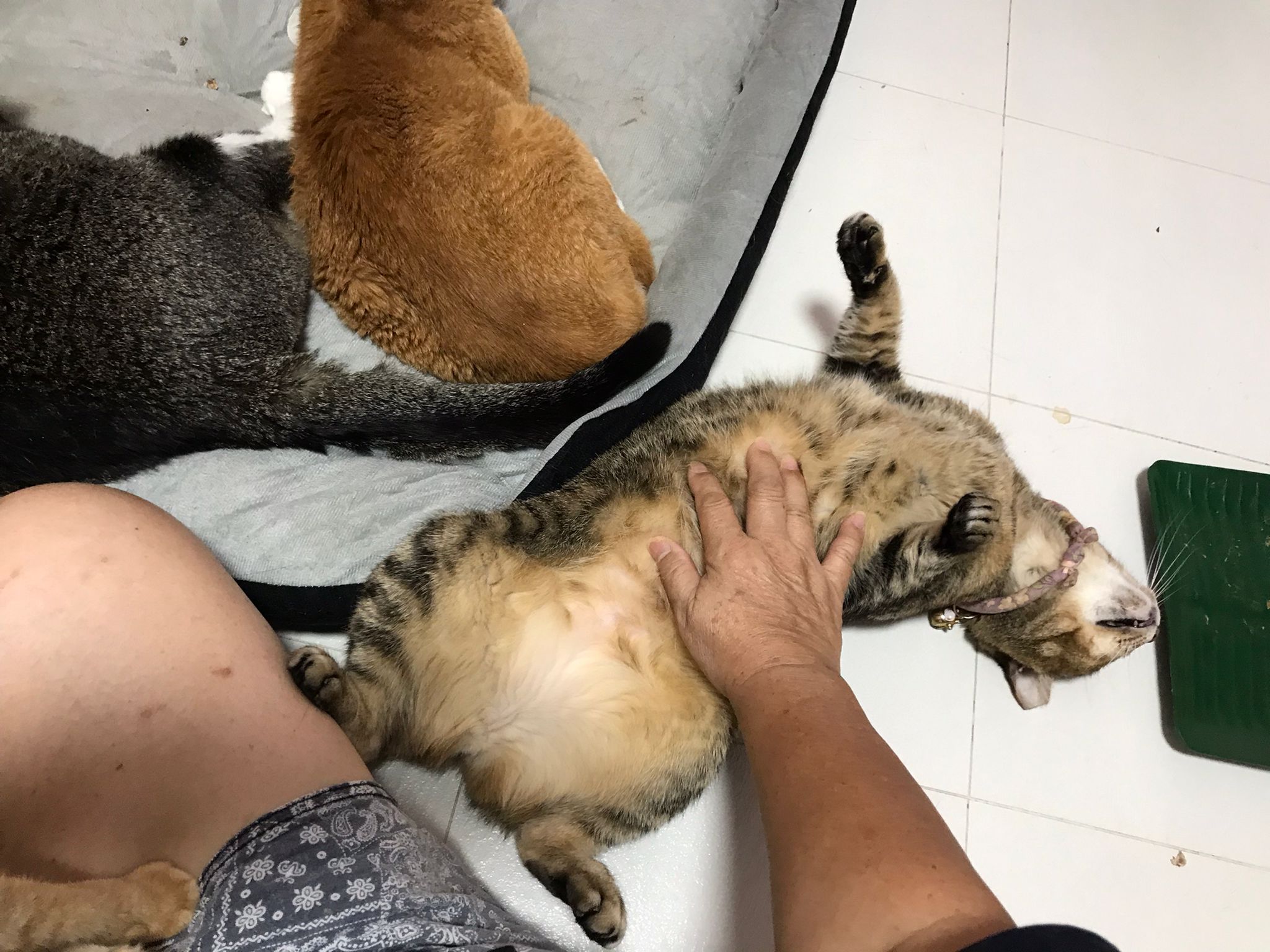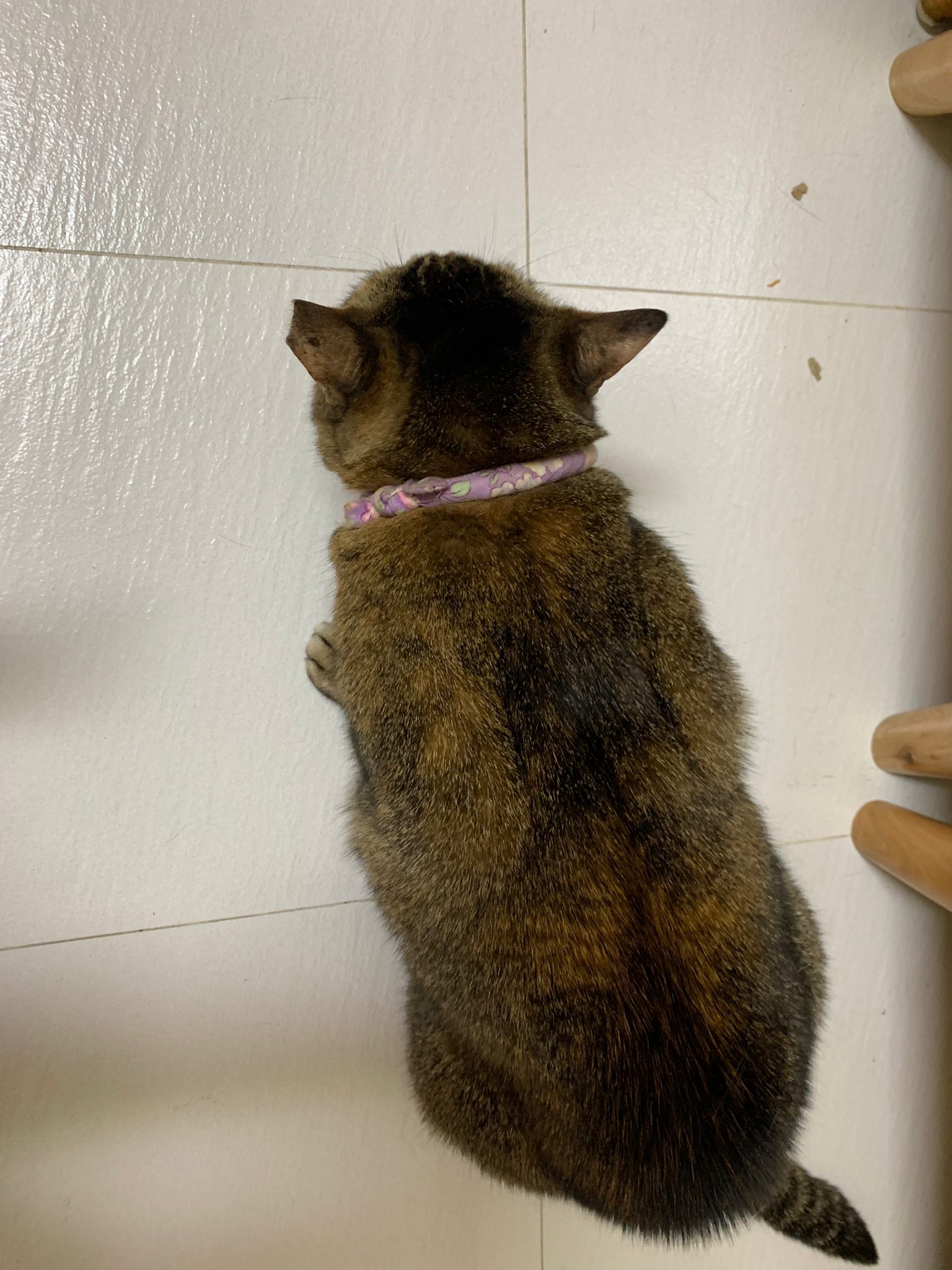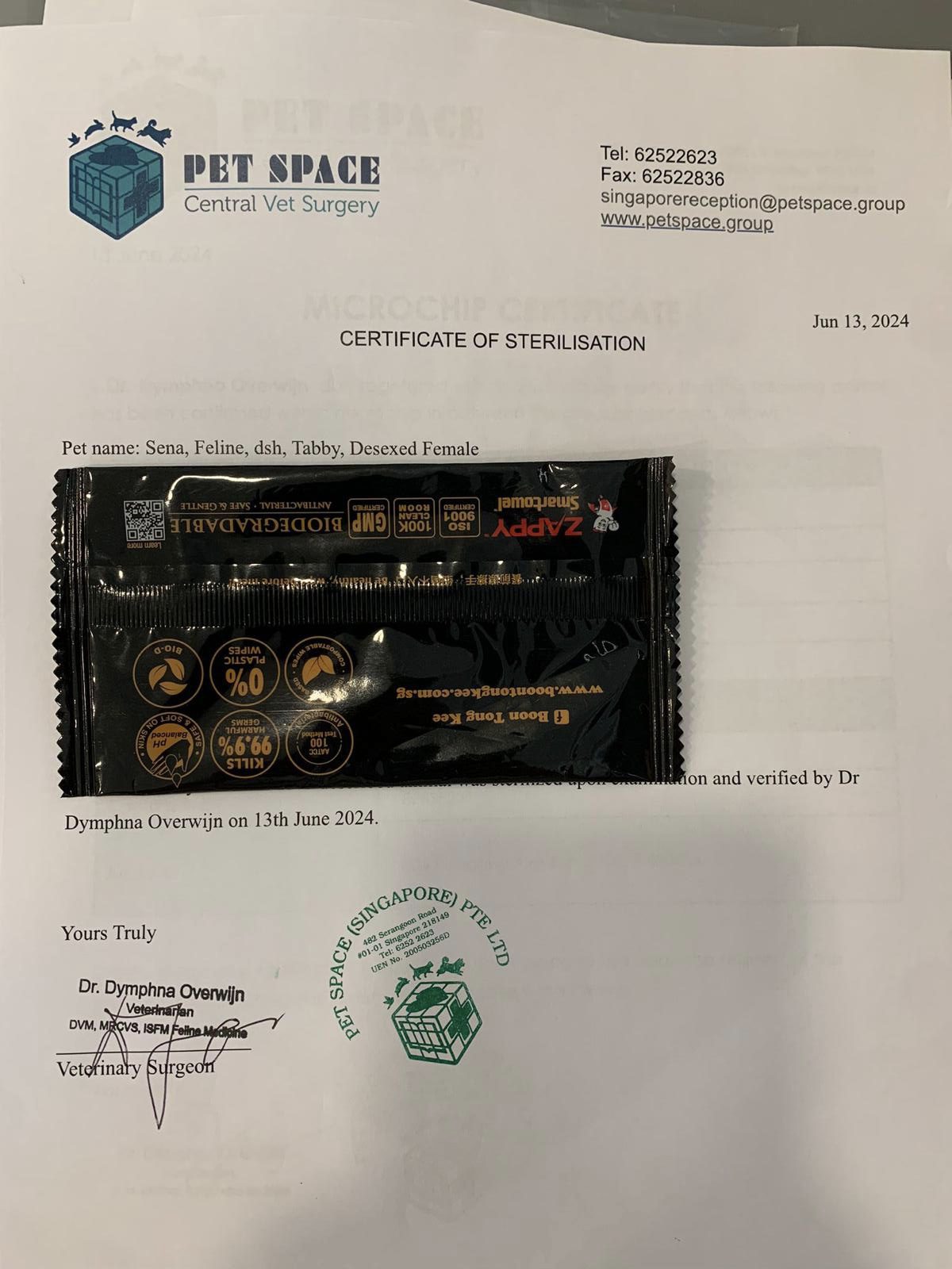 Morning: I greeted everyone and lucky I did so. That’s my basic way to check for any thing Re them within the limited time I’m there. Sena definite asking me for help, her collar stuck to her leg, Erm blood flow won’t be good and uncomfy. V tight can’t adjust her body part to get it out, so cut off and massage her. She know it’s done and she is happy, I sayang n kiss her. I’m the ah mao she can trust. I trace photo sigh may even took photo of her n buddy w that collar stuck to her n she didn’t do anything about it/ doubt she even notice it.