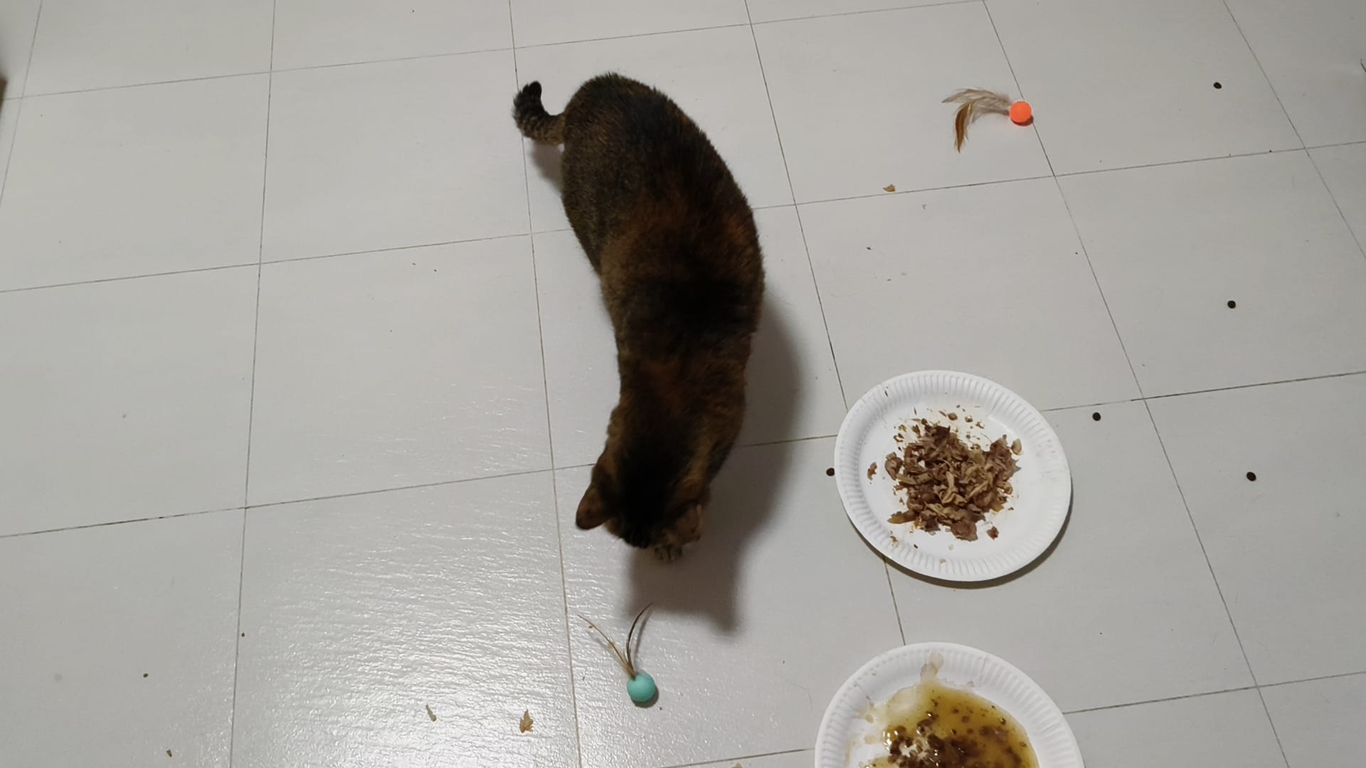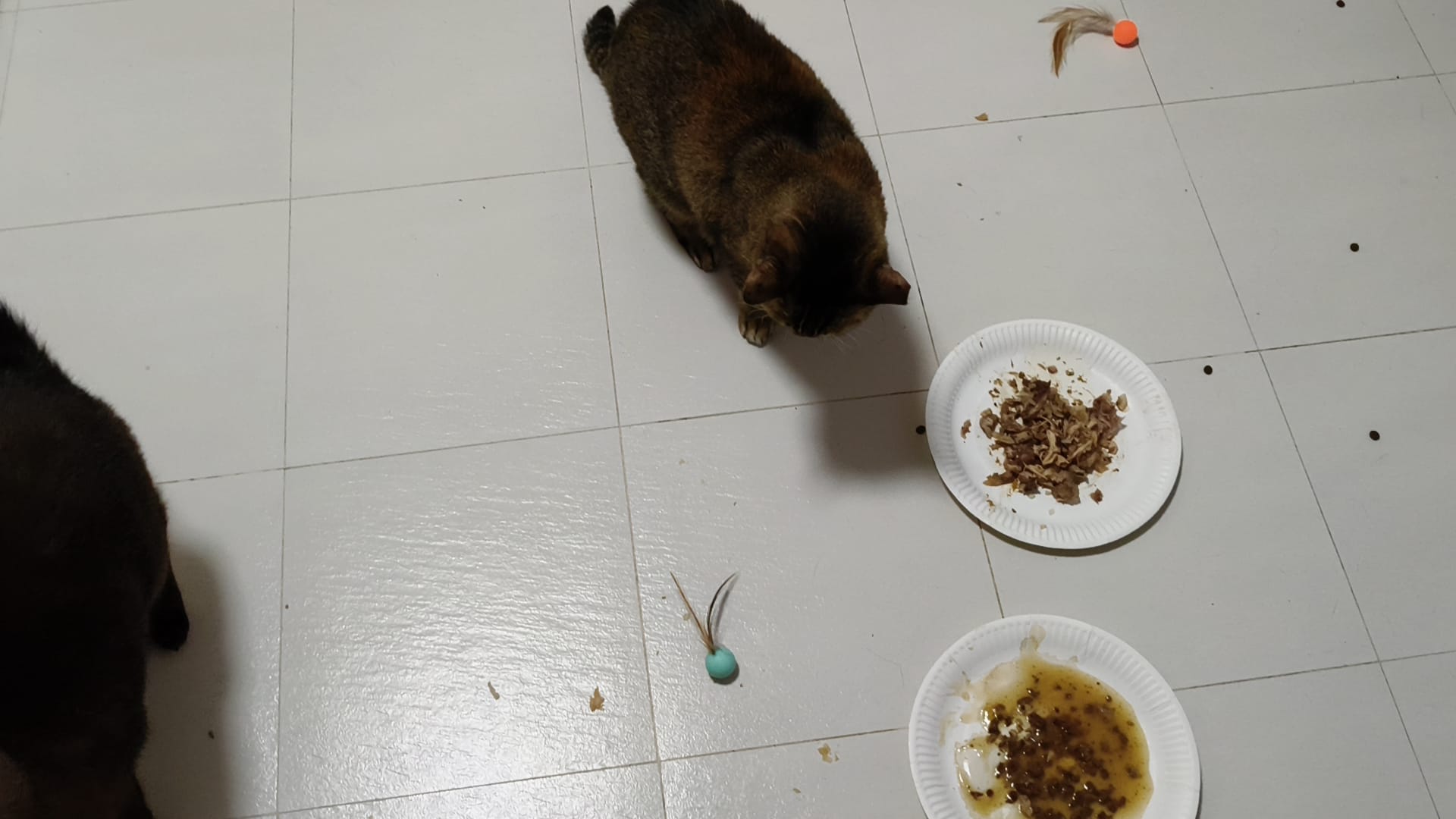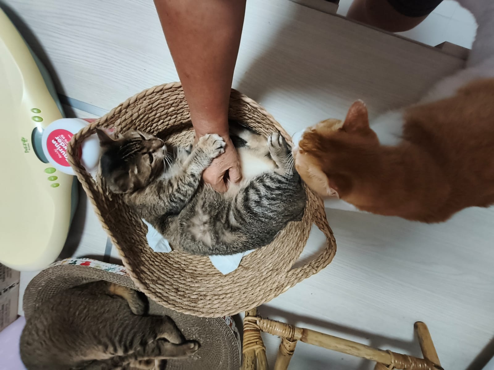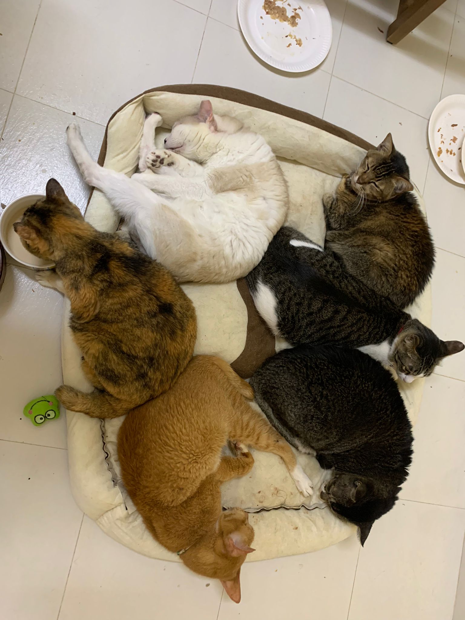 Morning: I greeted everyone and lucky I did so. That’s my basic way to check for any thing Re them within the limited time I’m there. Sena definite asking me for help, her collar stuck to her leg, Erm blood flow won’t be good and uncomfy. V tight can’t adjust her body part to get it out, so cut off and massage her. She know it’s done and she is happy, I sayang n kiss her. I’m the ah mao she can trust. I trace photo sigh may even took photo of her n buddy w that collar stuck to her n she didn’t do anything about it/ doubt she even notice it.