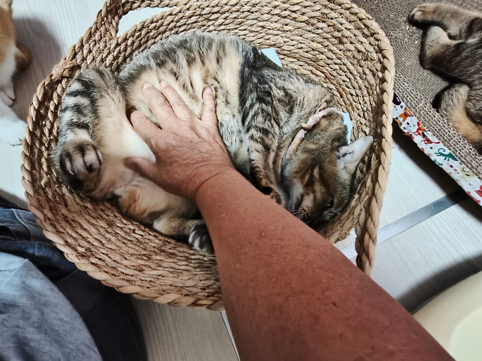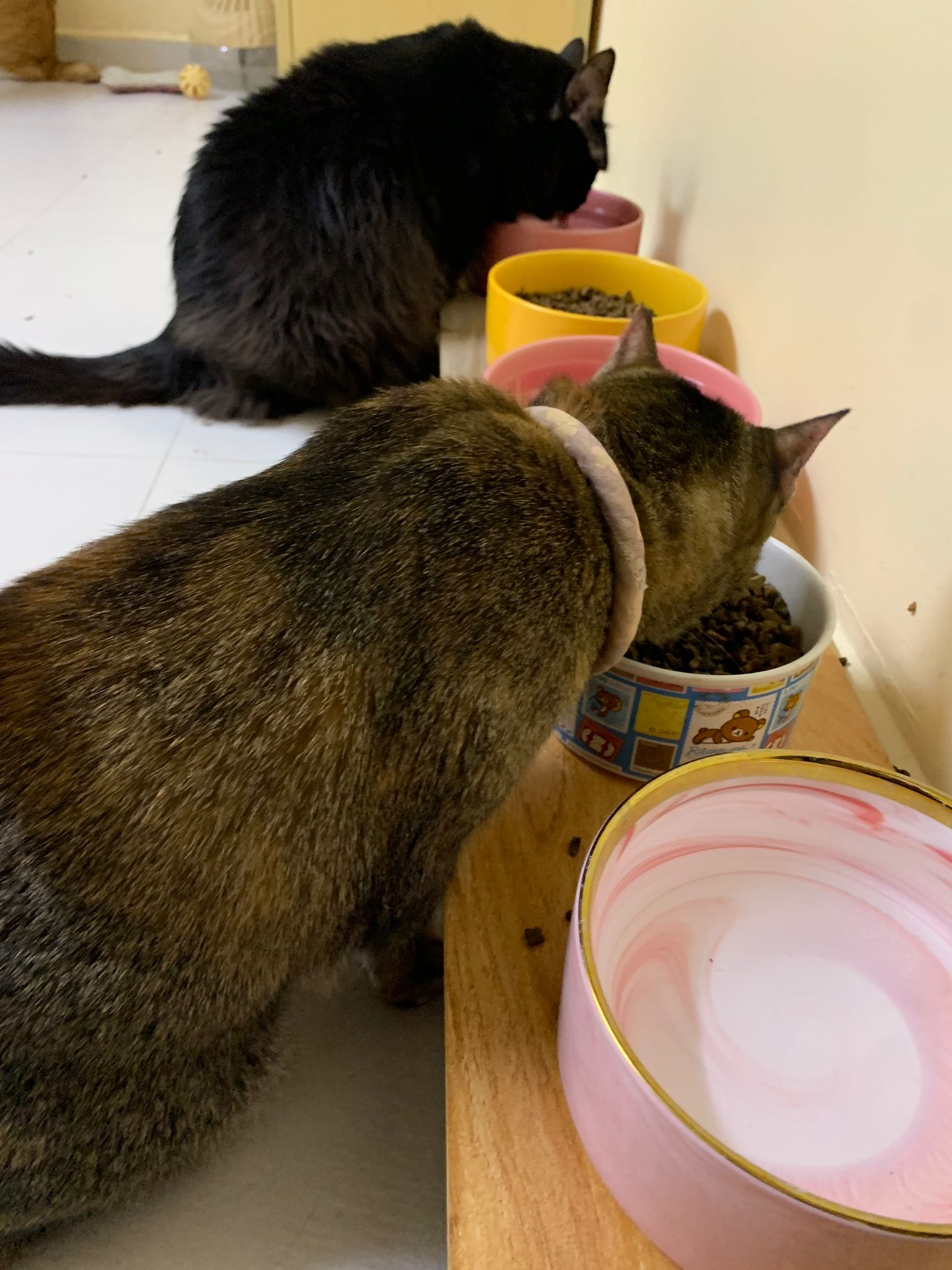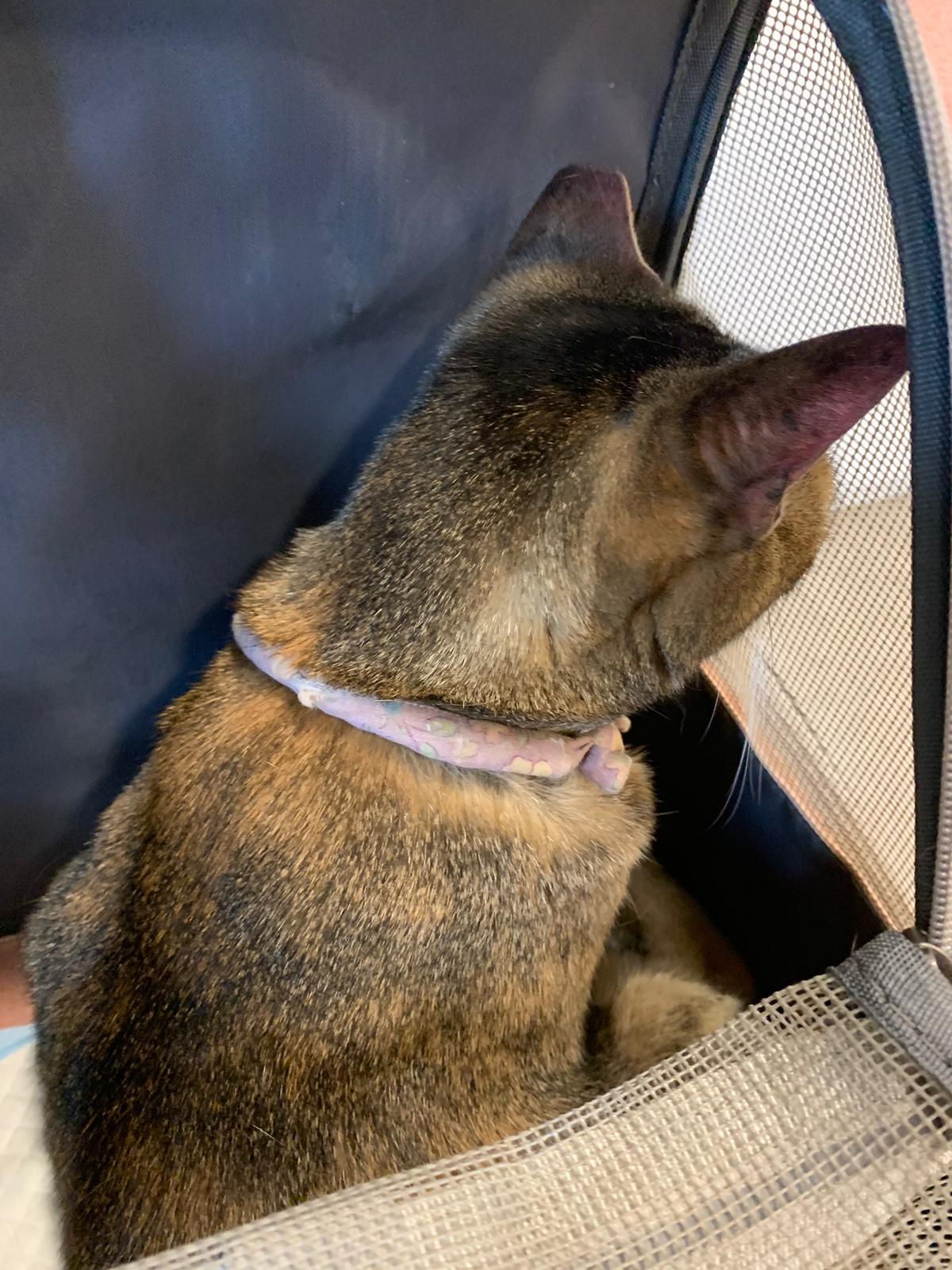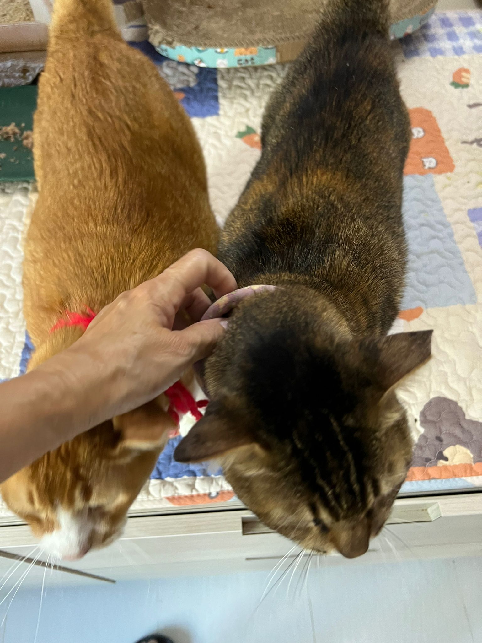 Morning: I greeted everyone and lucky I did so. That’s my basic way to check for any thing Re them within the limited time I’m there. Sena definite asking me for help, her collar stuck to her leg, Erm blood flow won’t be good and uncomfy. V tight can’t adjust her body part to get it out, so cut off and massage her. She know it’s done and she is happy, I sayang n kiss her. I’m the ah mao she can trust. I trace photo sigh may even took photo of her n buddy w that collar stuck to her n she didn’t do anything about it/ doubt she even notice it.