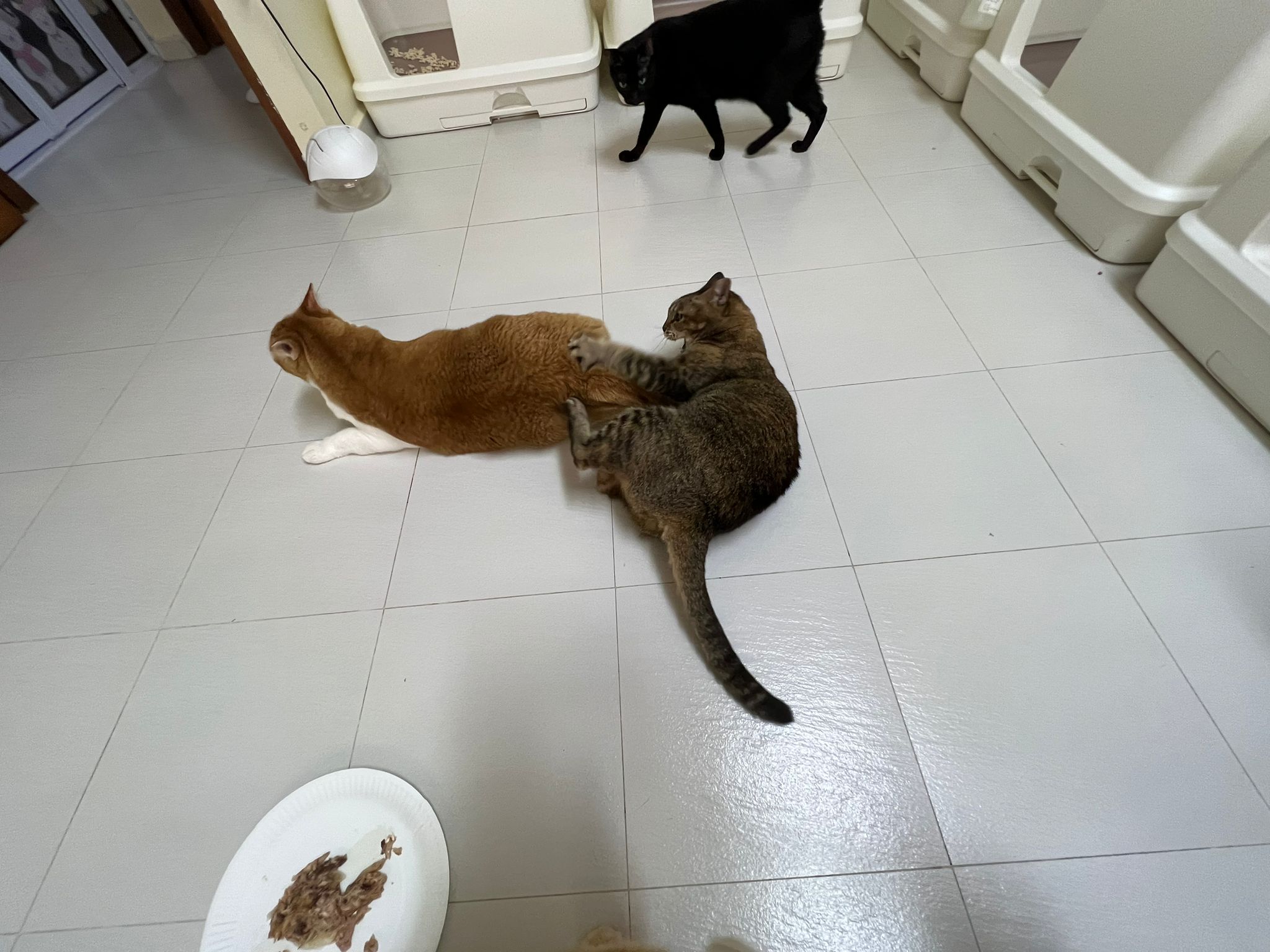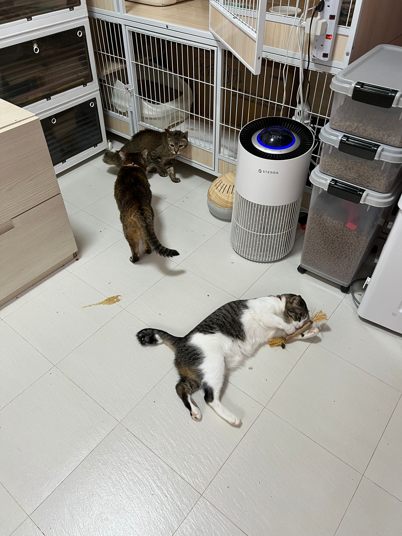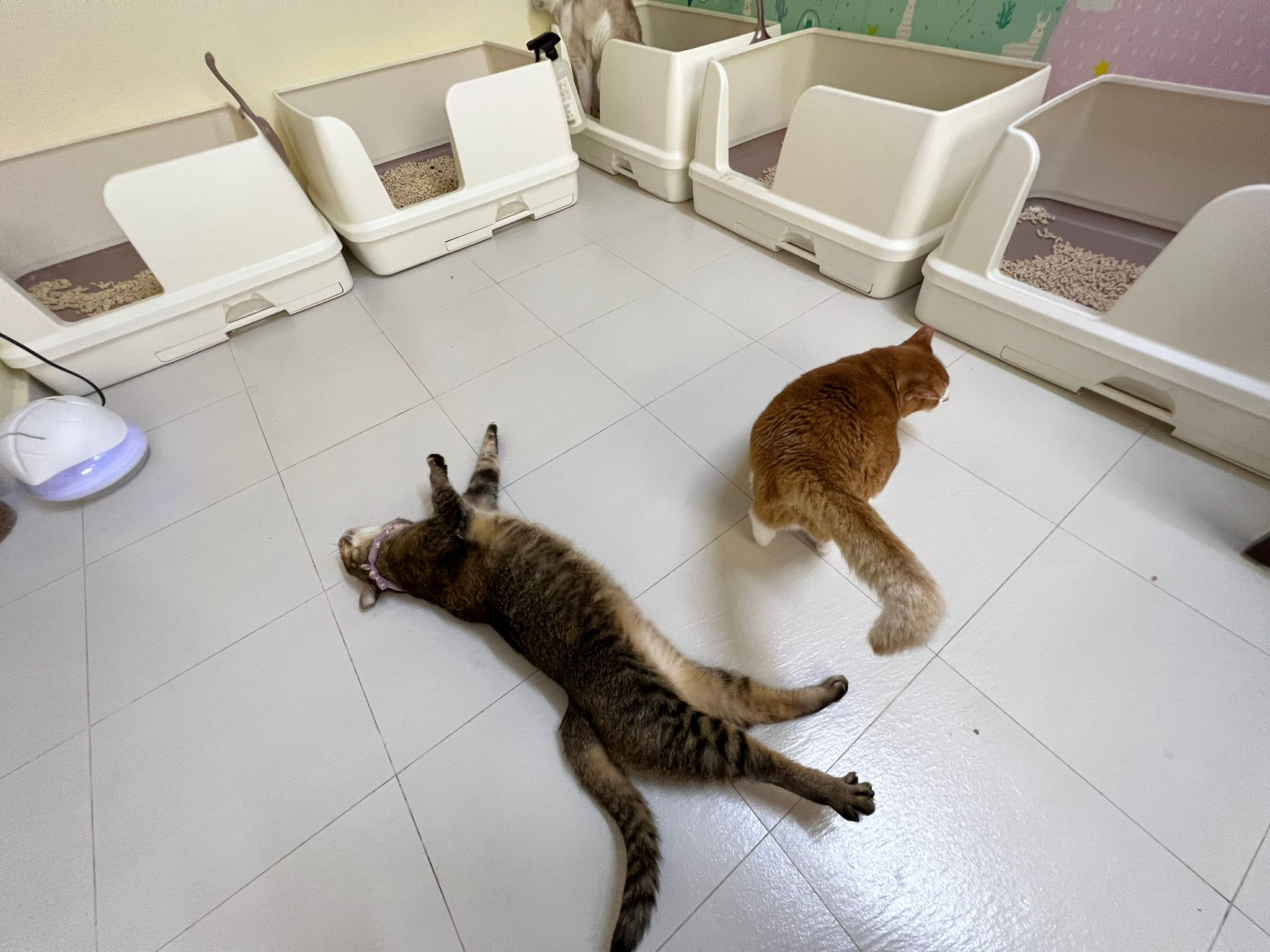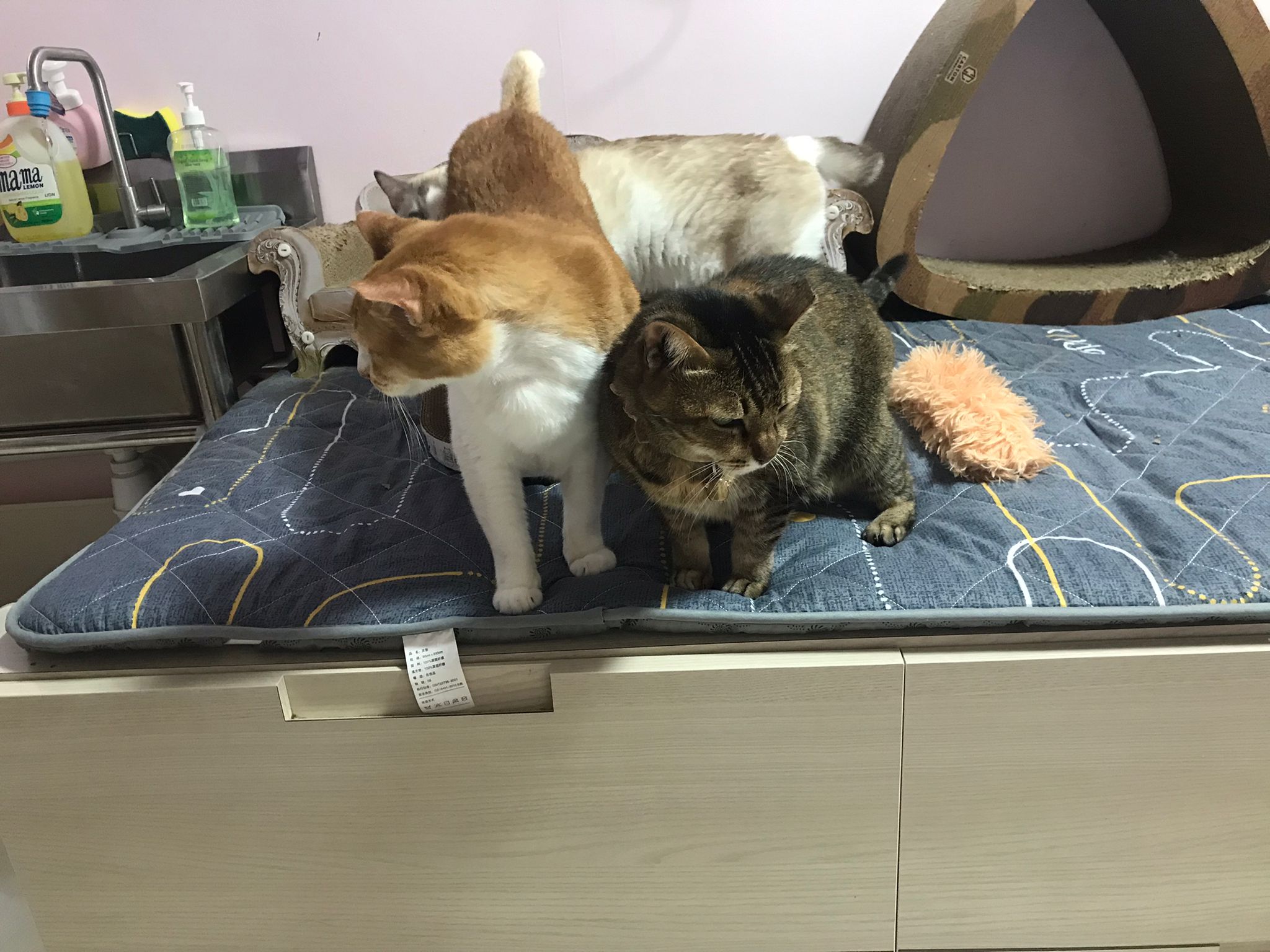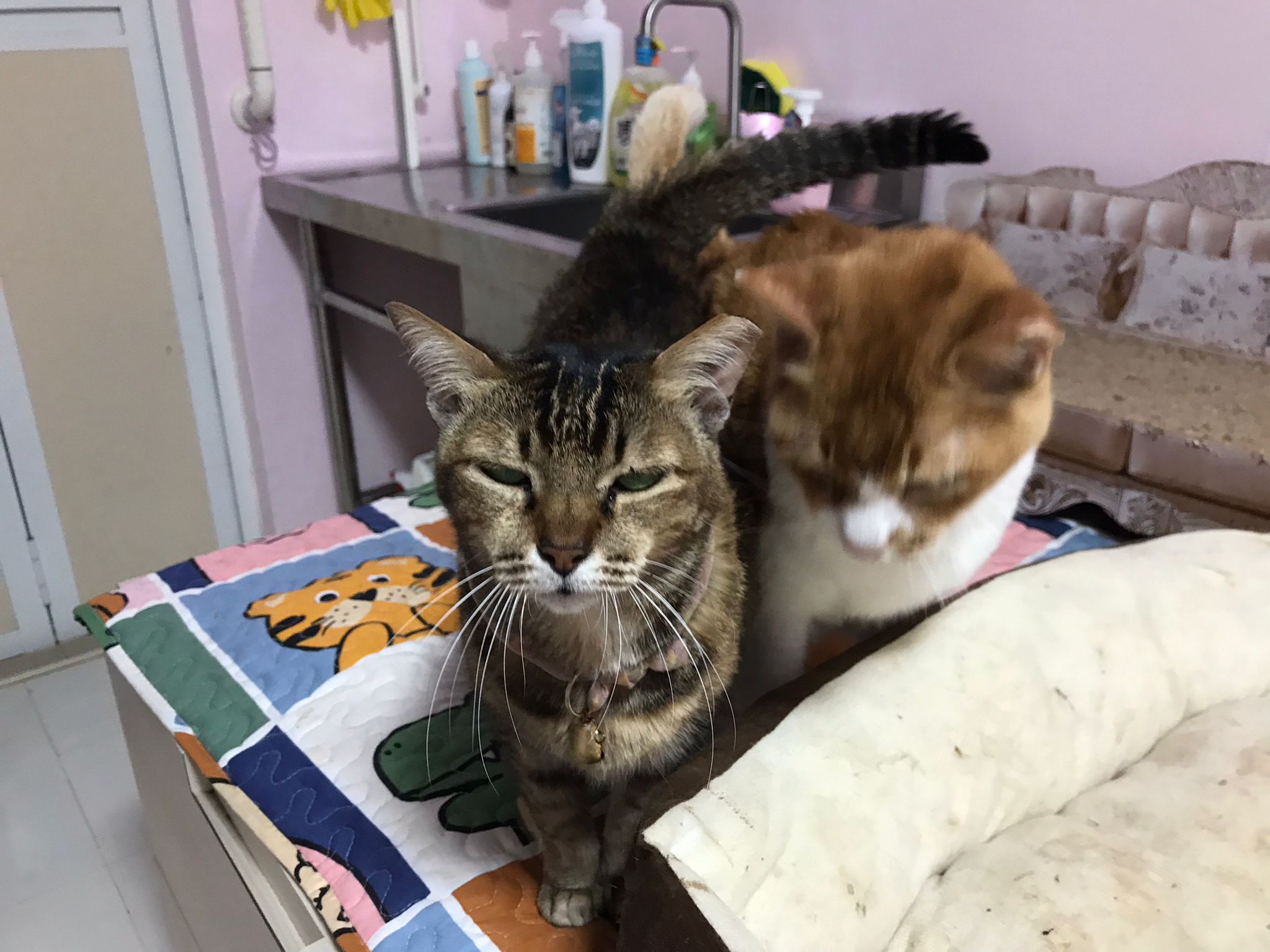 8am+-2.35pm: I’m a happy mao today. I stay in 猫房 for so long. Today all the cats staying in the food room for safety air reason. Cos new room need through and proper clean up first. Buddy and sena loving – lick each other in the bath tub sb but one point sena go climb onto aircon and cause the whole cover to fly down lucky I’m in and I hop it if not will hit who, so dangerous. And she was also biting the sb off the bath tub sb – going to throw on wed