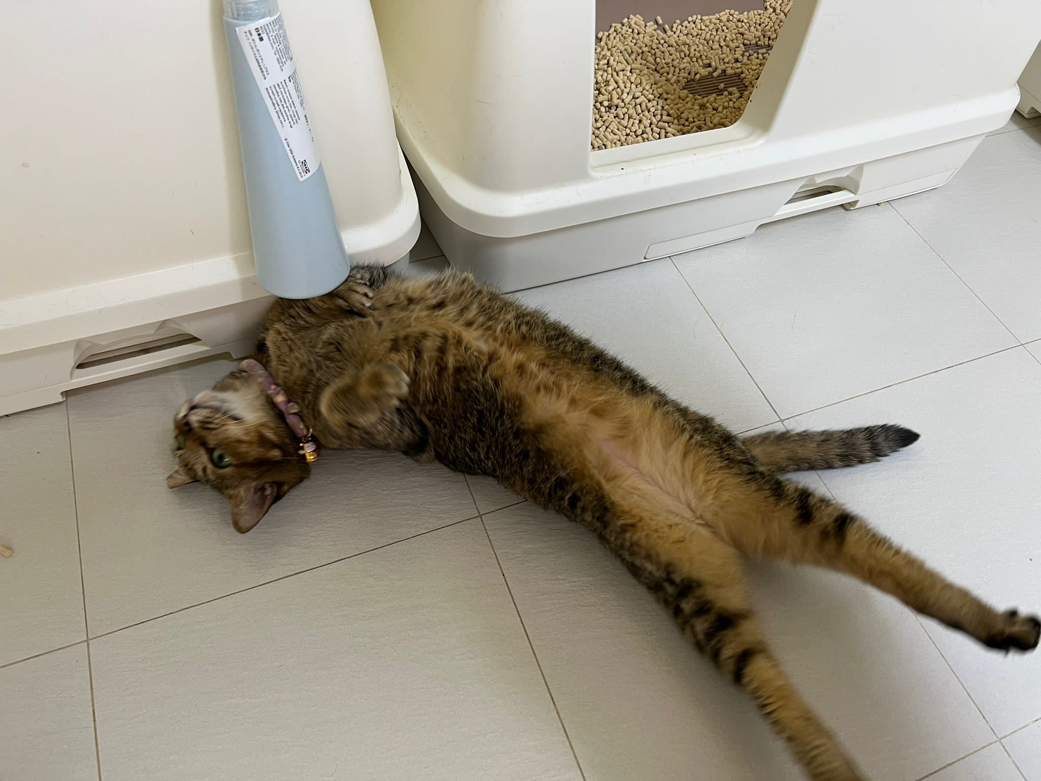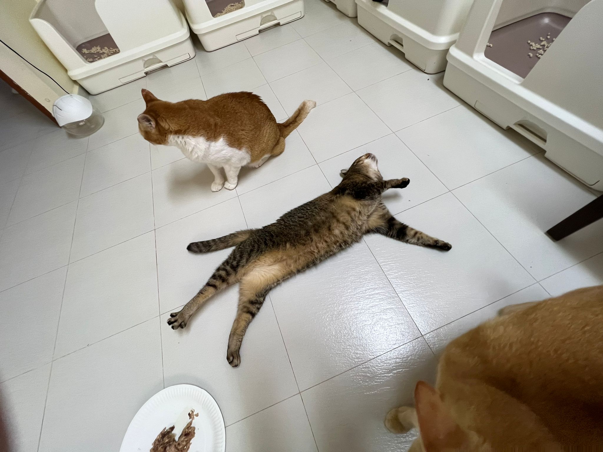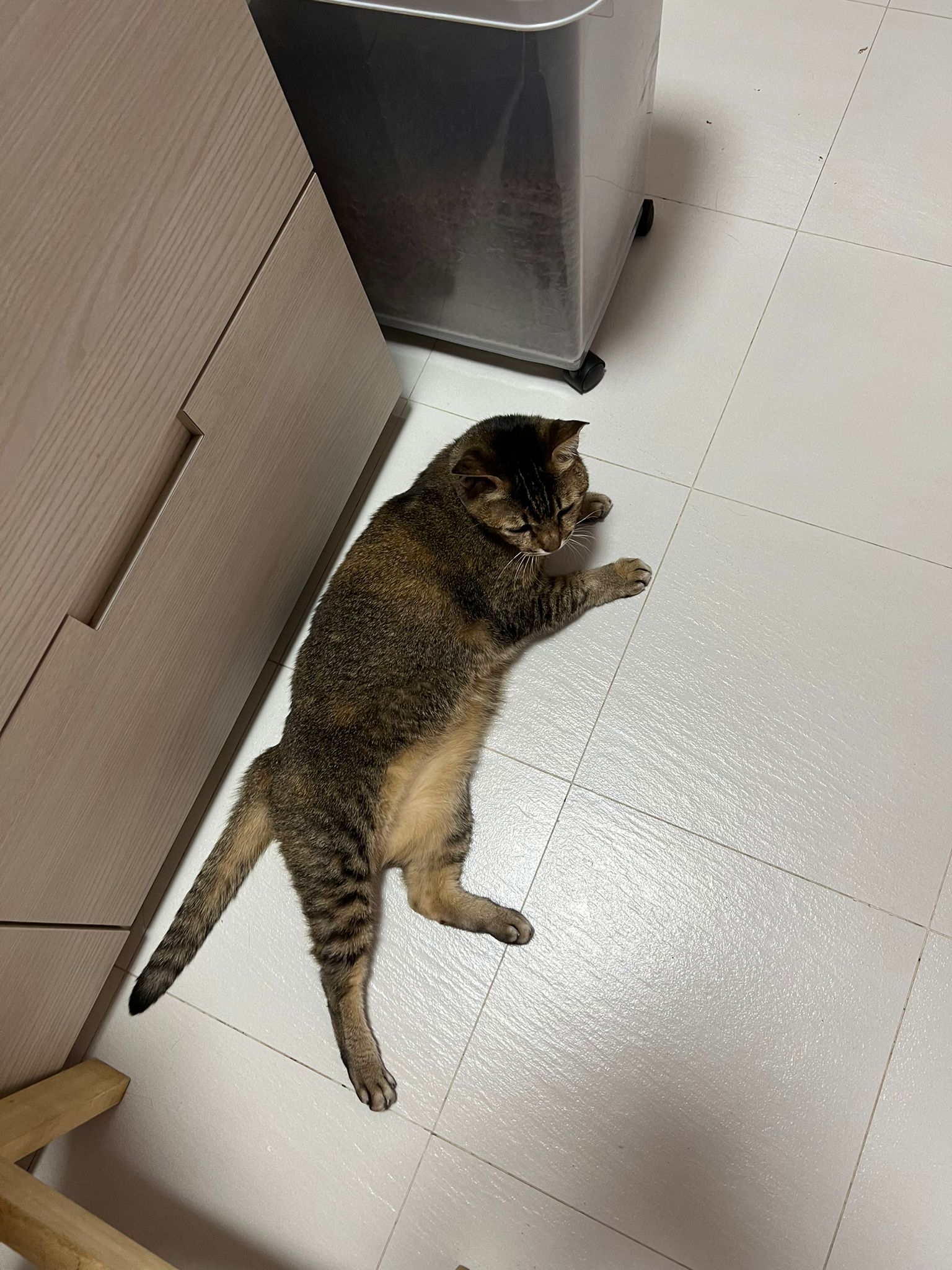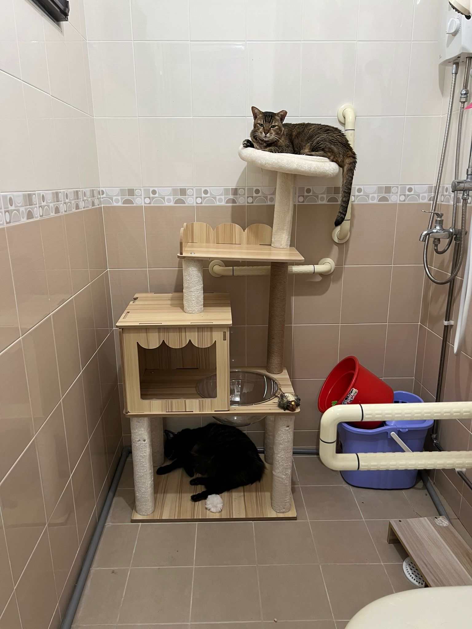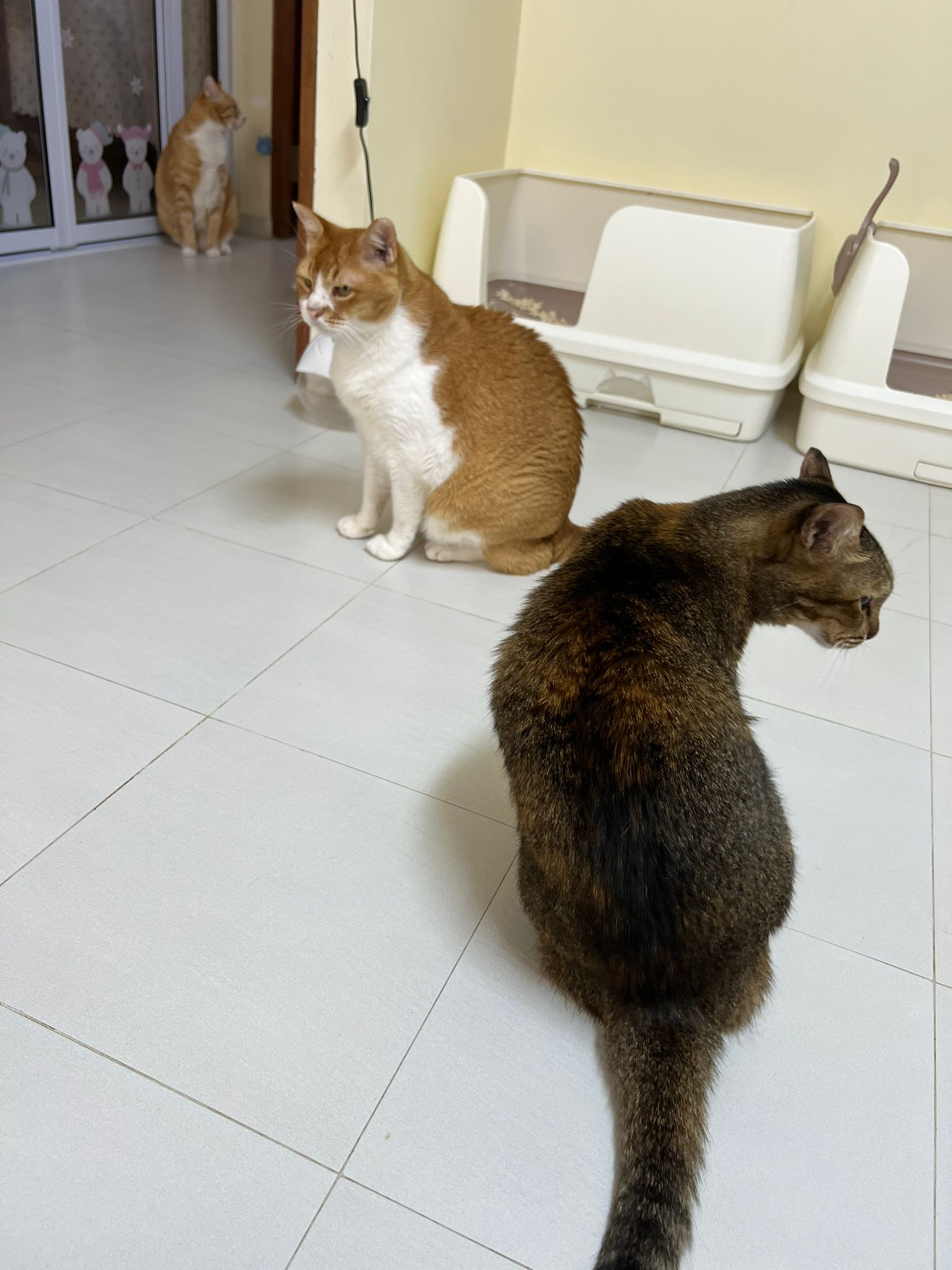 8am+-2.35pm: I’m a happy mao today. I stay in 猫房 for so long. Today all the cats staying in the food room for safety air reason. Cos new room need through and proper clean up first. Buddy and sena loving – lick each other in the bath tub sb but one point sena go climb onto aircon and cause the whole cover to fly down lucky I’m in and I hop it if not will hit who, so dangerous. And she was also biting the sb off the bath tub sb – going to throw on wed