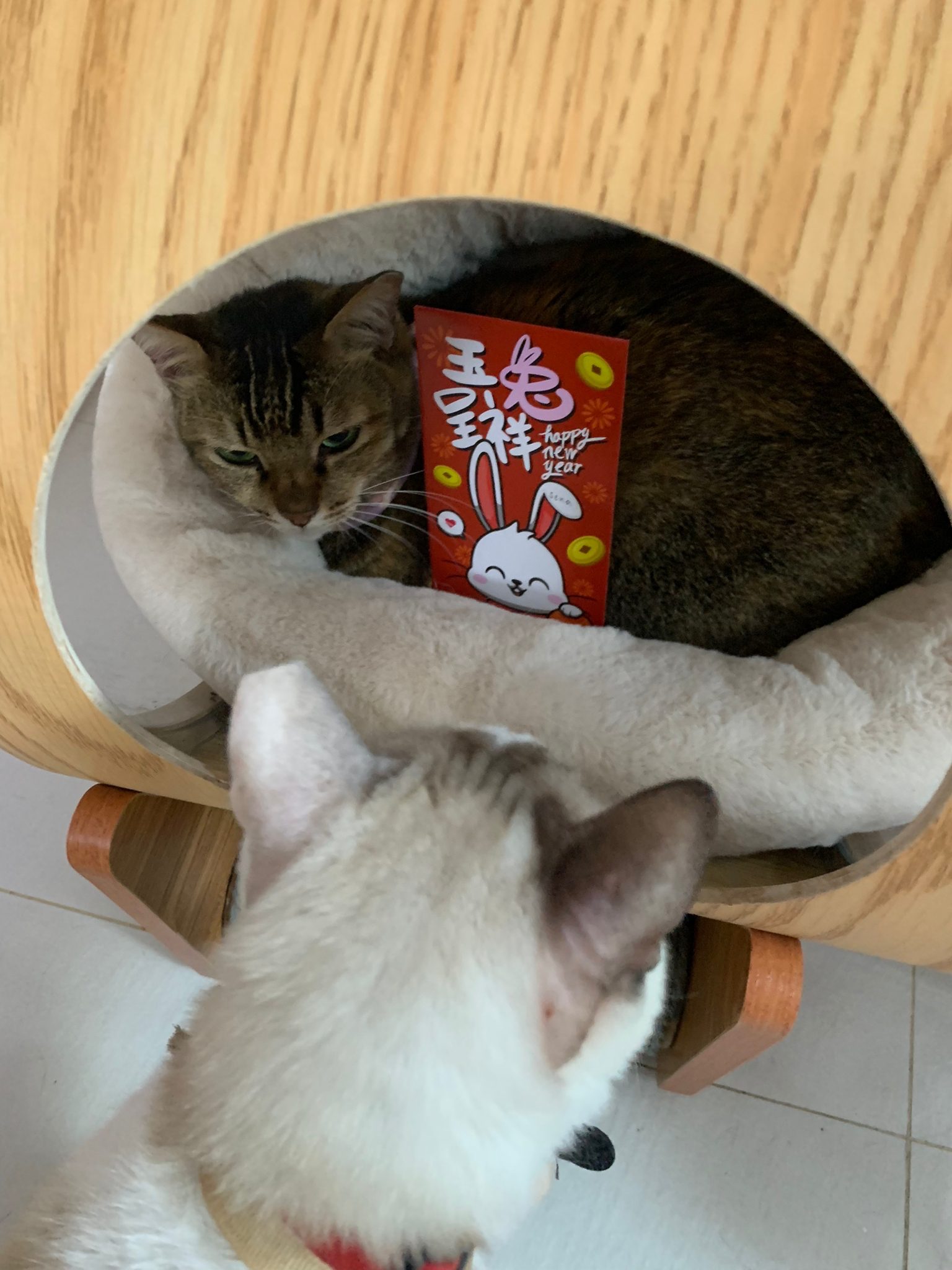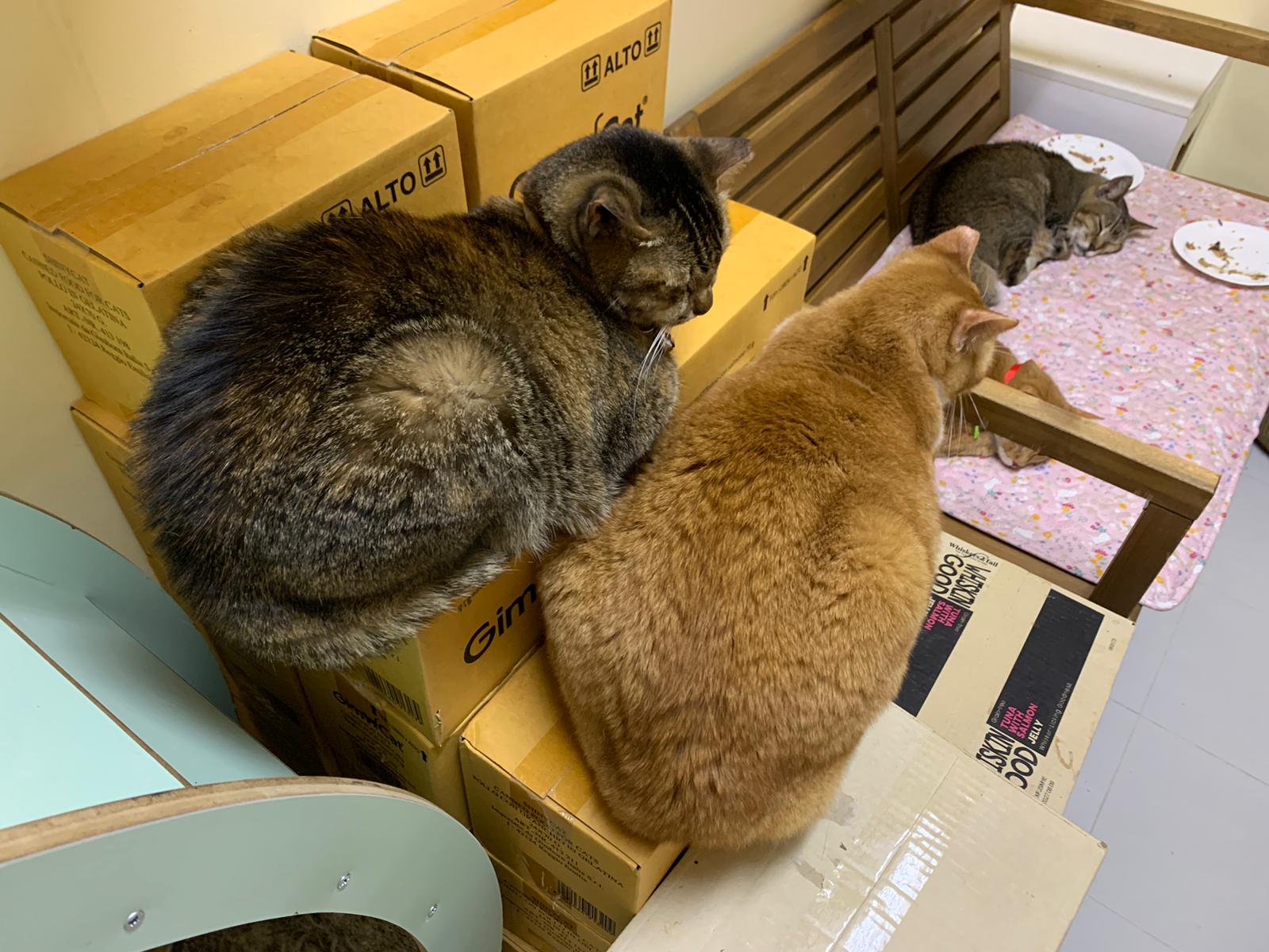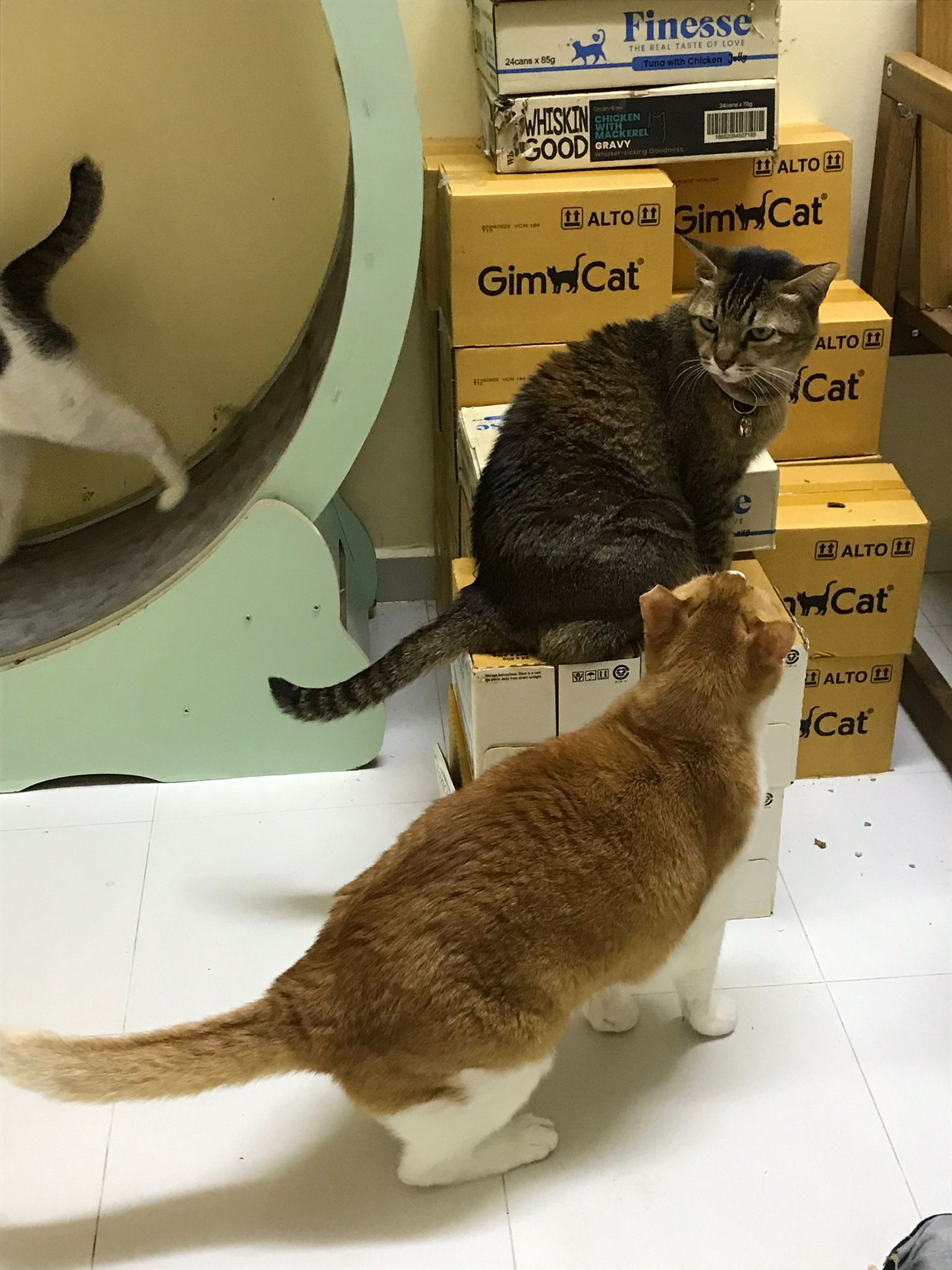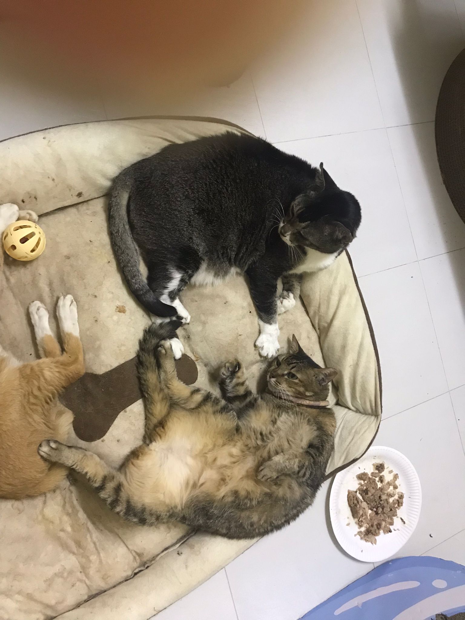 Morning: I did some packing and do medi n sena looks a little jealous. I sit down n kiss her n we hug hug told her she knows she is the cutestiest 猫房 cat. Last time mao mao king so big hearted also welcome them to 猫房 … this is how 猫房 have lots of good and positive vibes. All love love