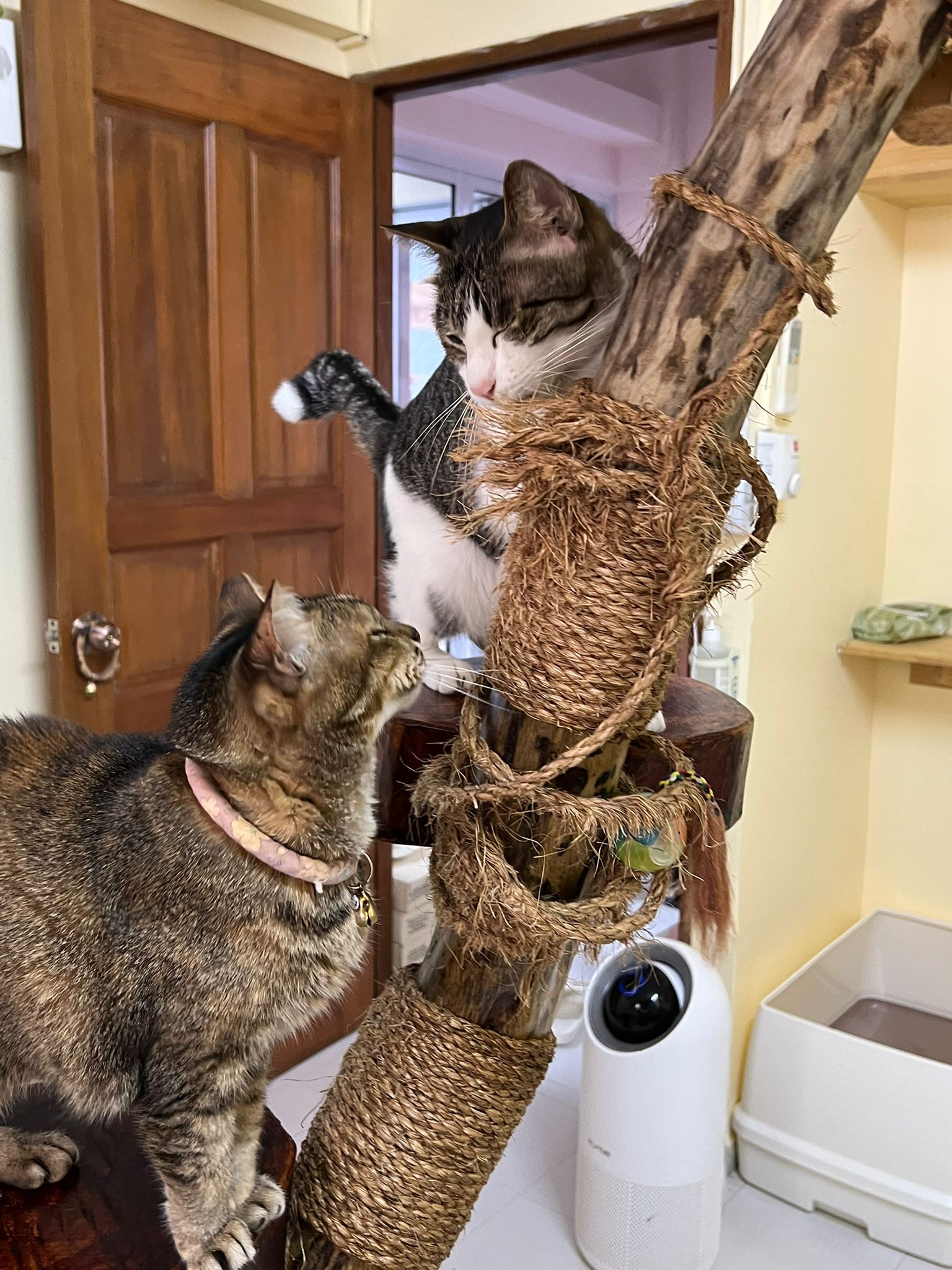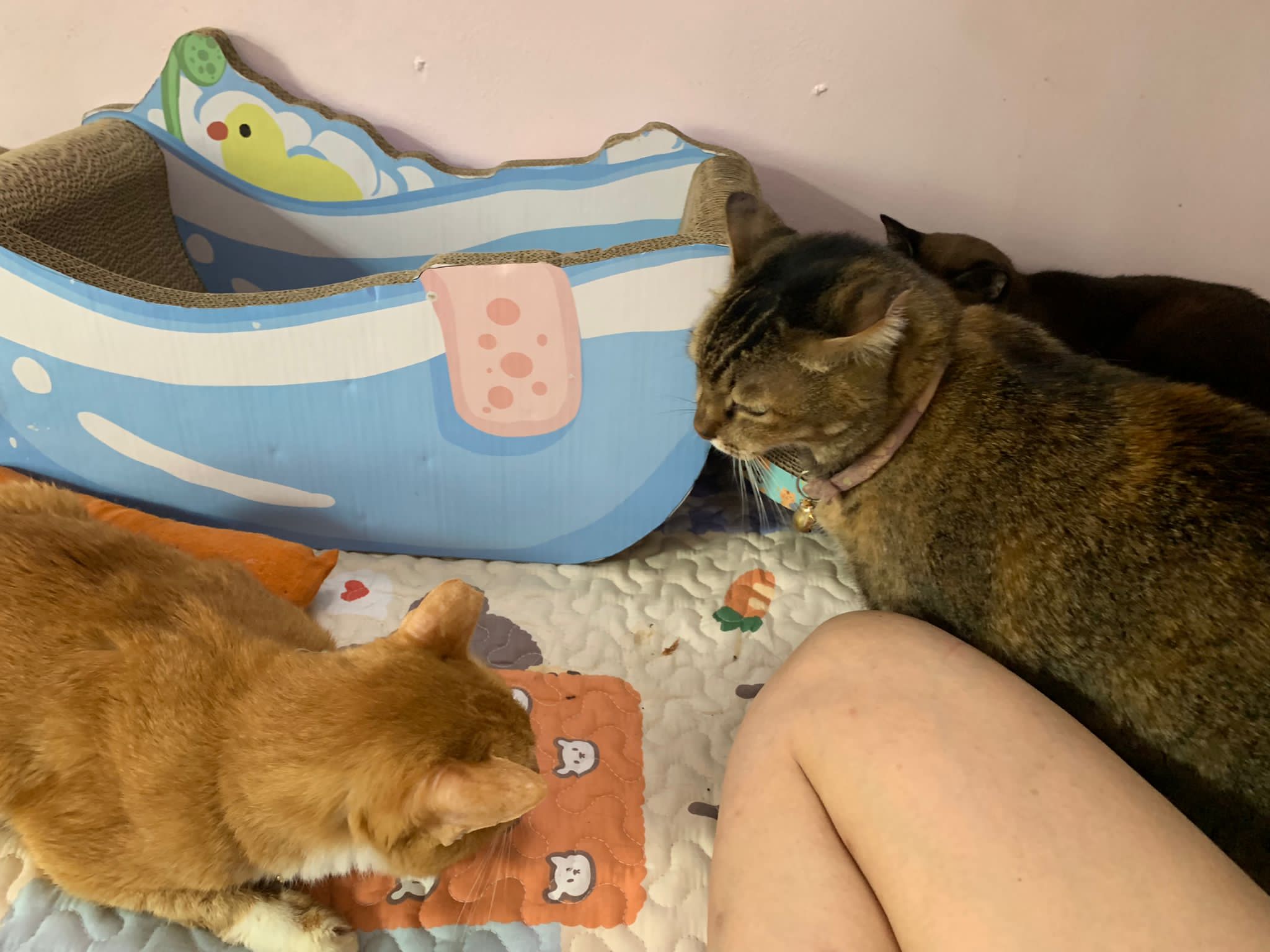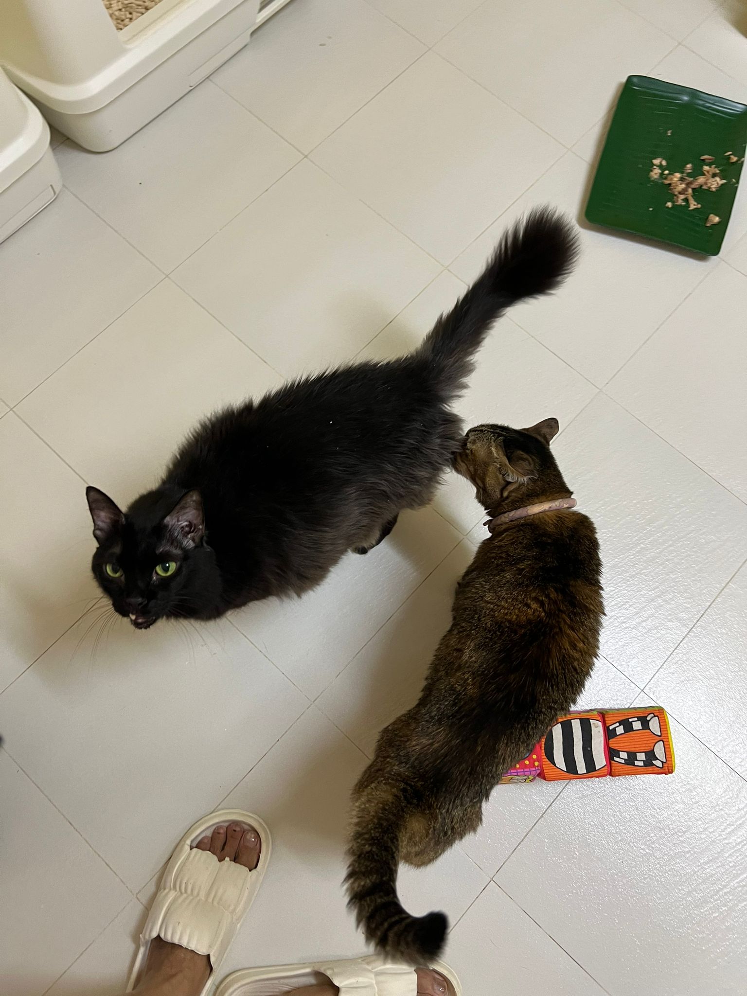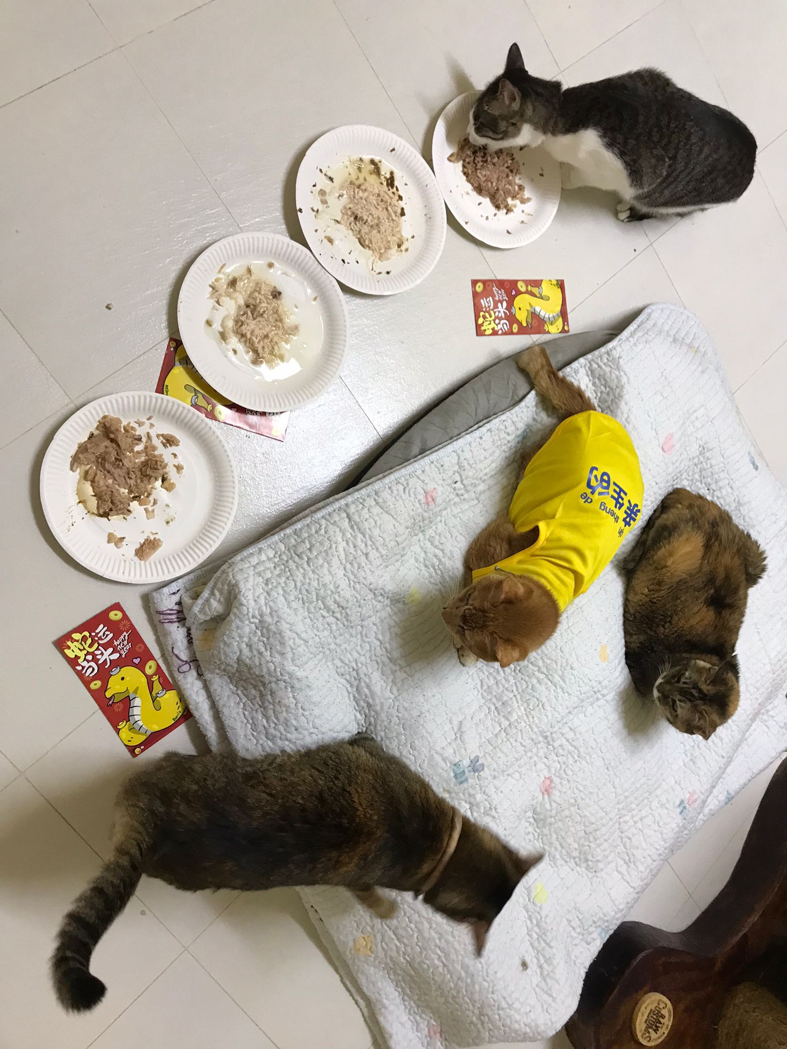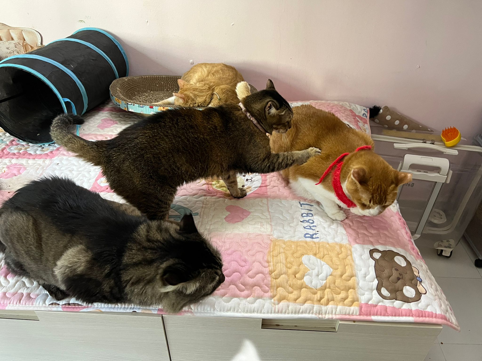 Morning: I did some packing and do medi n sena looks a little jealous. I sit down n kiss her n we hug hug told her she knows she is the cutestiest 猫房 cat. Last time mao mao king so big hearted also welcome them to 猫房 … this is how 猫房 have lots of good and positive vibes. All love love