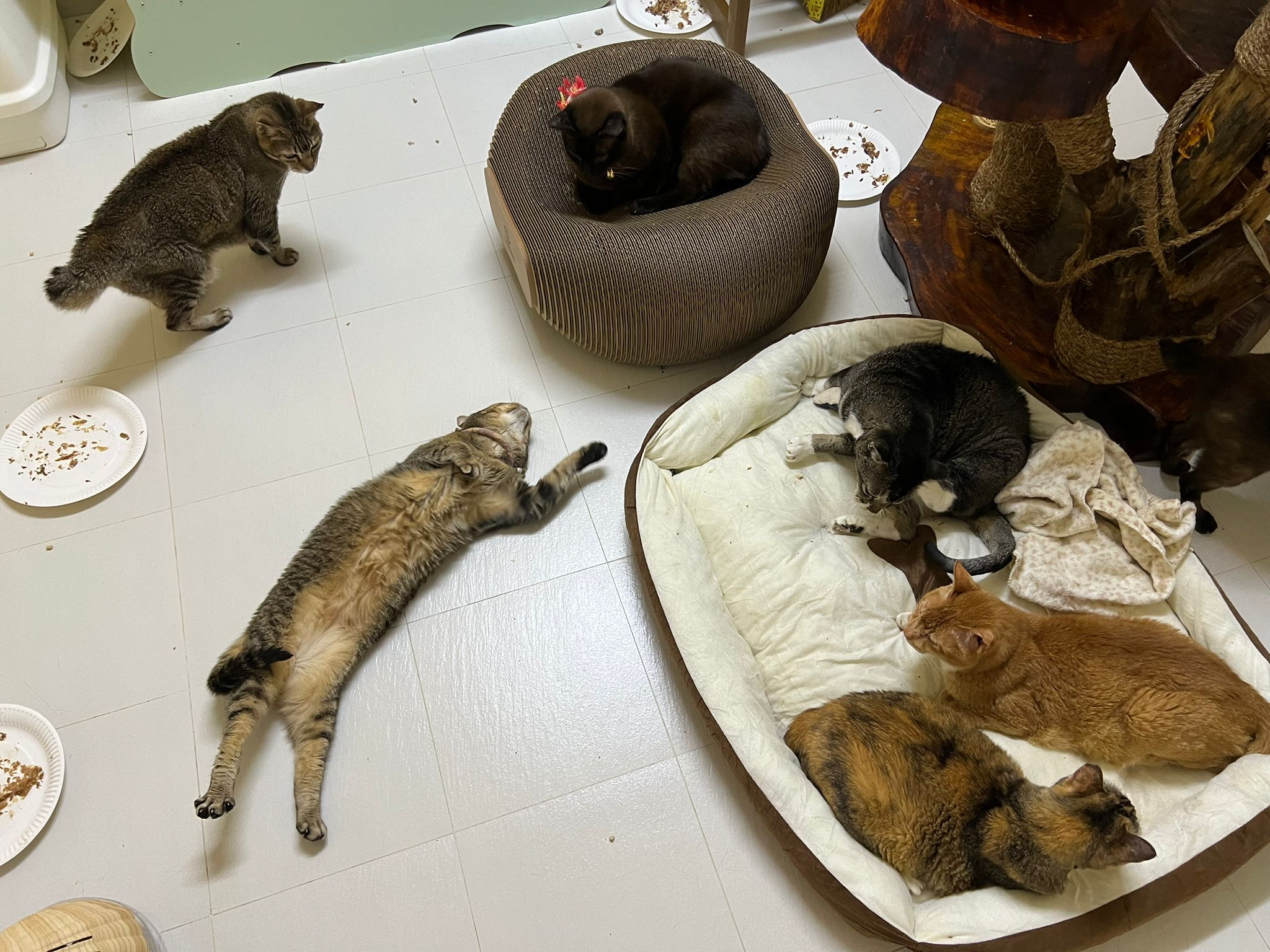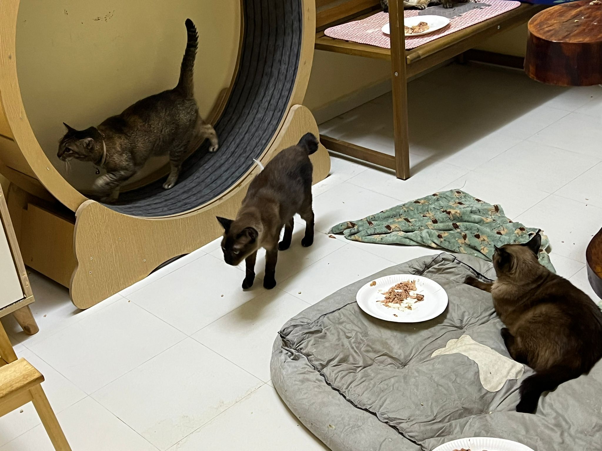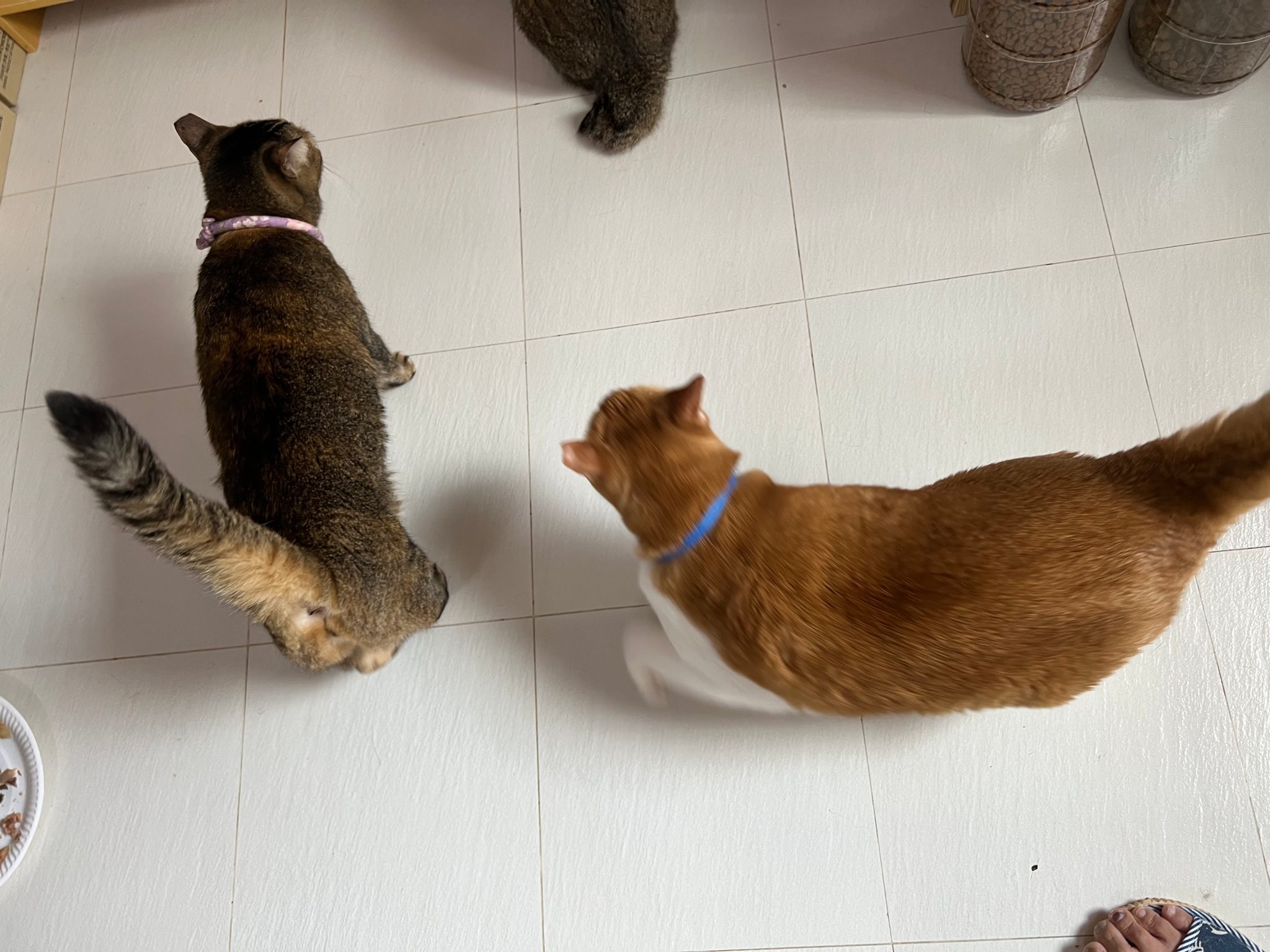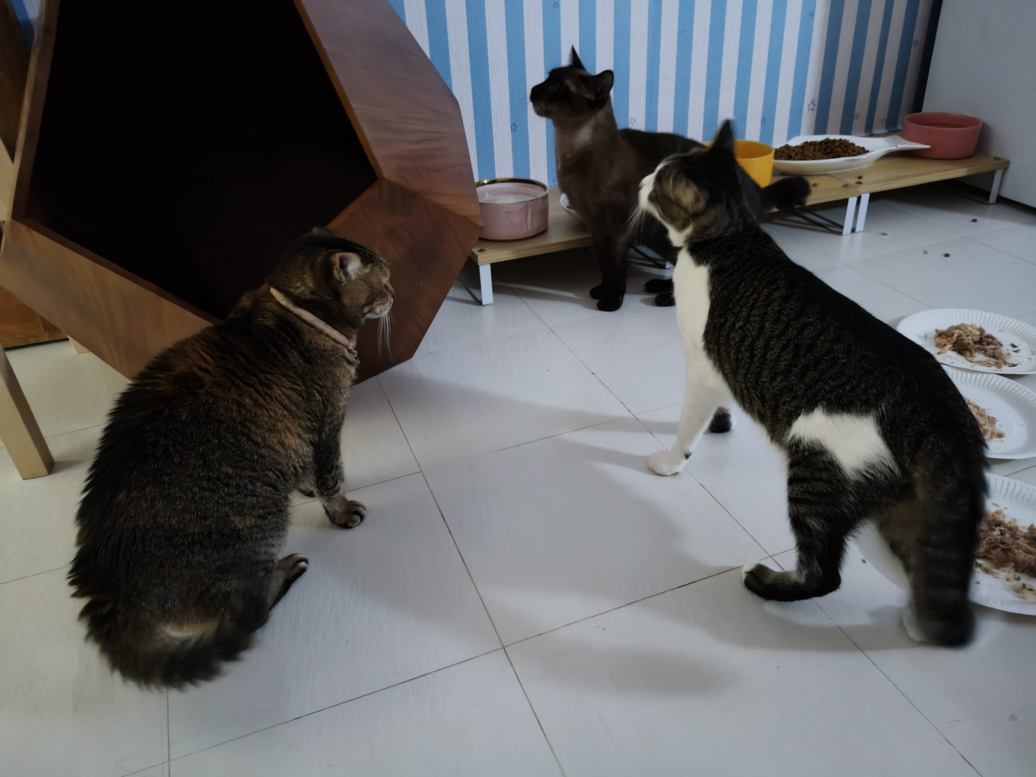 Morning: I did some packing and do medi n sena looks a little jealous. I sit down n kiss her n we hug hug told her she knows she is the cutestiest 猫房 cat. Last time mao mao king so big hearted also welcome them to 猫房 … this is how 猫房 have lots of good and positive vibes. All love love