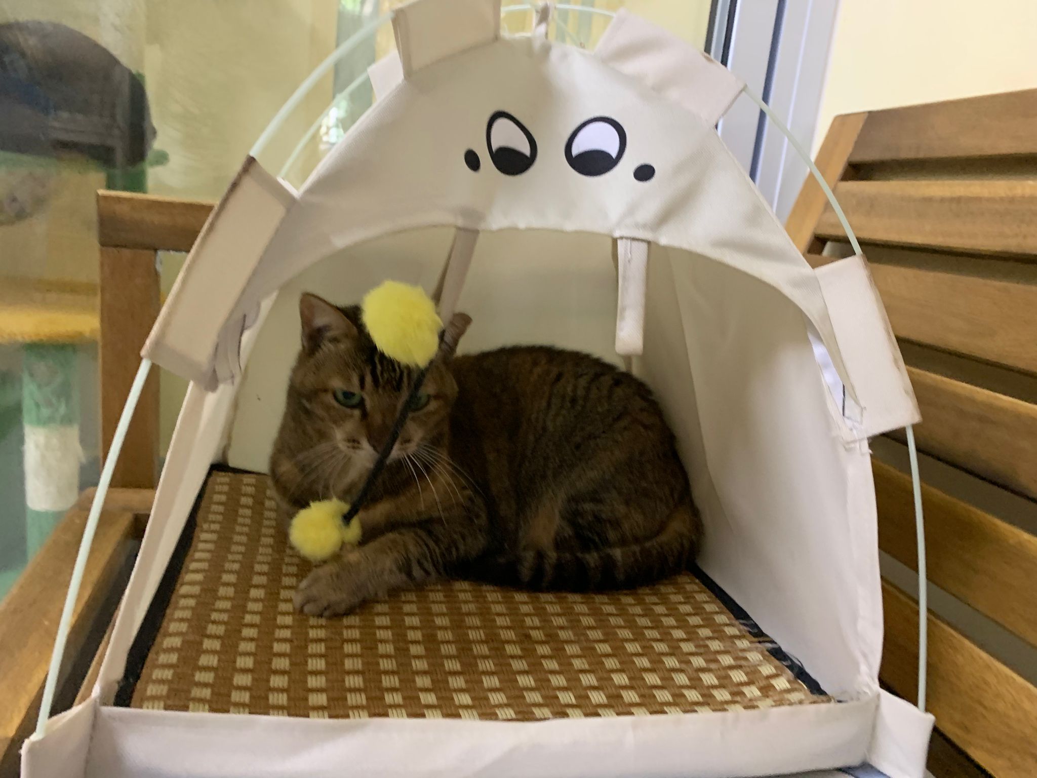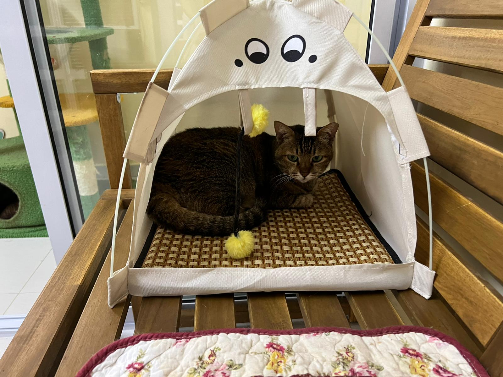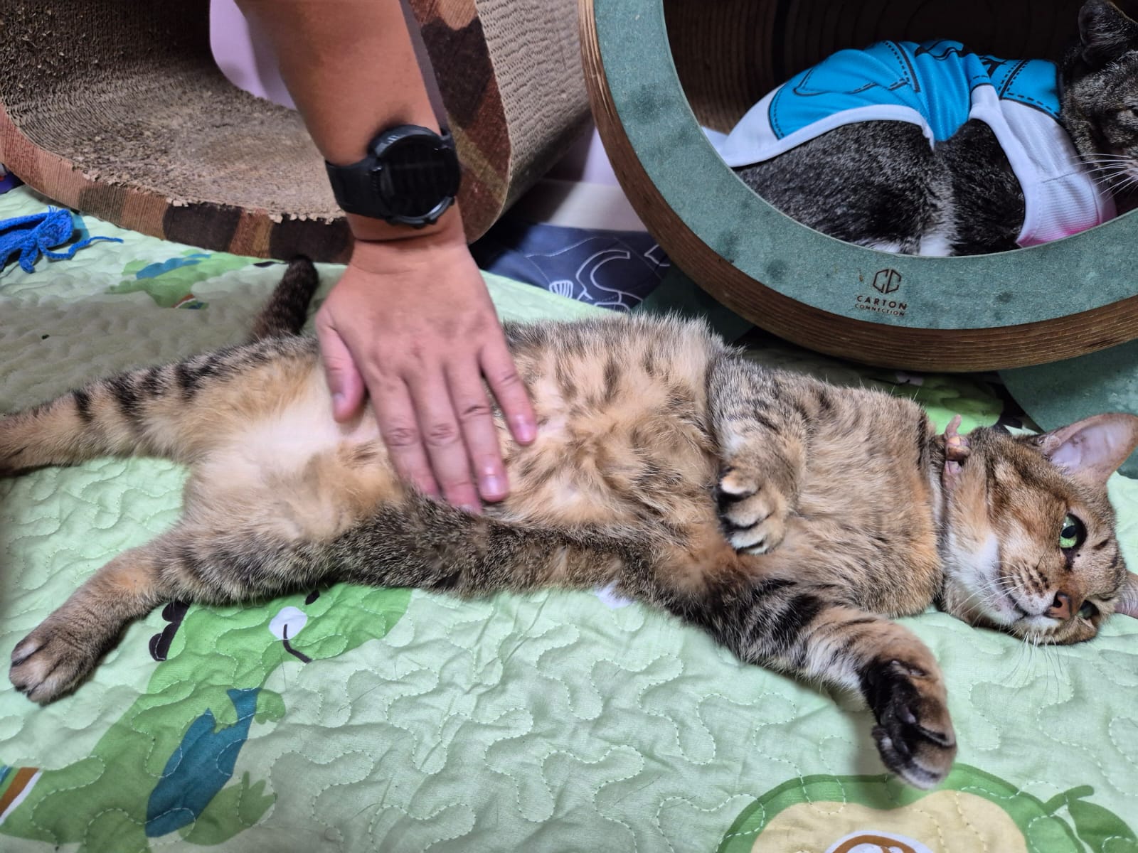 Morning: still my super belly rub queen. Kitty wanna the small tent n sena don’t want to give him. Told him wait, later vacant then go in.