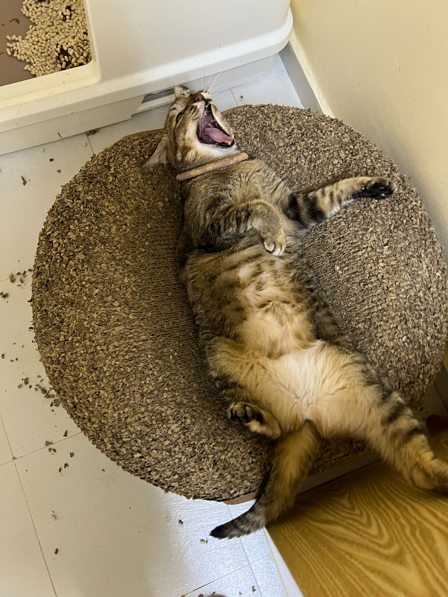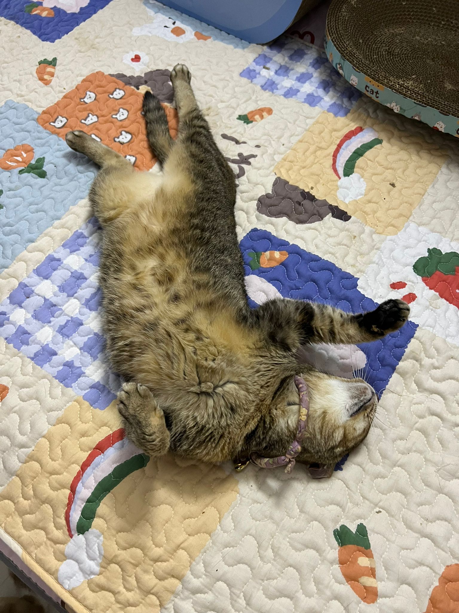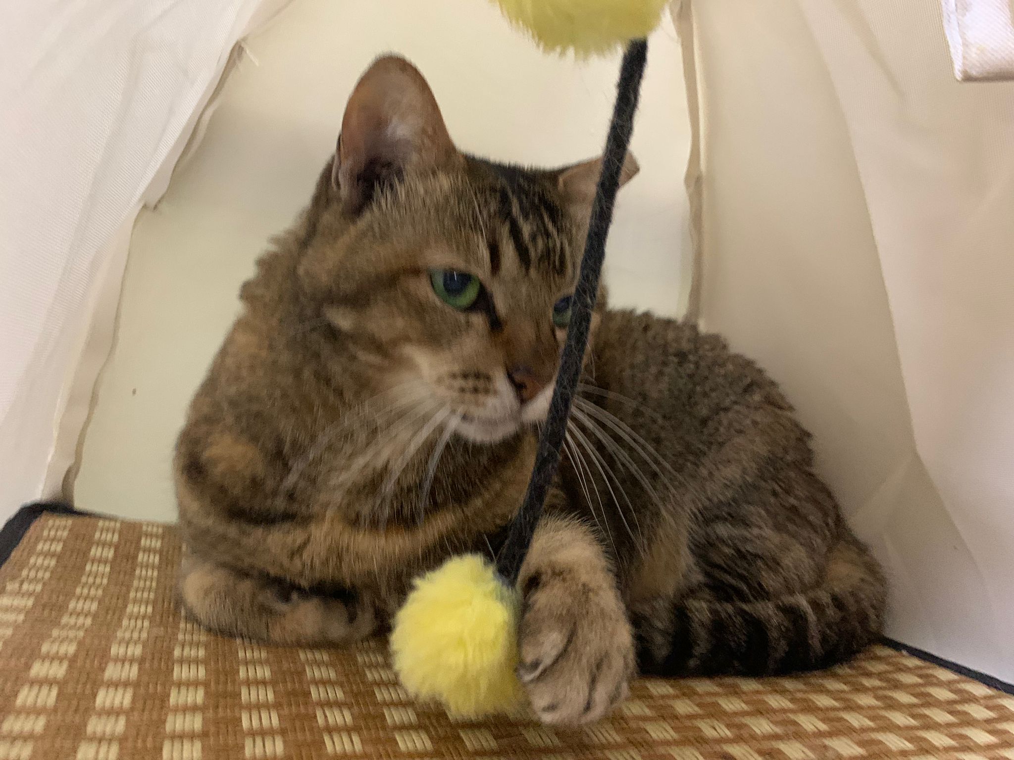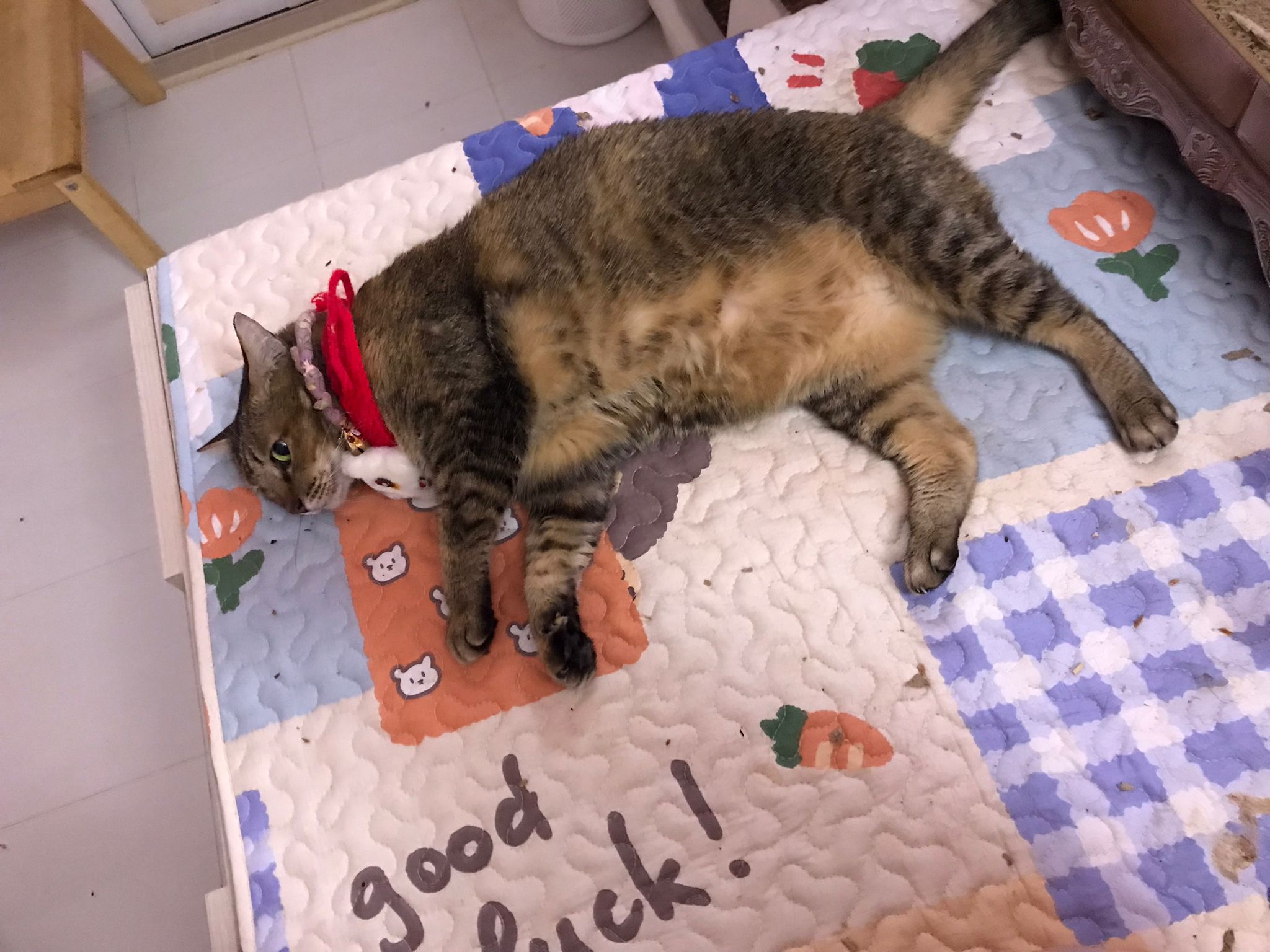 Morning: still my super belly rub queen. Kitty wanna the small tent n sena don’t want to give him. Told him wait, later vacant then go in.