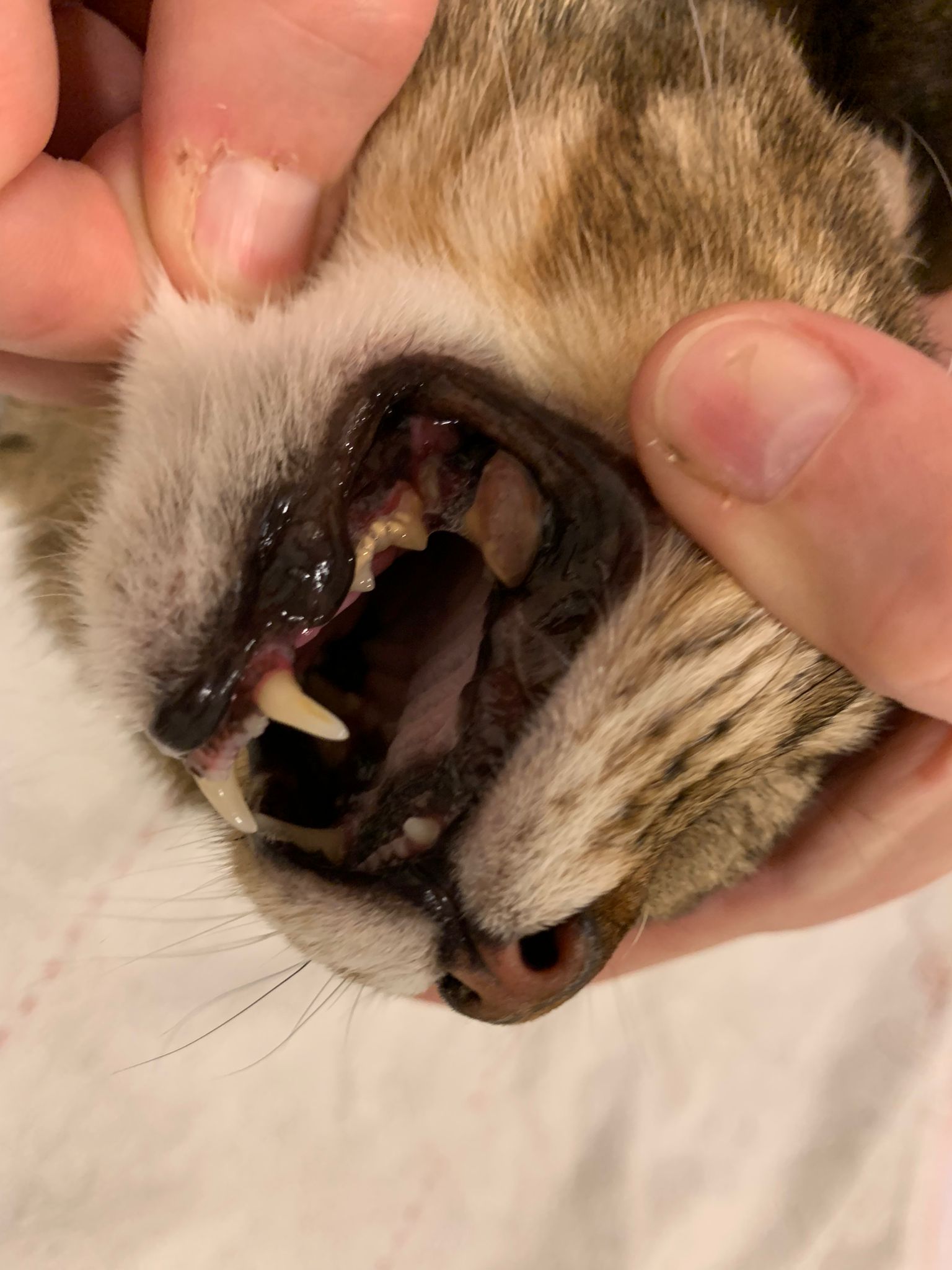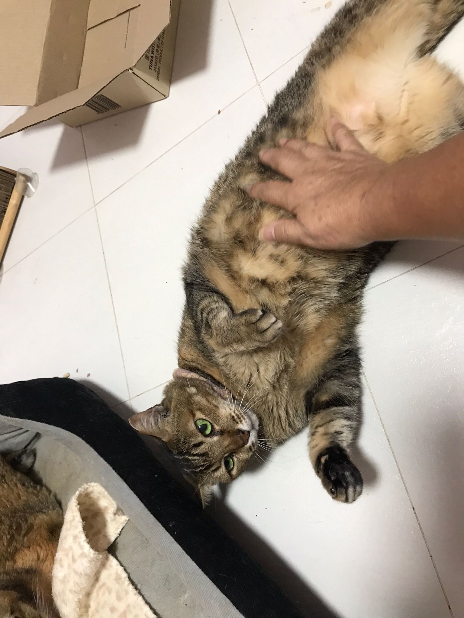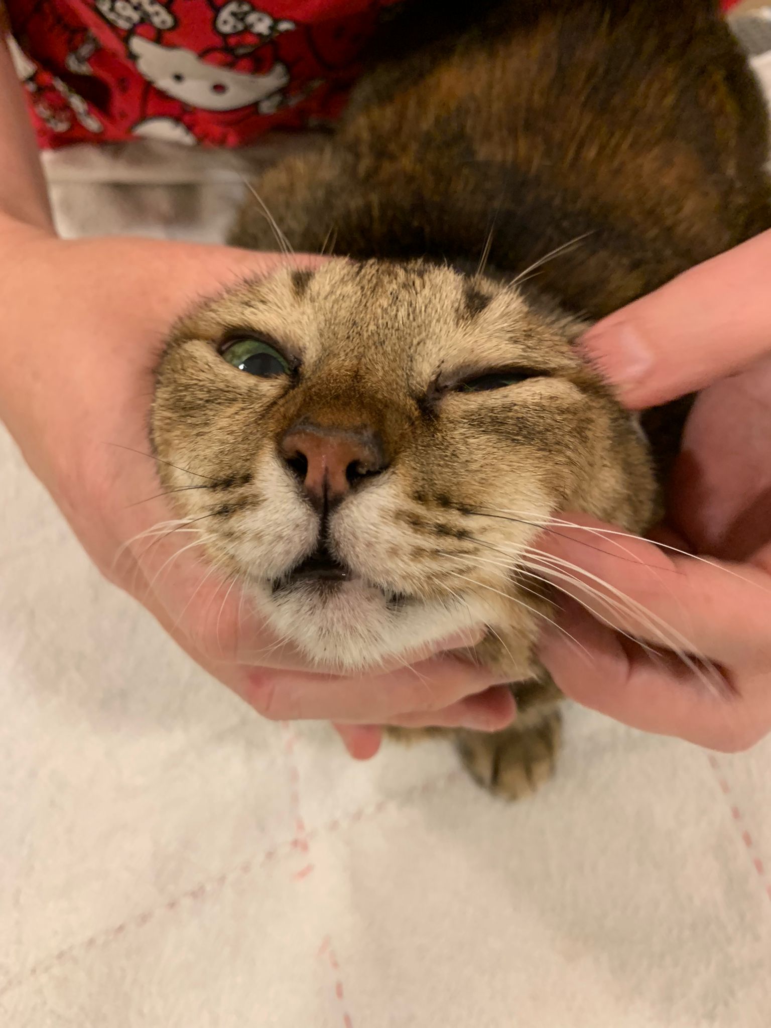 Morning: still my belly rub queen. Super cute. But her left eye today got dirt, like a little starting flu.