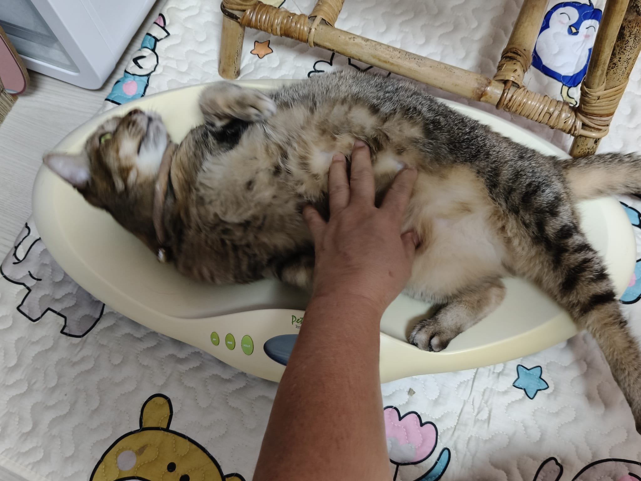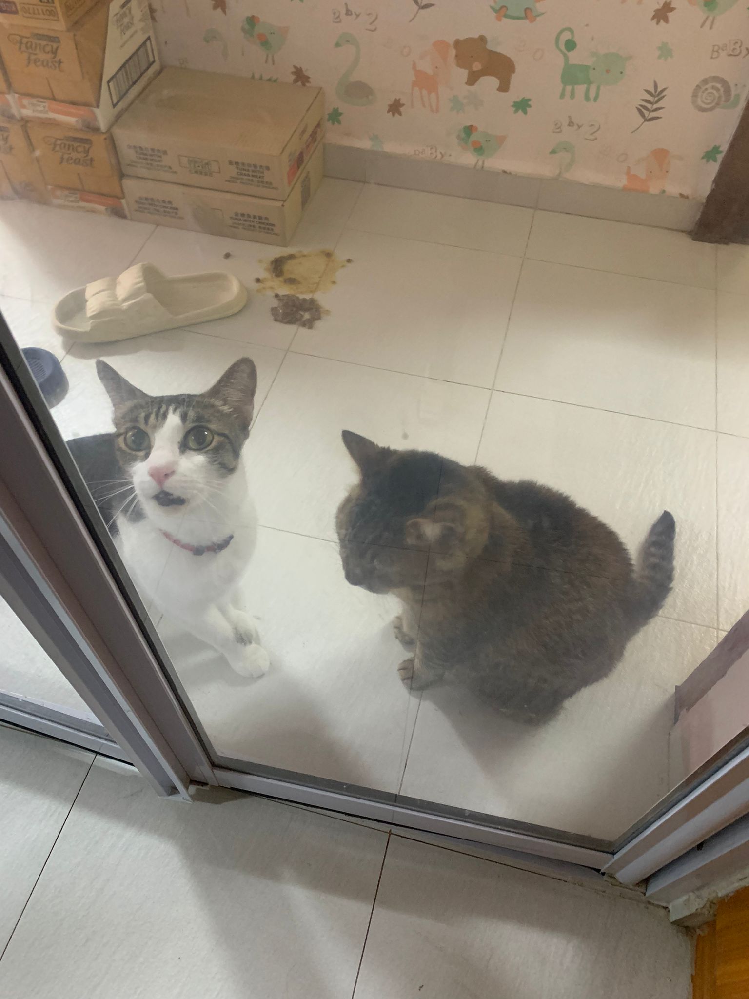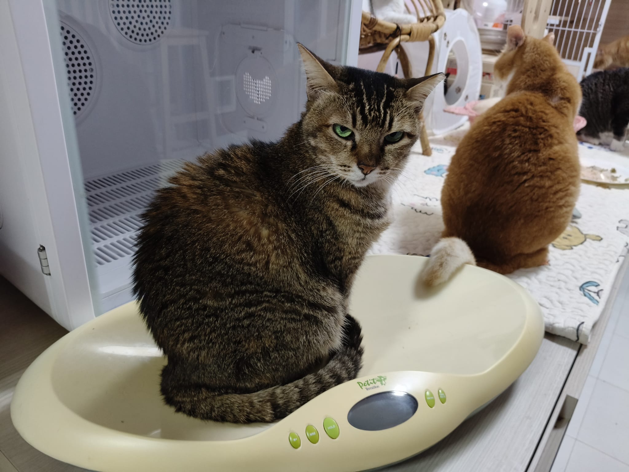 11Am; we moving to 猫房 5G. 4.16kg – gain 150g. Scare stay on at room 1 balcony. Still got look at me.