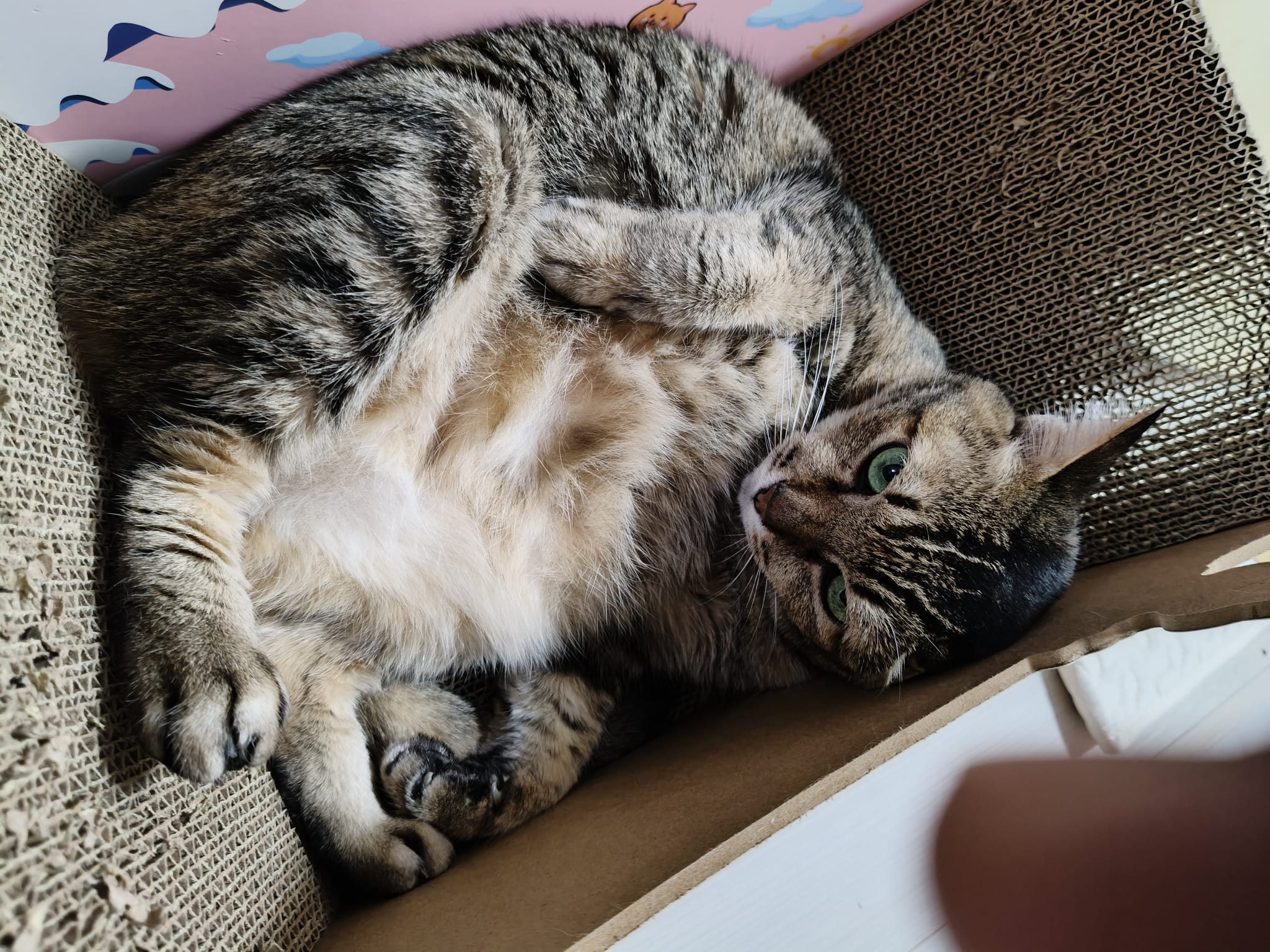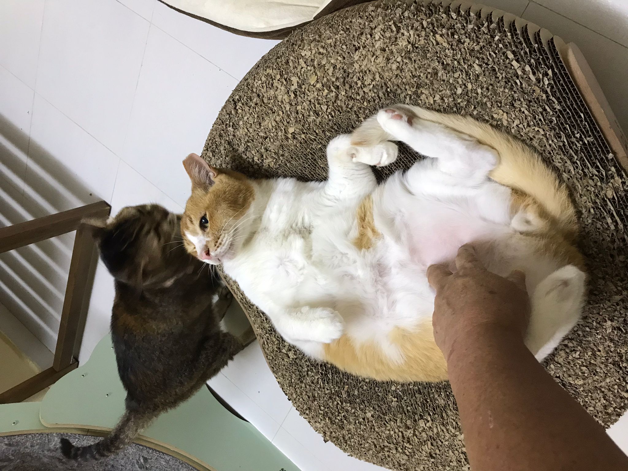 • guts feel again: buddy something wrong? Why distance from Sena? Is he not well? Eating and like my belly scratch as usual.