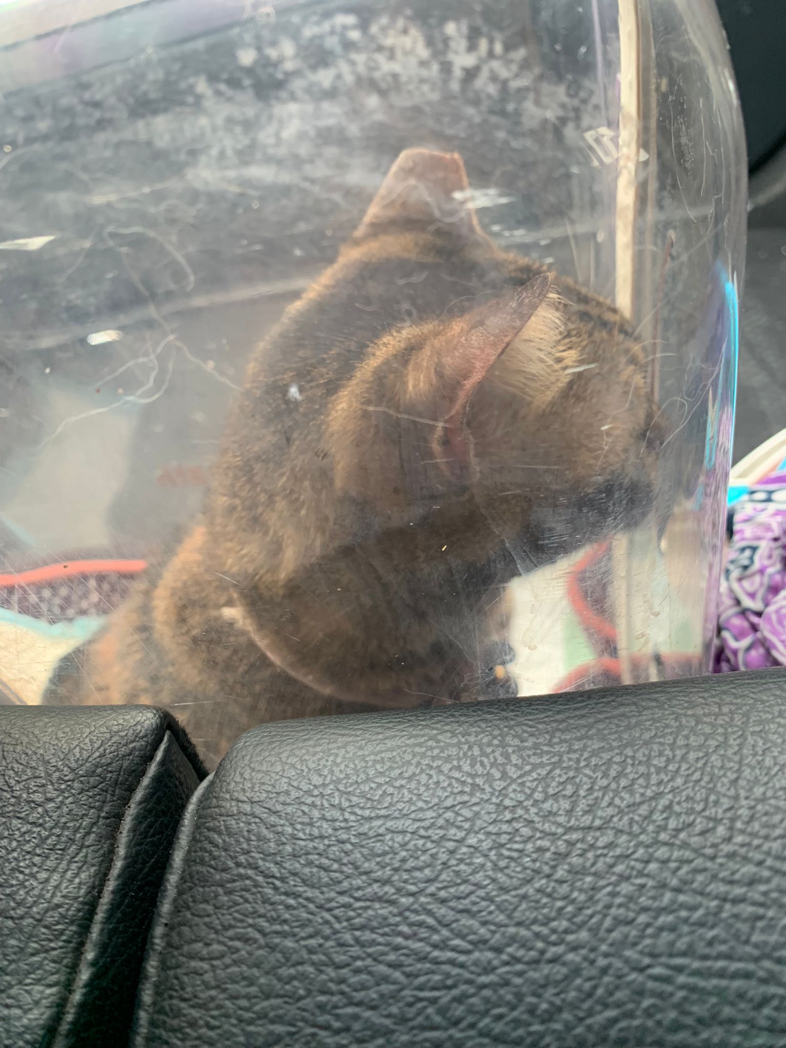 Morning: I open up bai bai mama cage to clean up and sena jump in. I have to carry her out