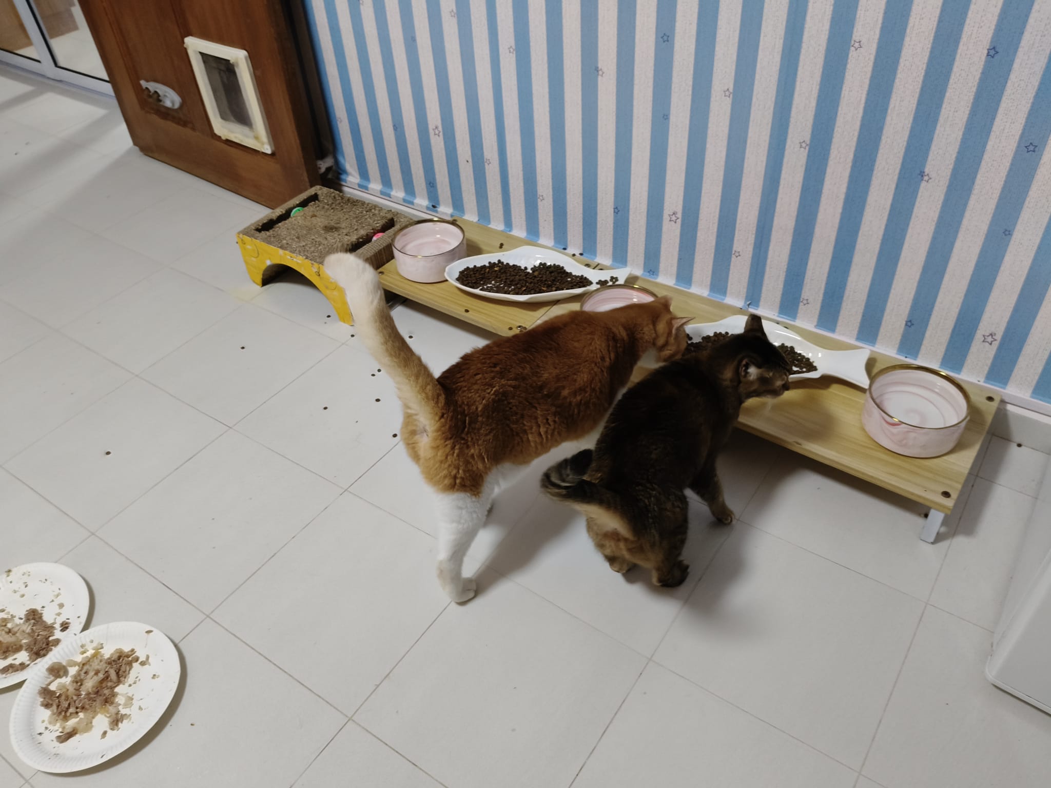 Night: didn’t see Buddy and sena eating wet food one, but they both ate earthmade kibble when I top up. Sena eat more
