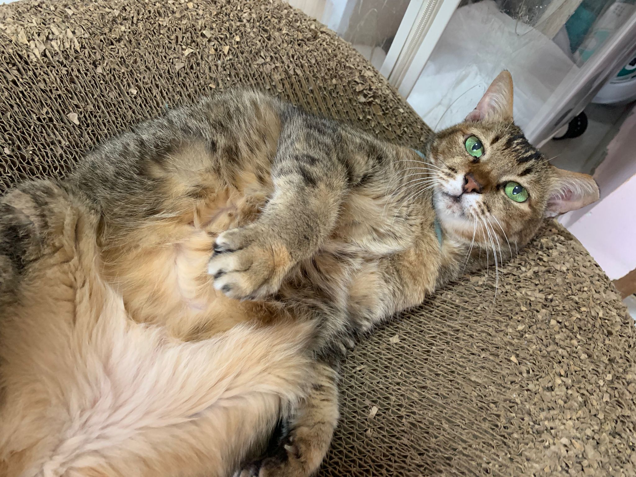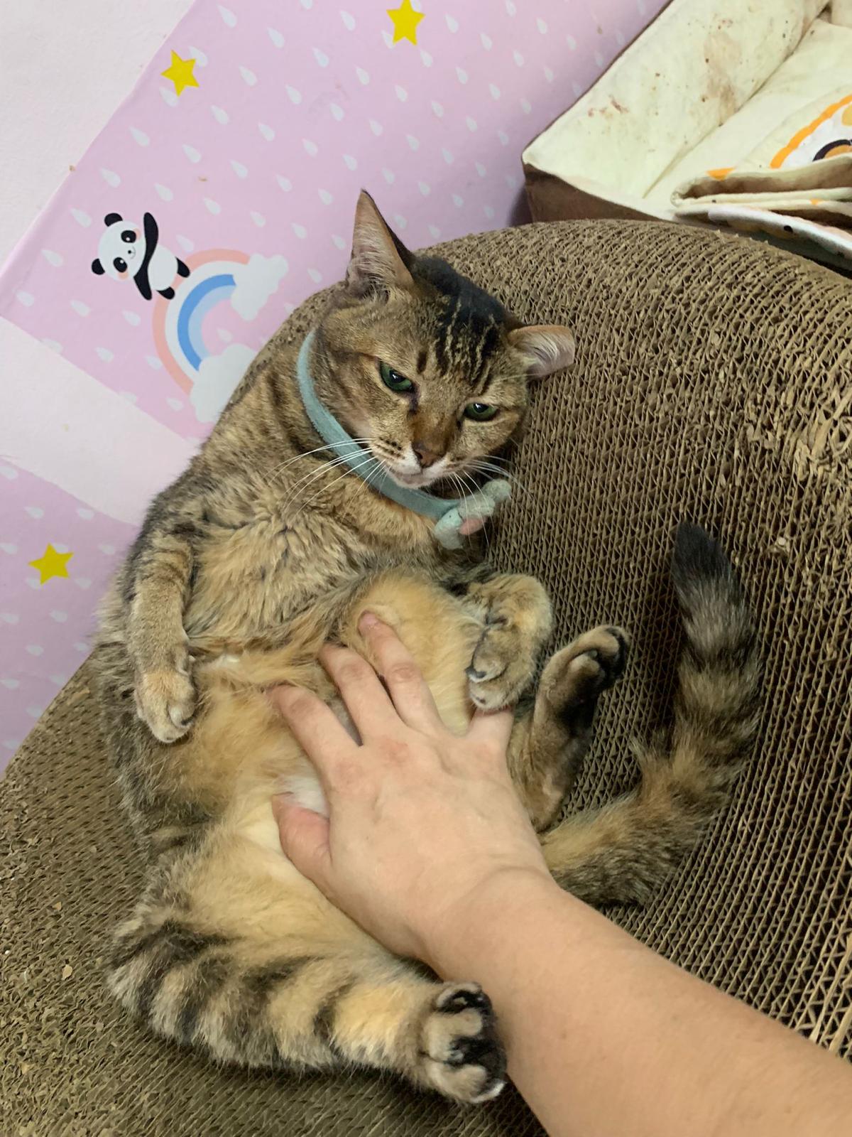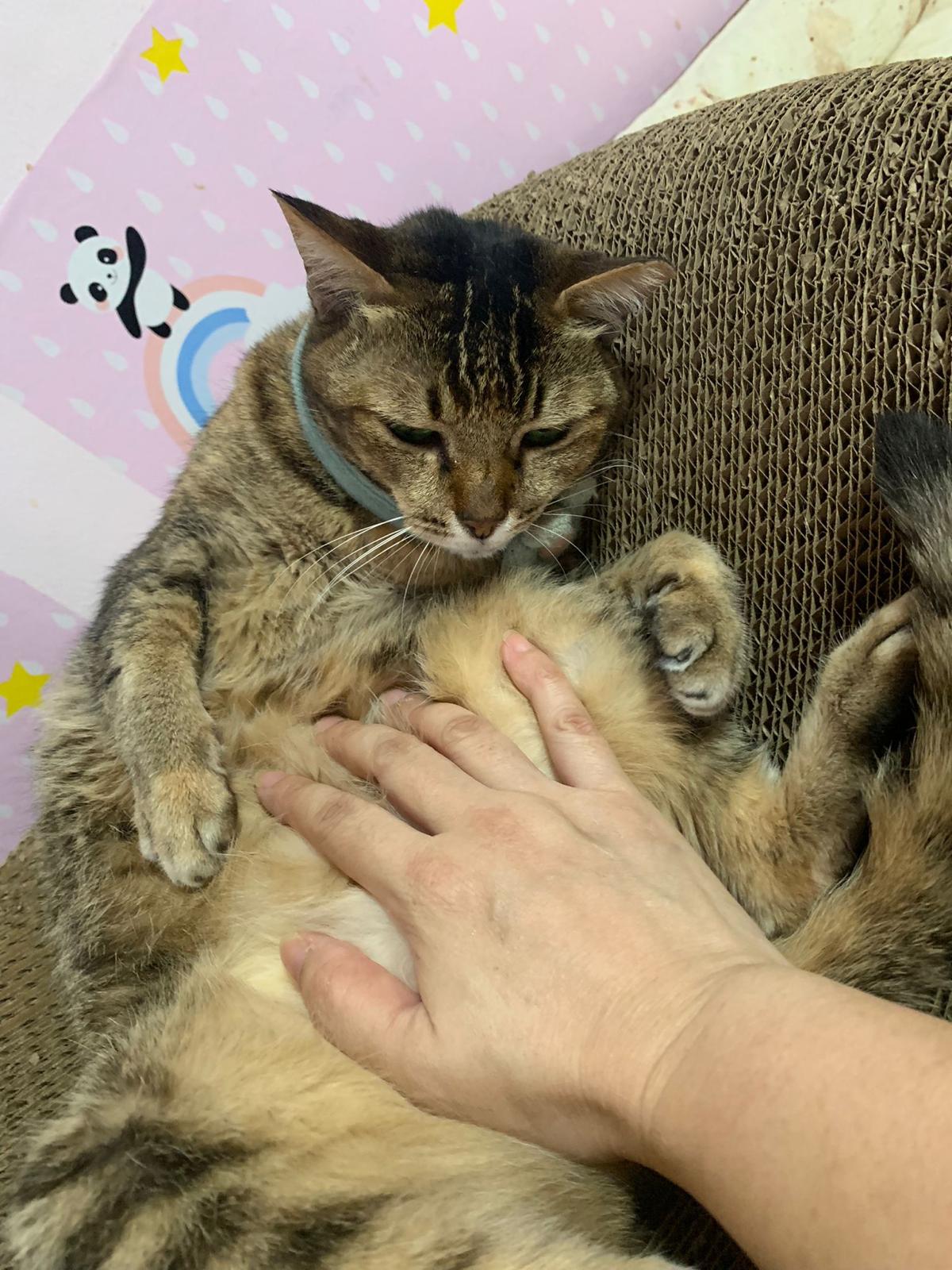 Morning: still my happy belly rub queen. I’m a bit negative about going vet … I think I’ll weigh her b4 the date n see how. Maybe will bring ah boy instead. Cos she didn’t look bAd otherwise. Just the old age lose weight