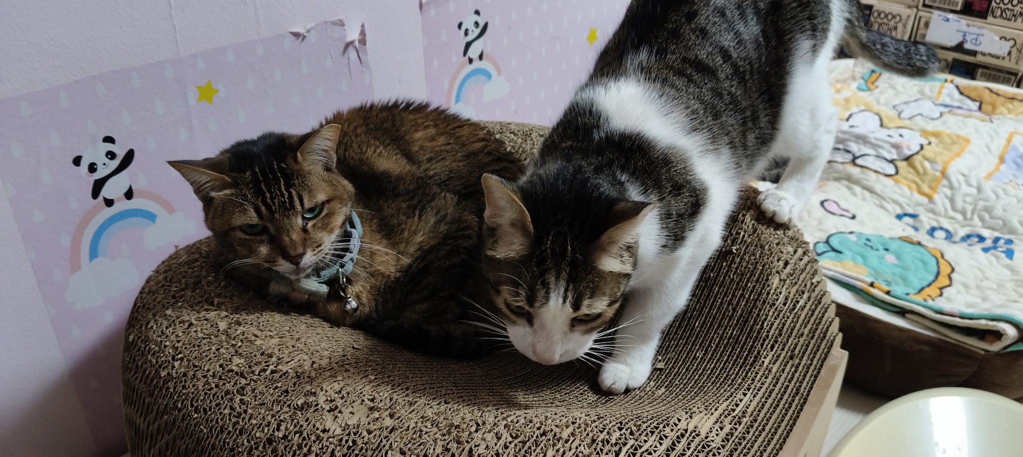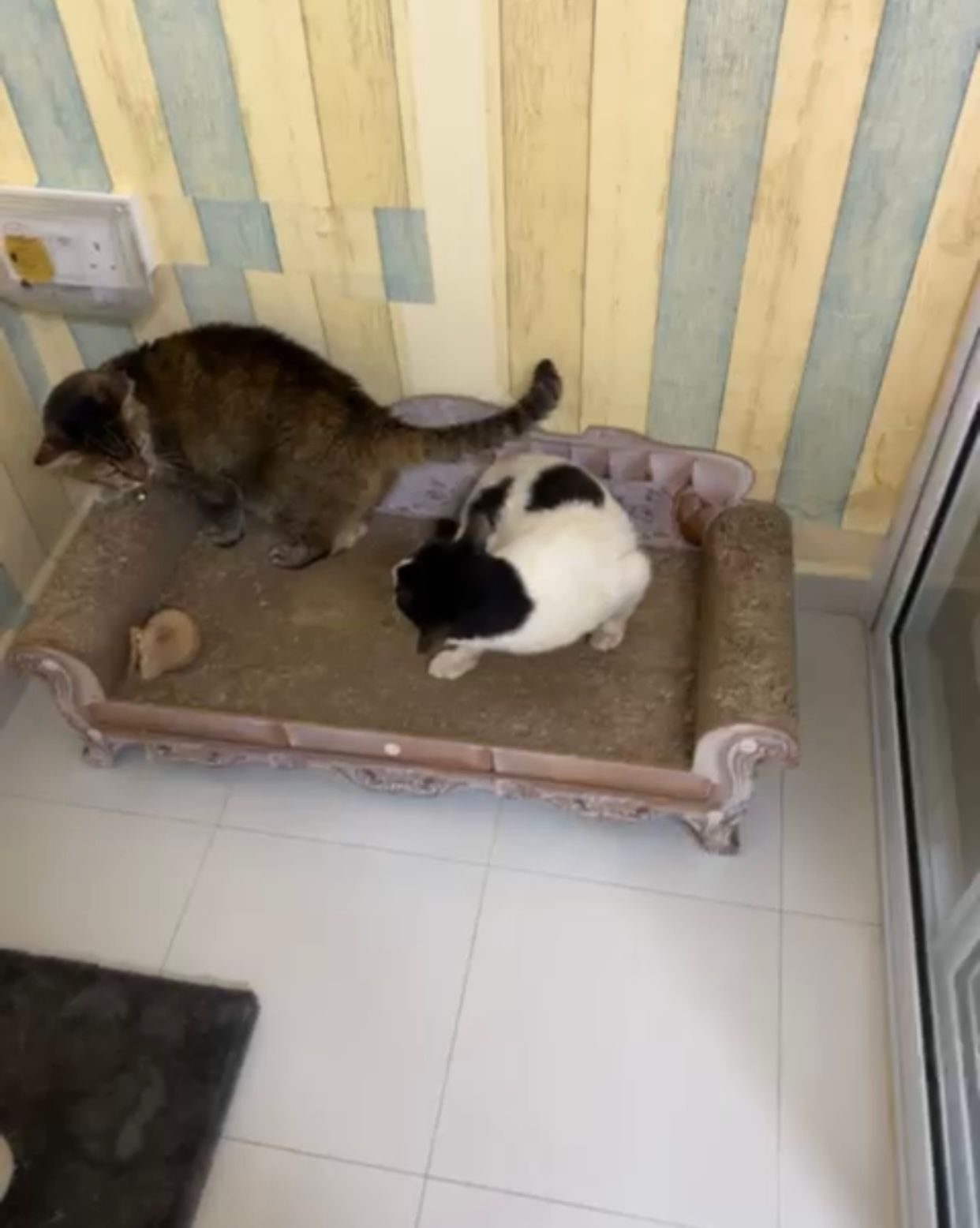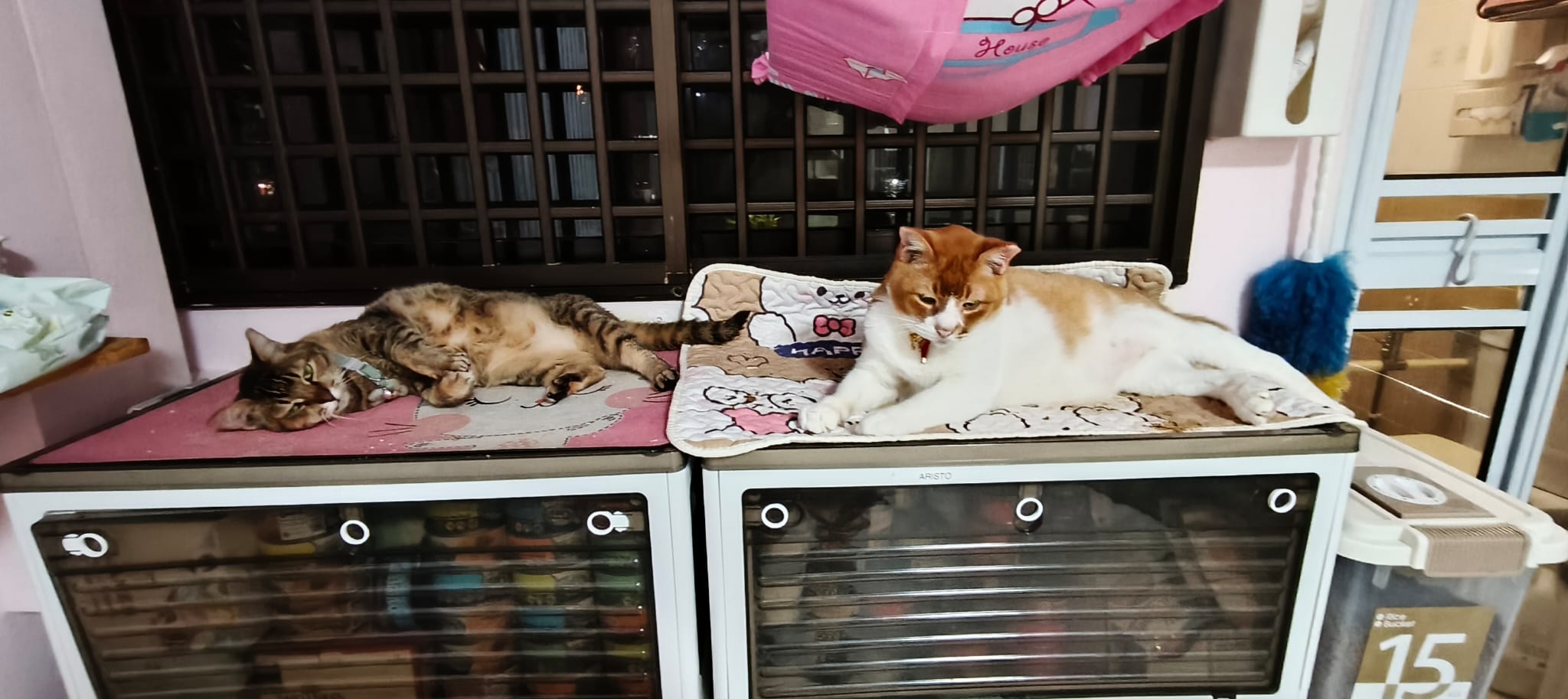 Morning: sena wanna sleep on the big sofa sb, bai had been on it and she growl at sena. Wa sena scare leh n slowly adjust and move out and out of the room. Her tail swing and touch bai n bai didn’t attack of anything. Growl but steady monitor situation.